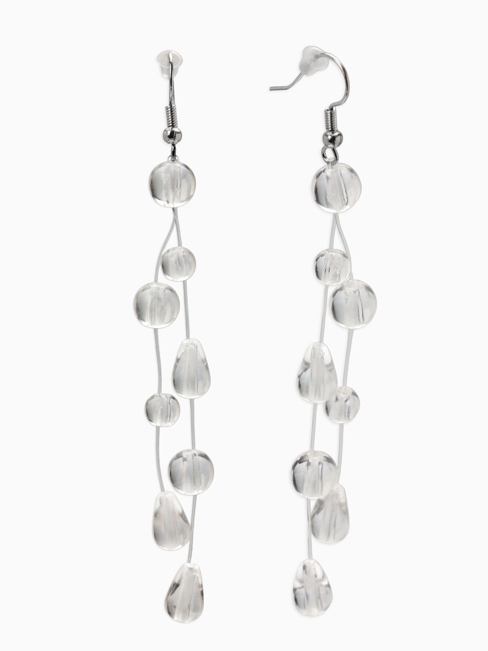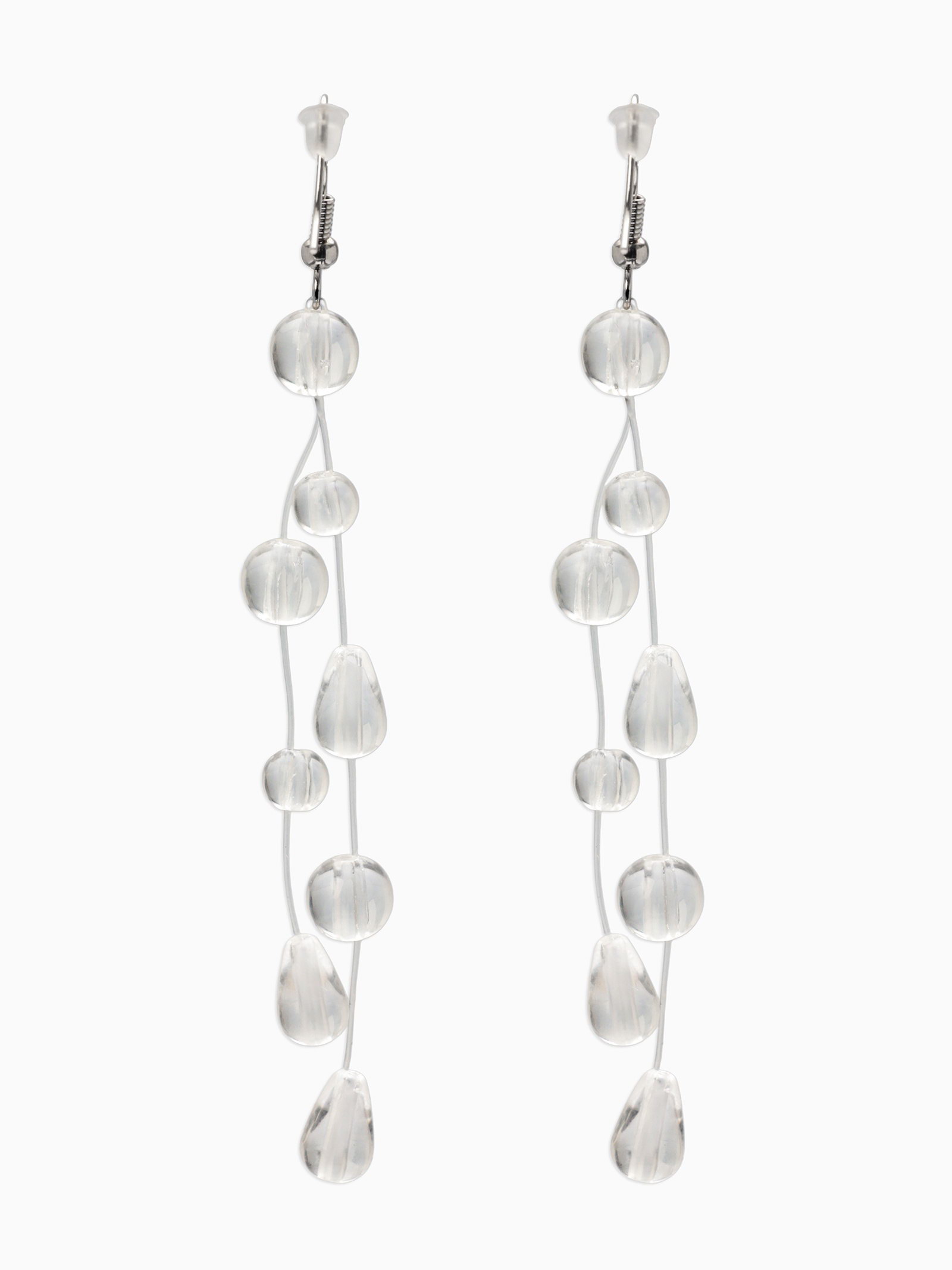 Серьги на леске "Капля росы. Веточка", белые в серебре, 0.5x8x0.5 см., QF, Китай