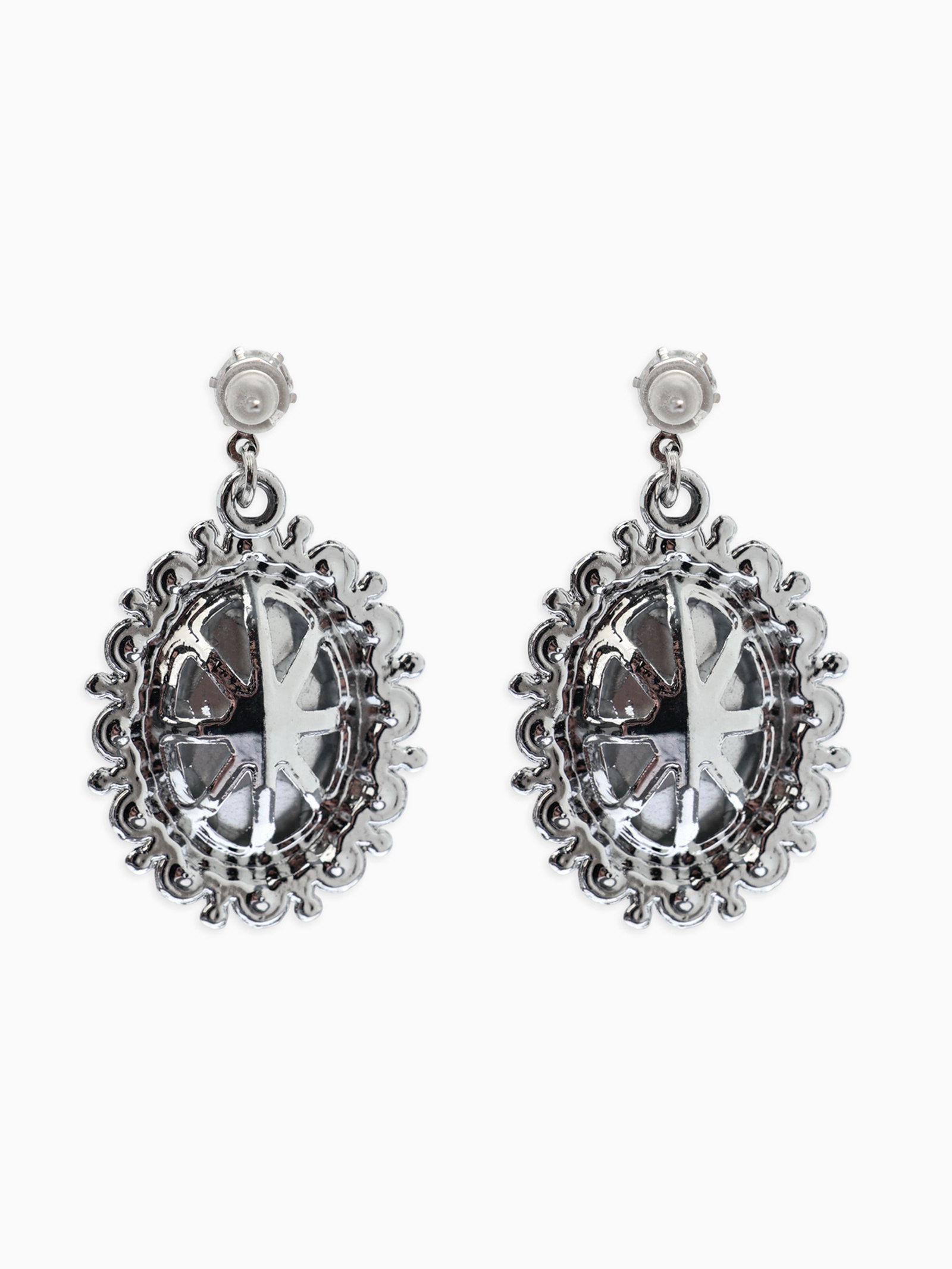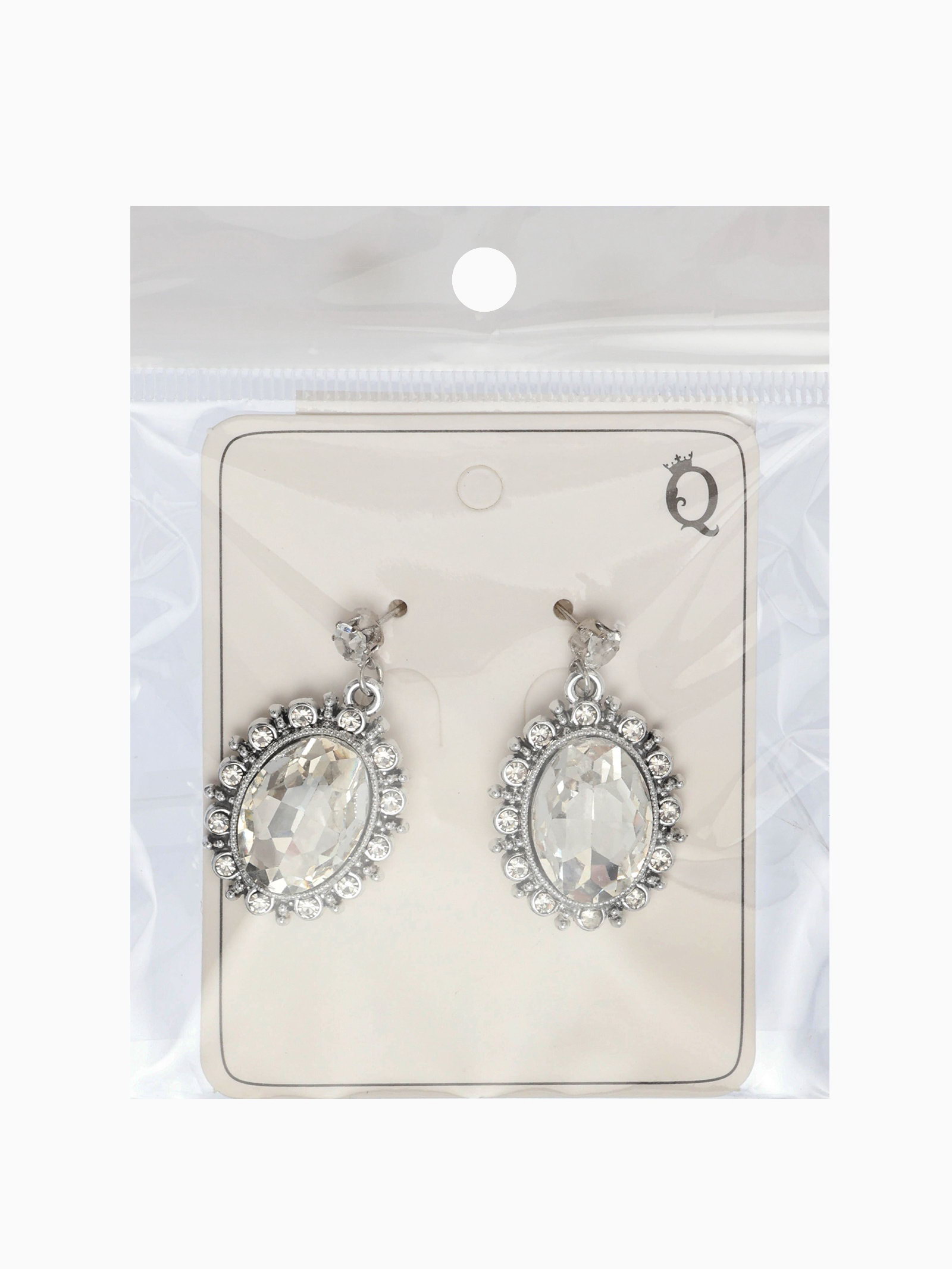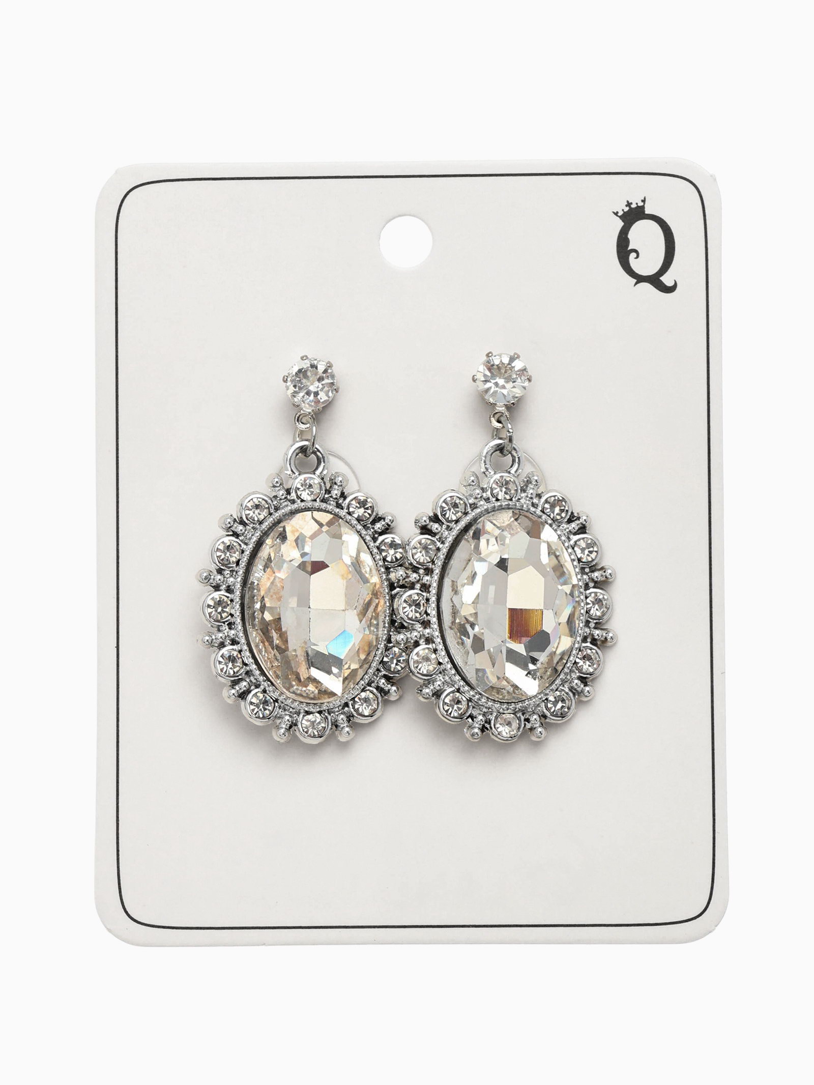 Серьги со стразами "Овал грань", цвет белый в серебре, 2x3.5x0.5 см., QF, Китай