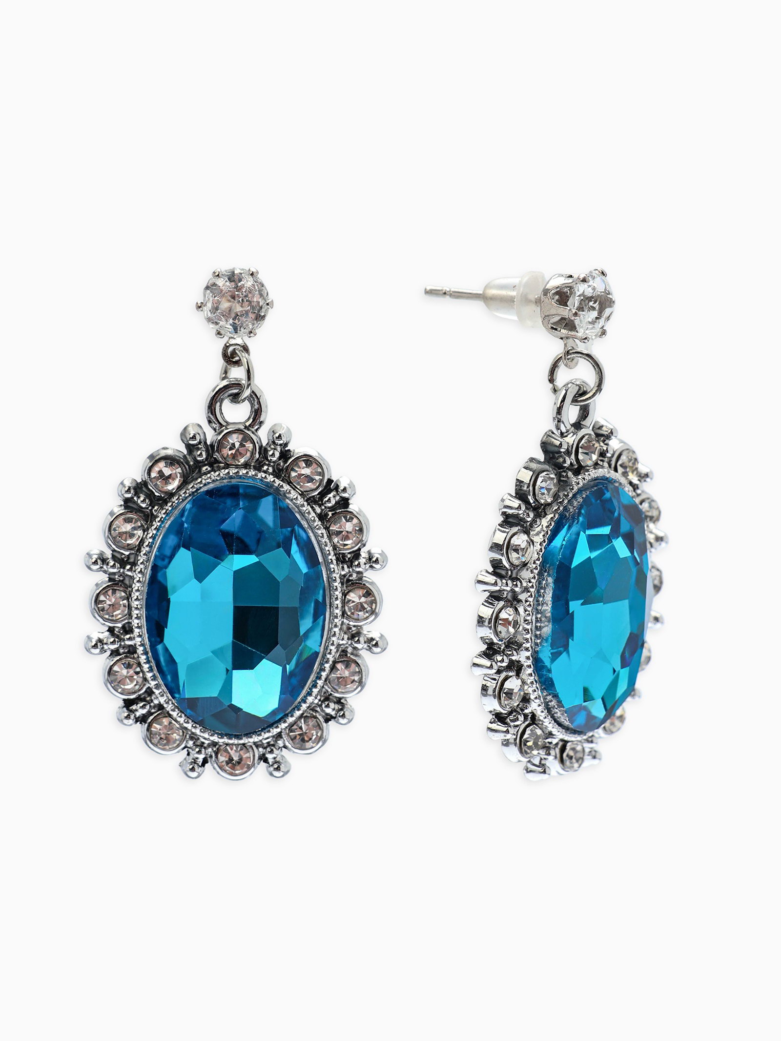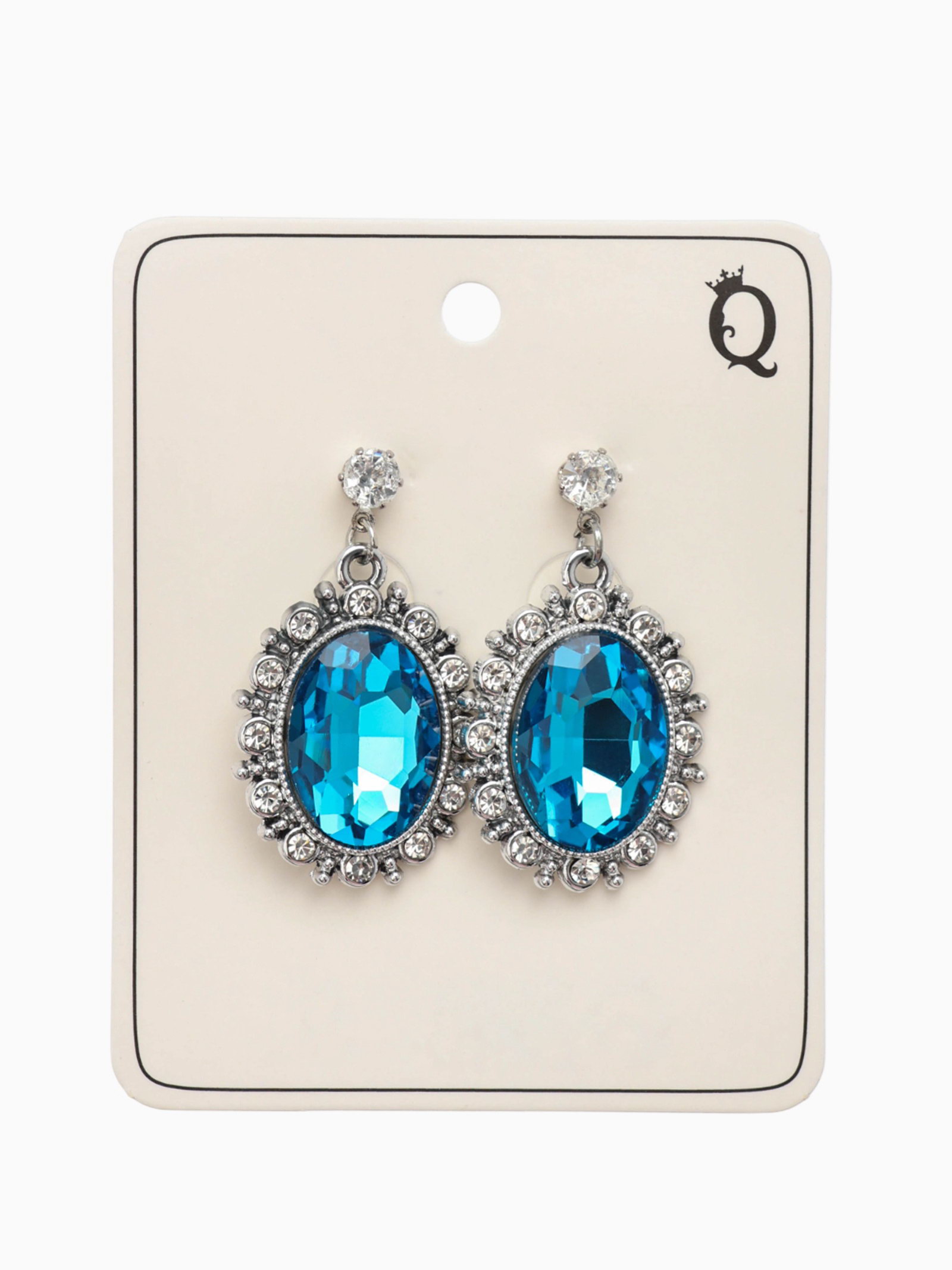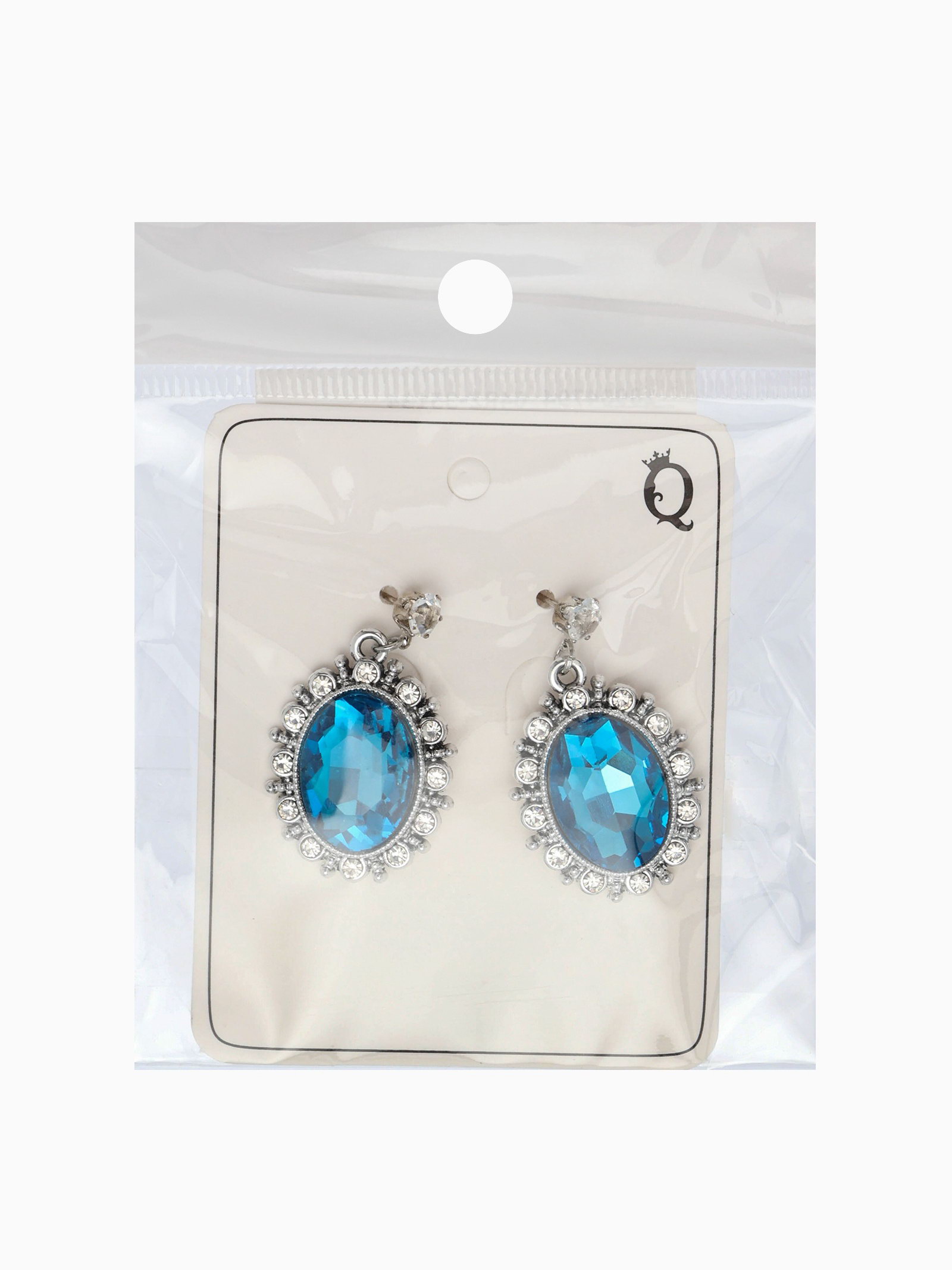 Серьги со стразами "Овал грань", цвет голубой в серебре, 2x3.5x0.5 см., QF, Китай