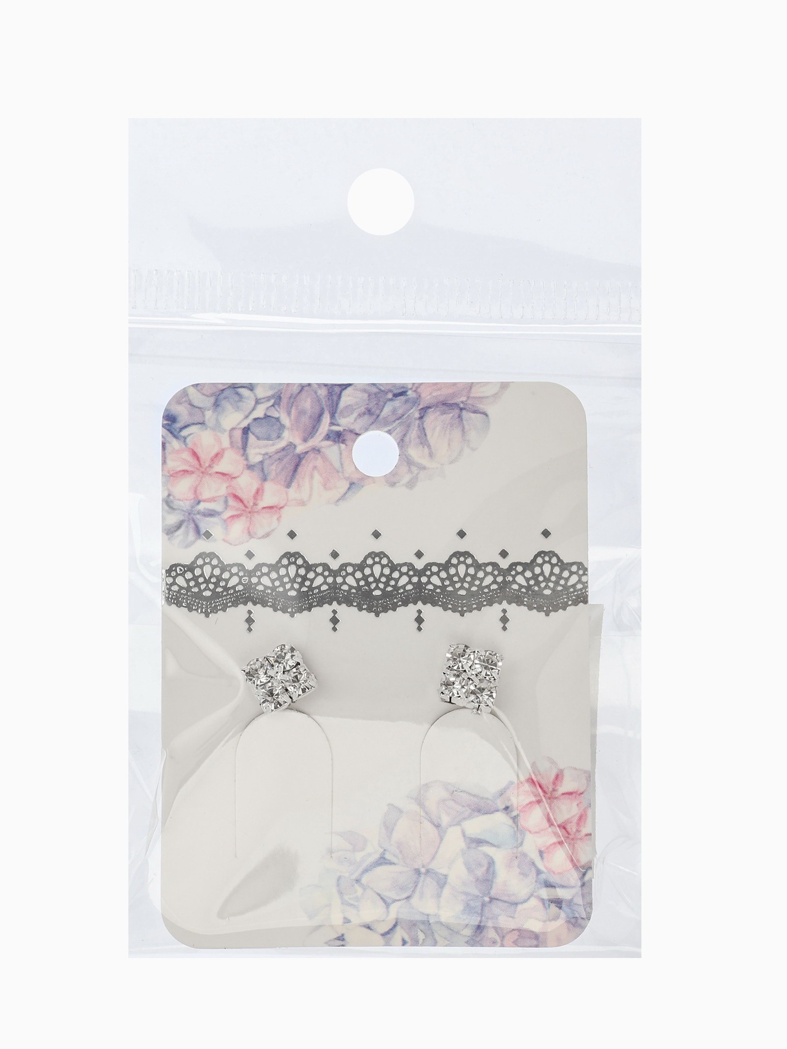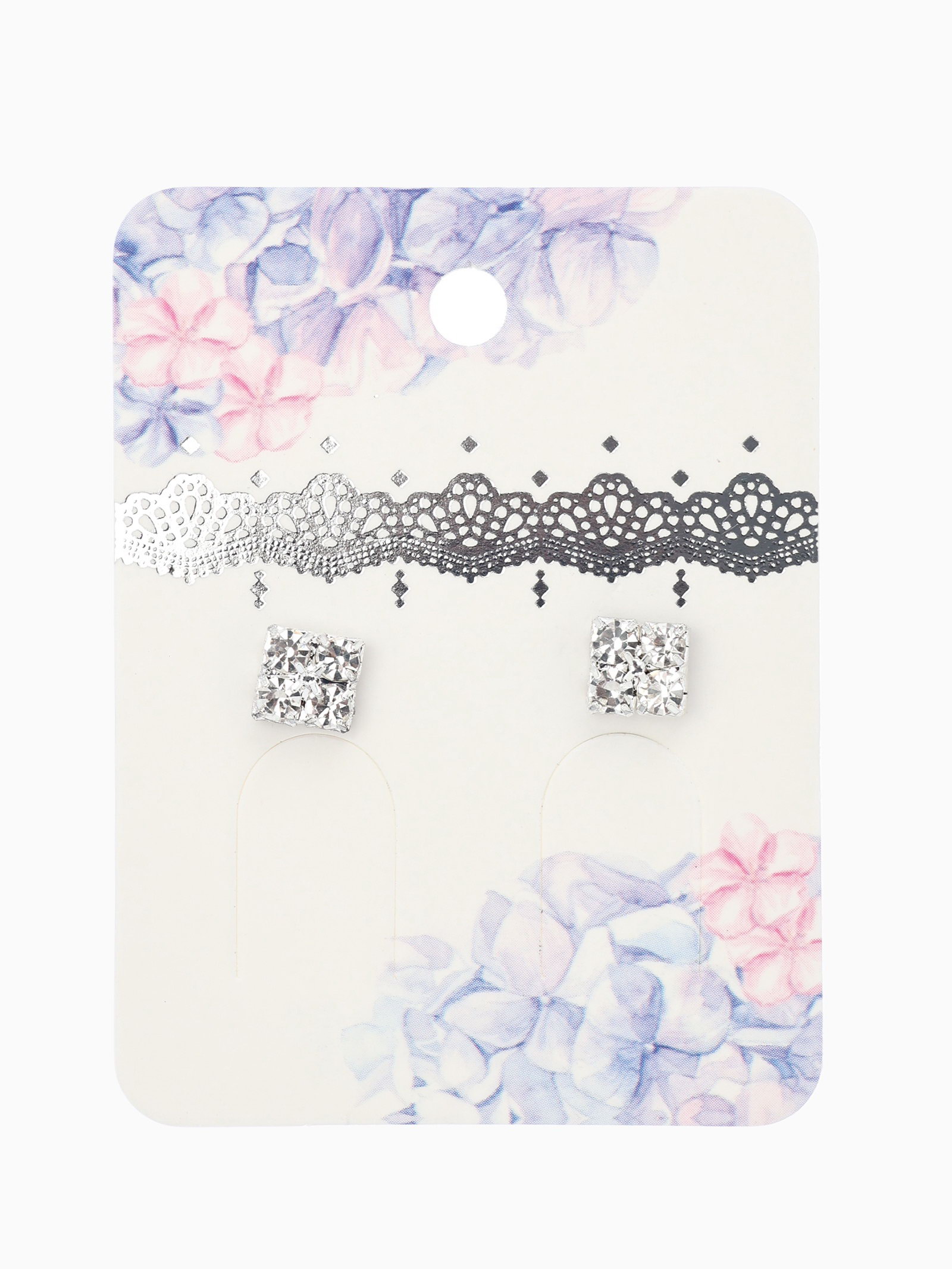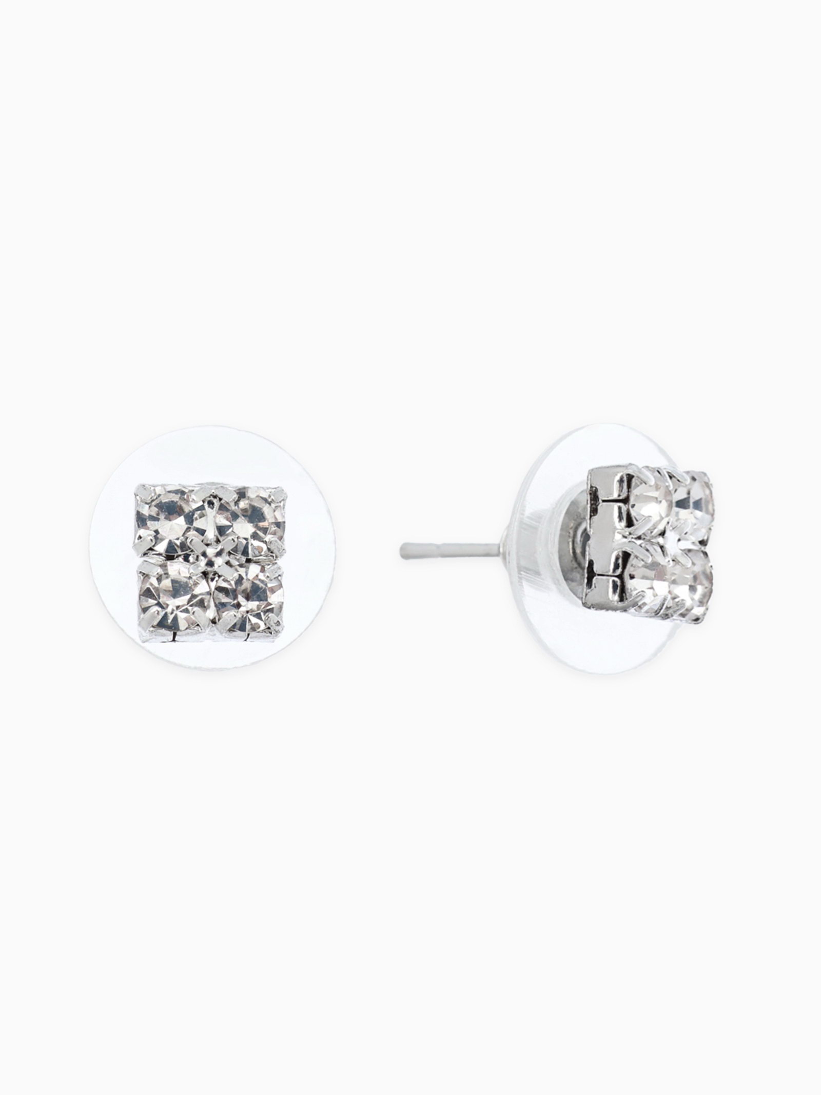 Серьги со стразами "Квадрат" 6x6 мм, белые в серебре, 0.6x0.6x0.3 см., QF, Китай