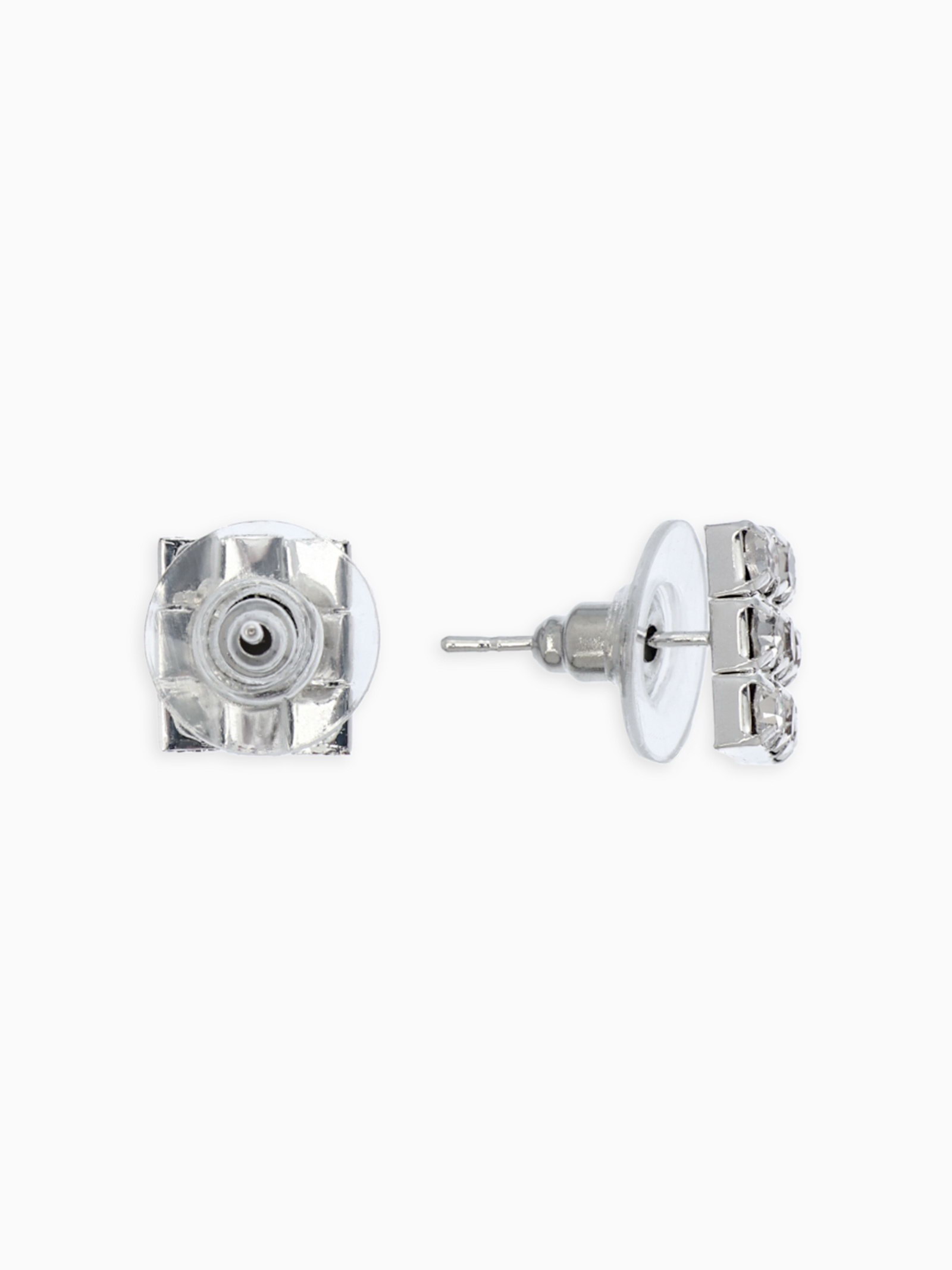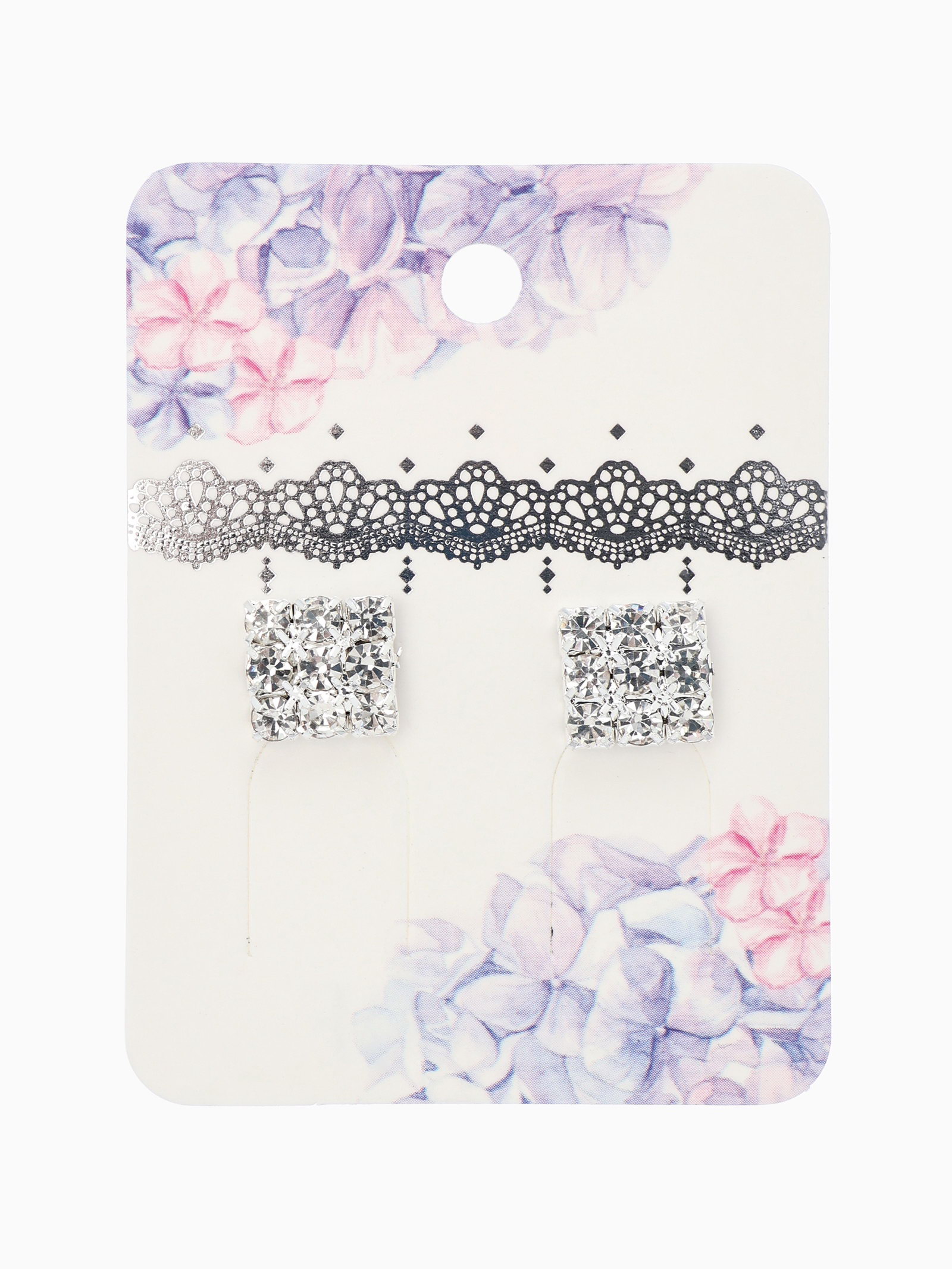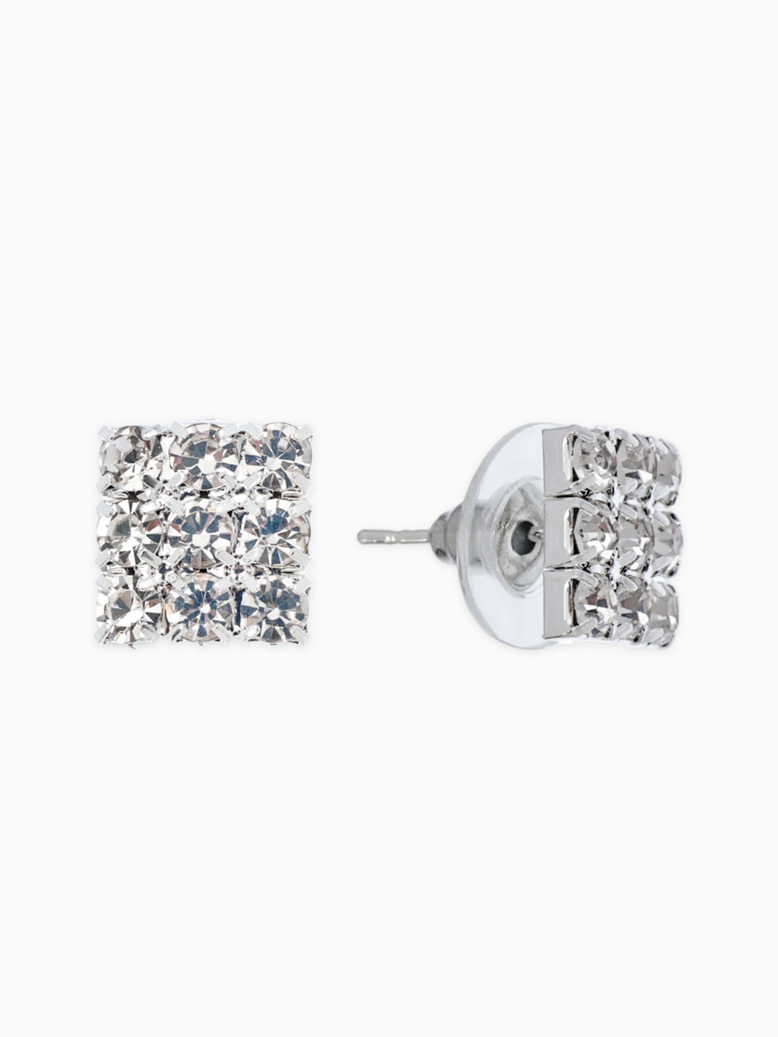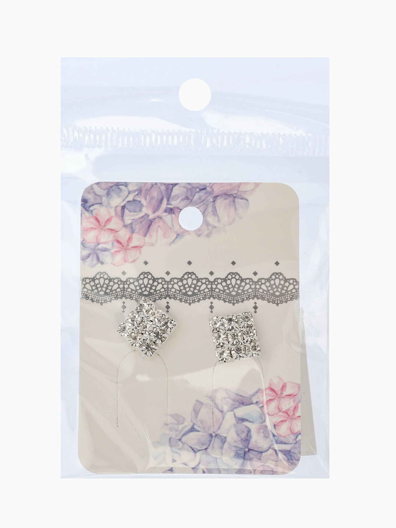Серьги со стразами "Квадрат" 9x9 мм, белые в серебре, 0.9x0.9x0.3 см., QF, Китай