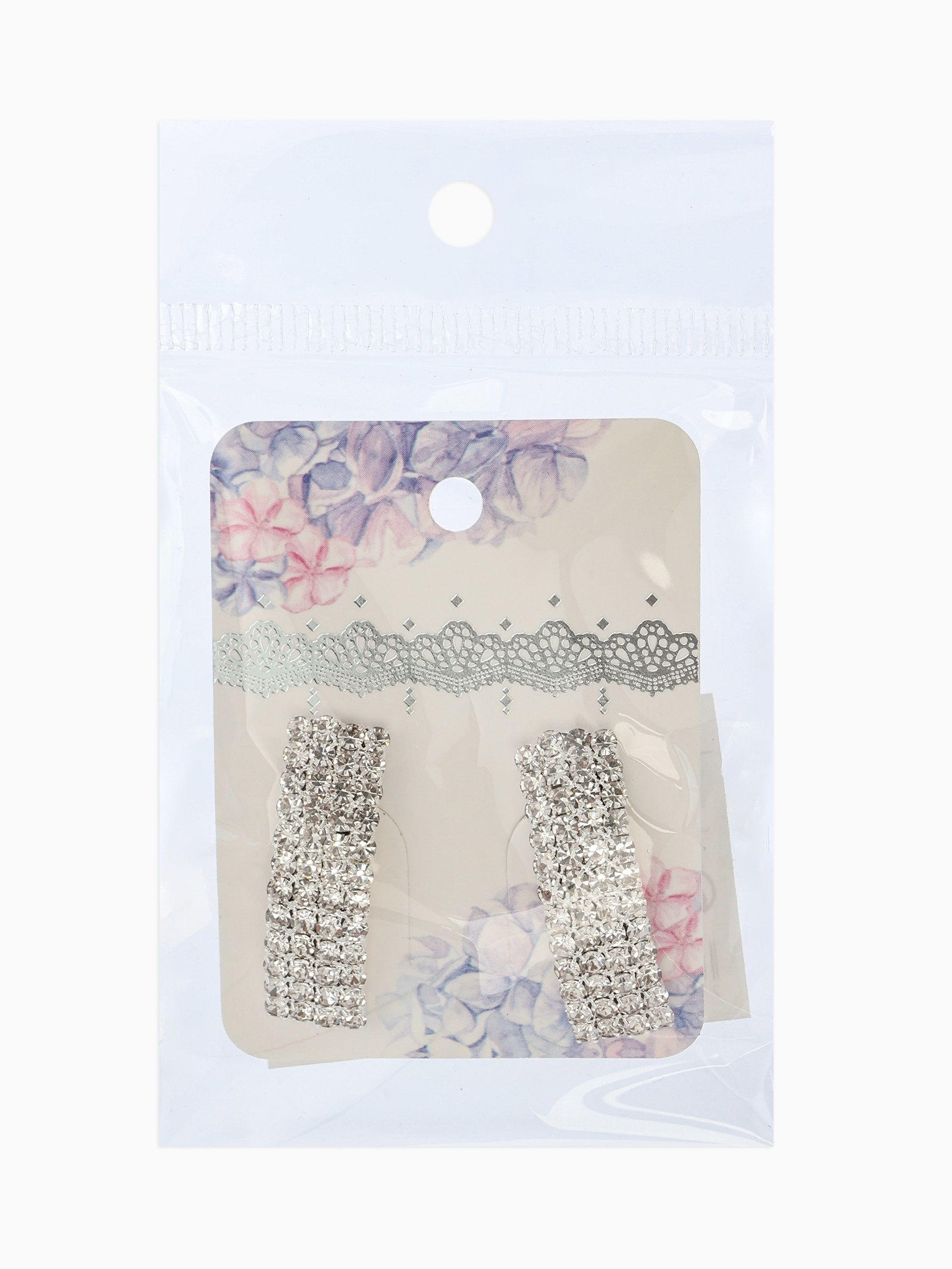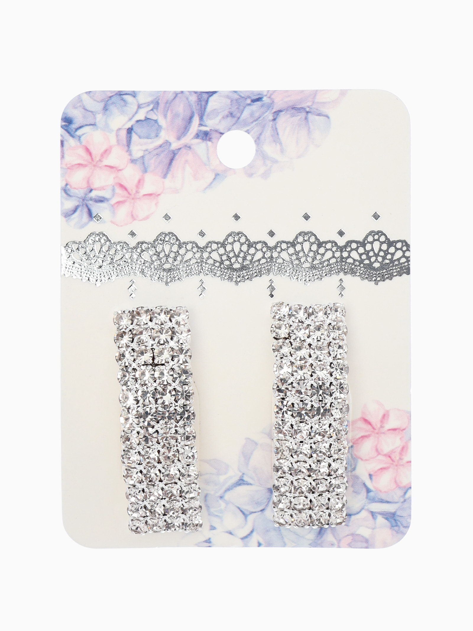 Серьги со стразами "Прямоугольник" 30x9 мм, белые в серебре, 0.9x3x0.3 см., QF, Китай