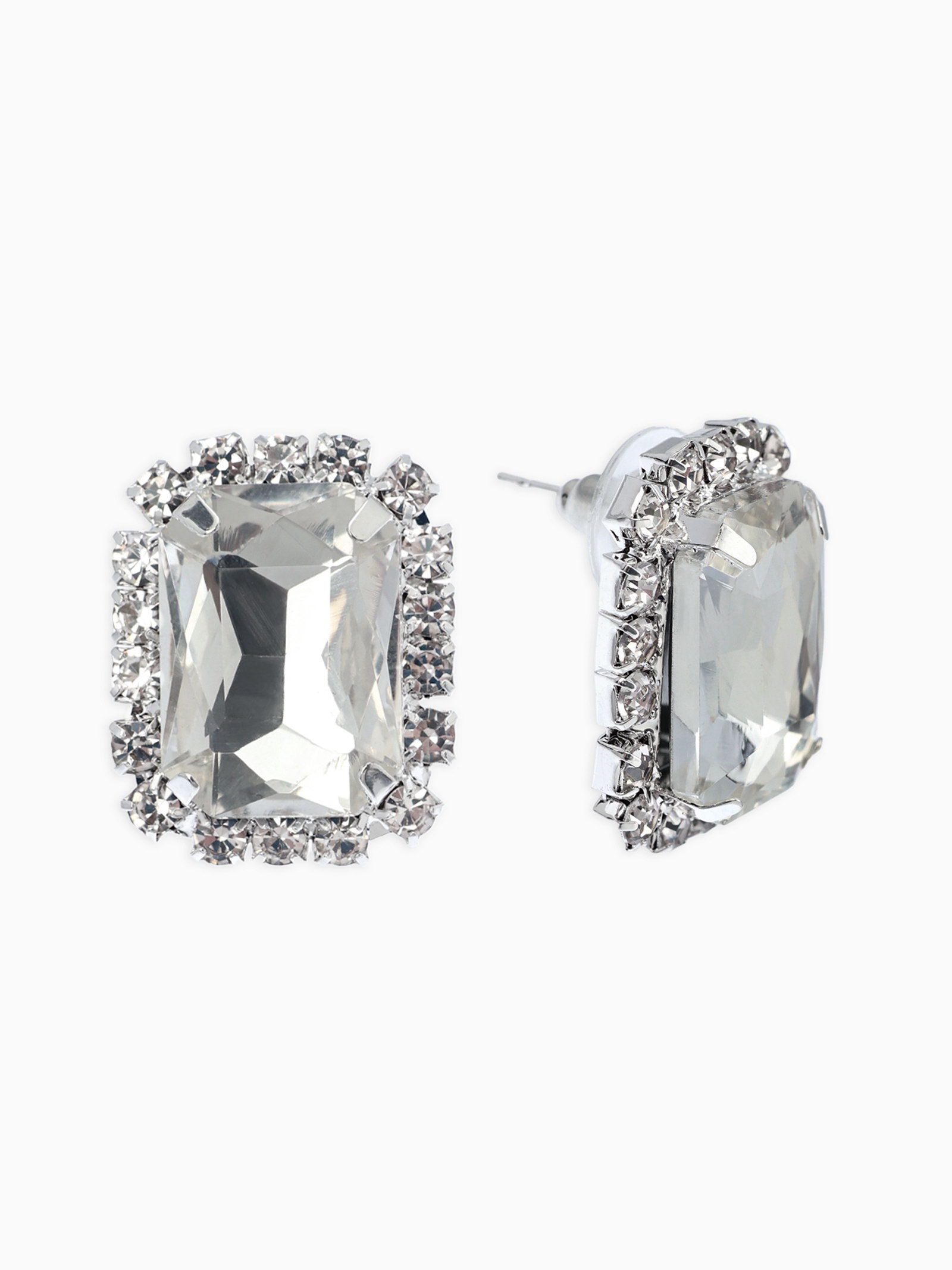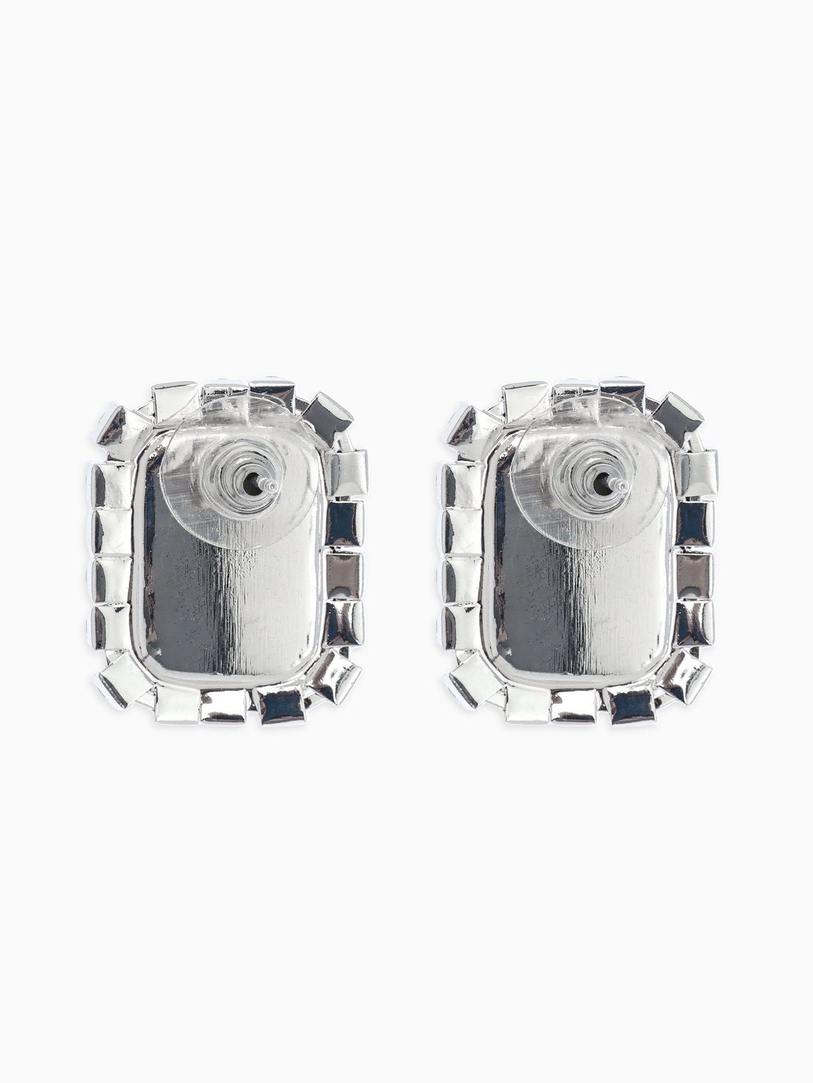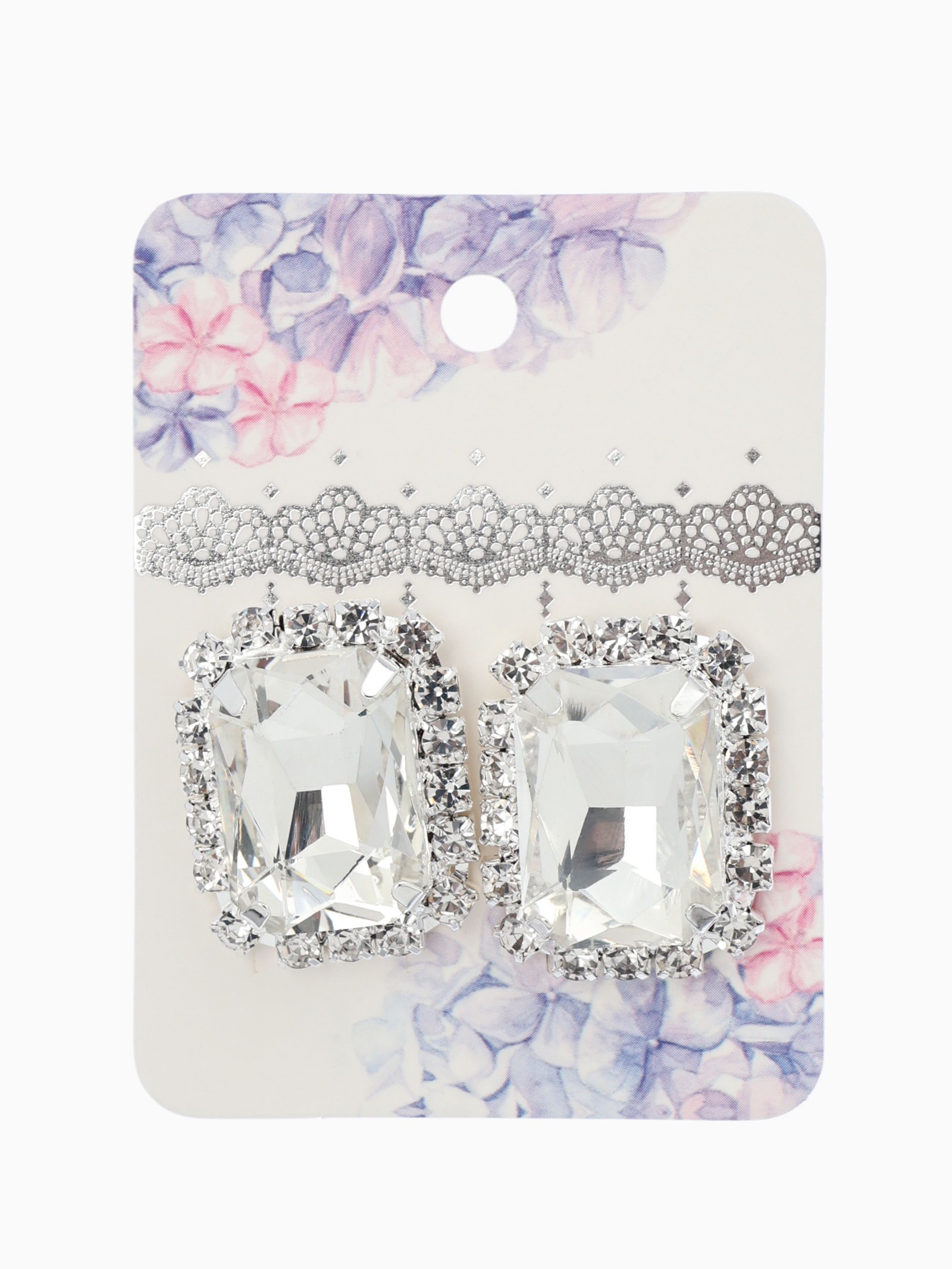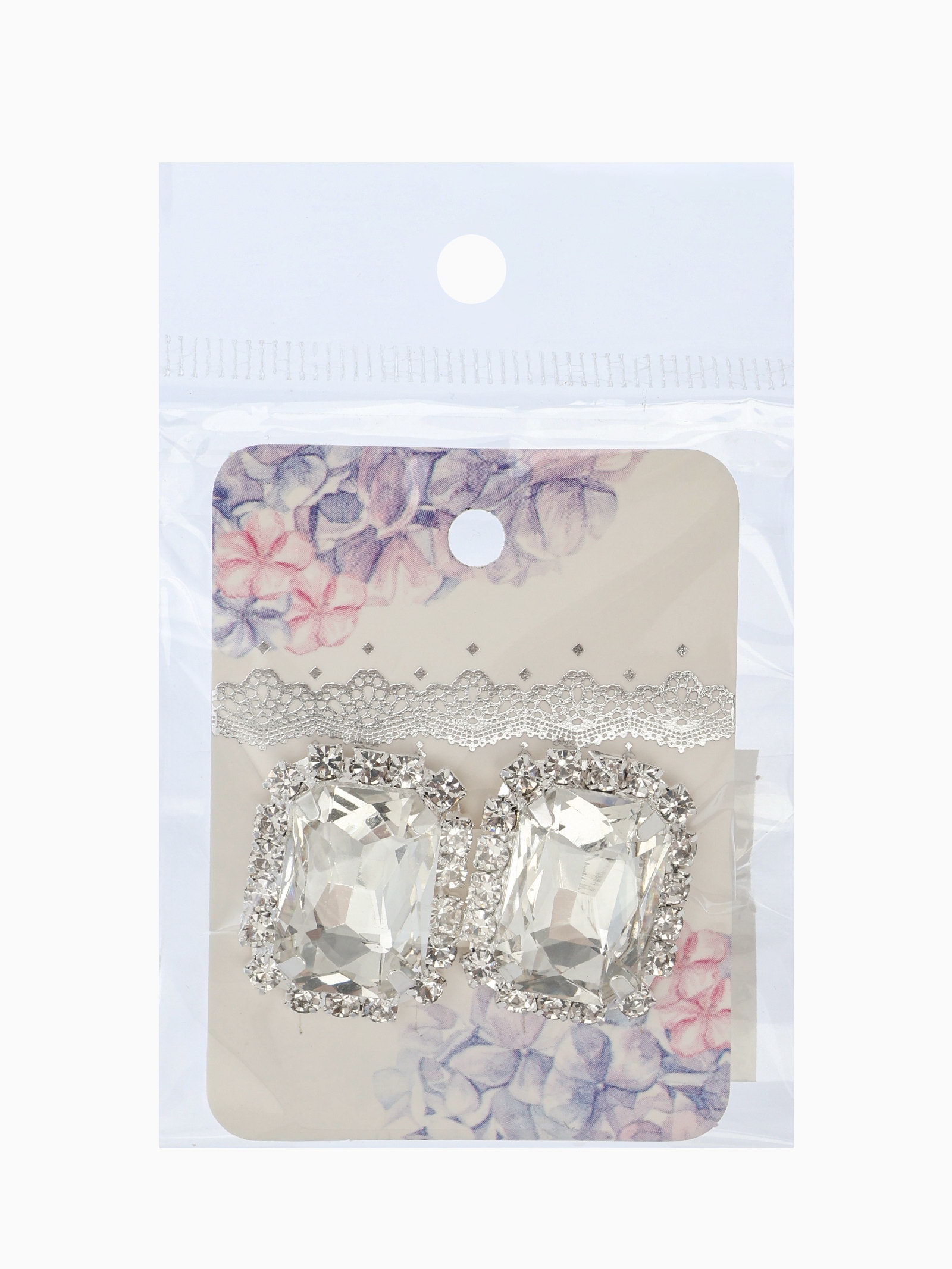 Серьги со стразами "Роскошь", прямоугольник, белые в серебре, 2x2.3x1 см., QF, Китай