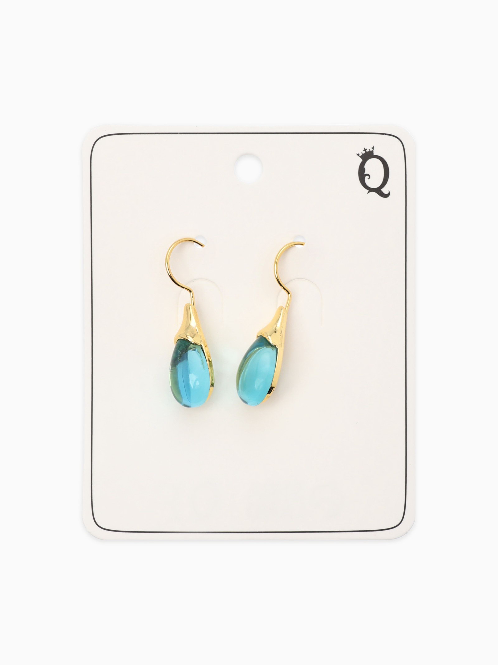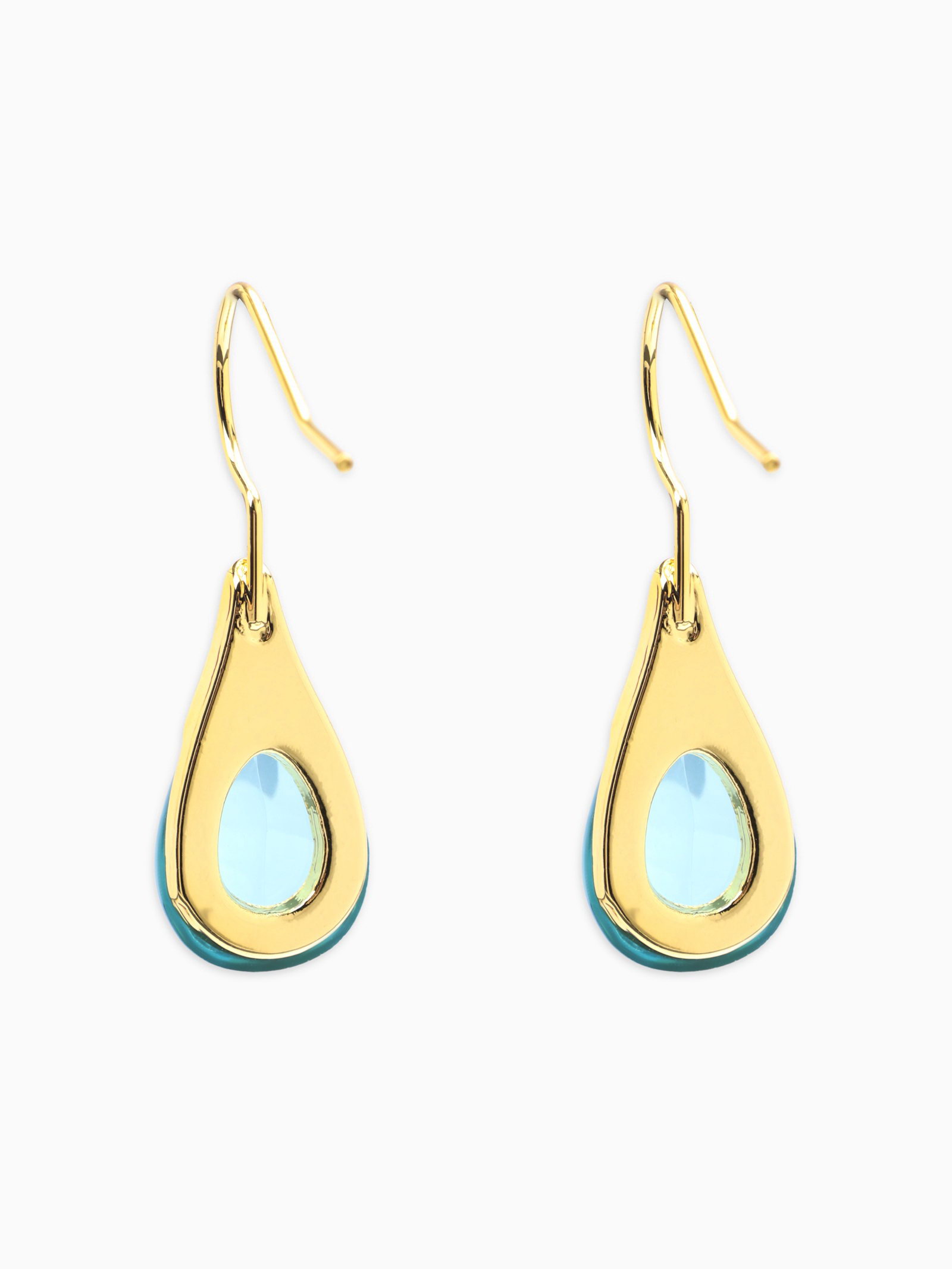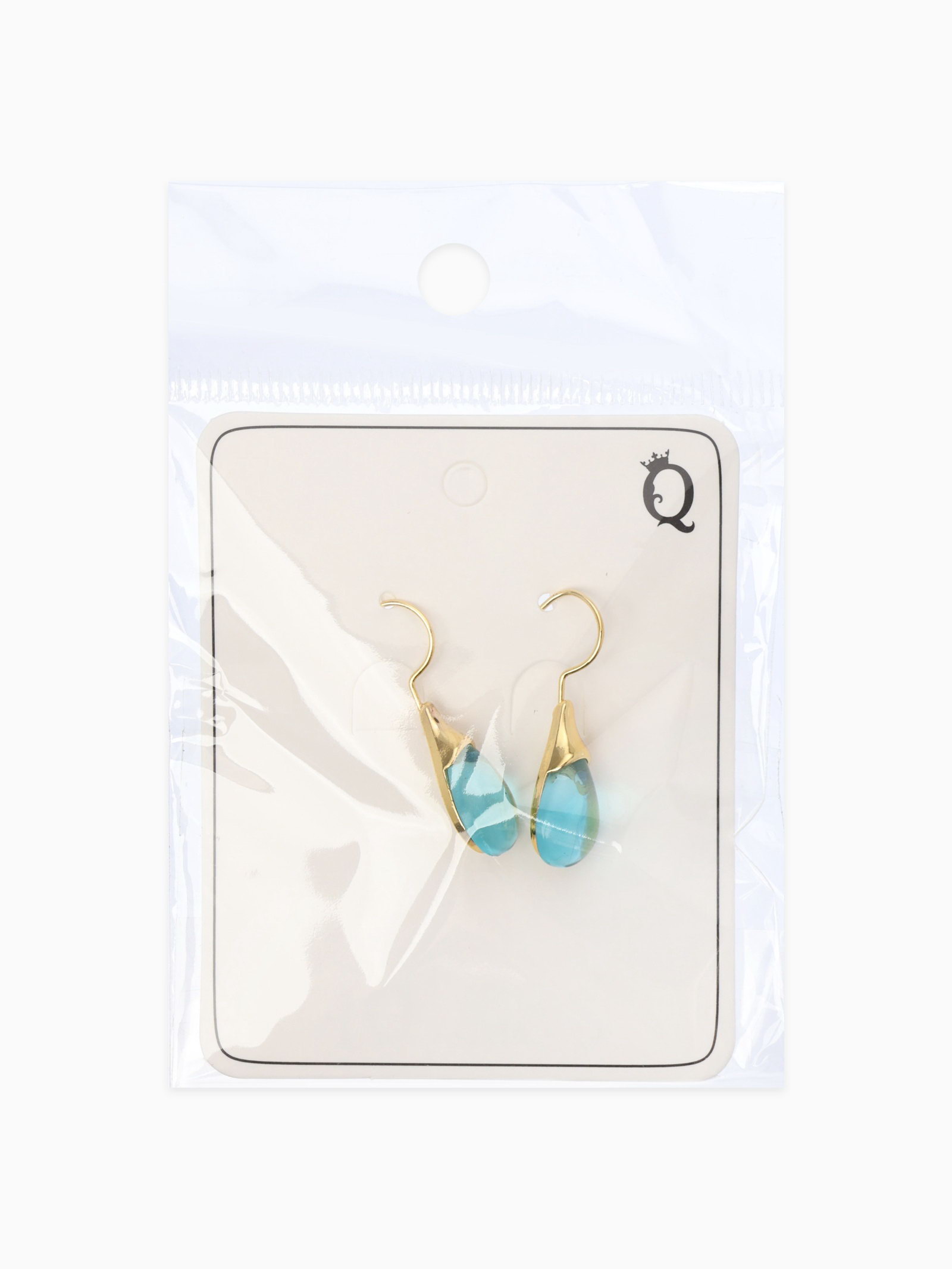 Серьги висячие "Капля", голубые в золоте, 1x3.1x1 см., QF, Китай