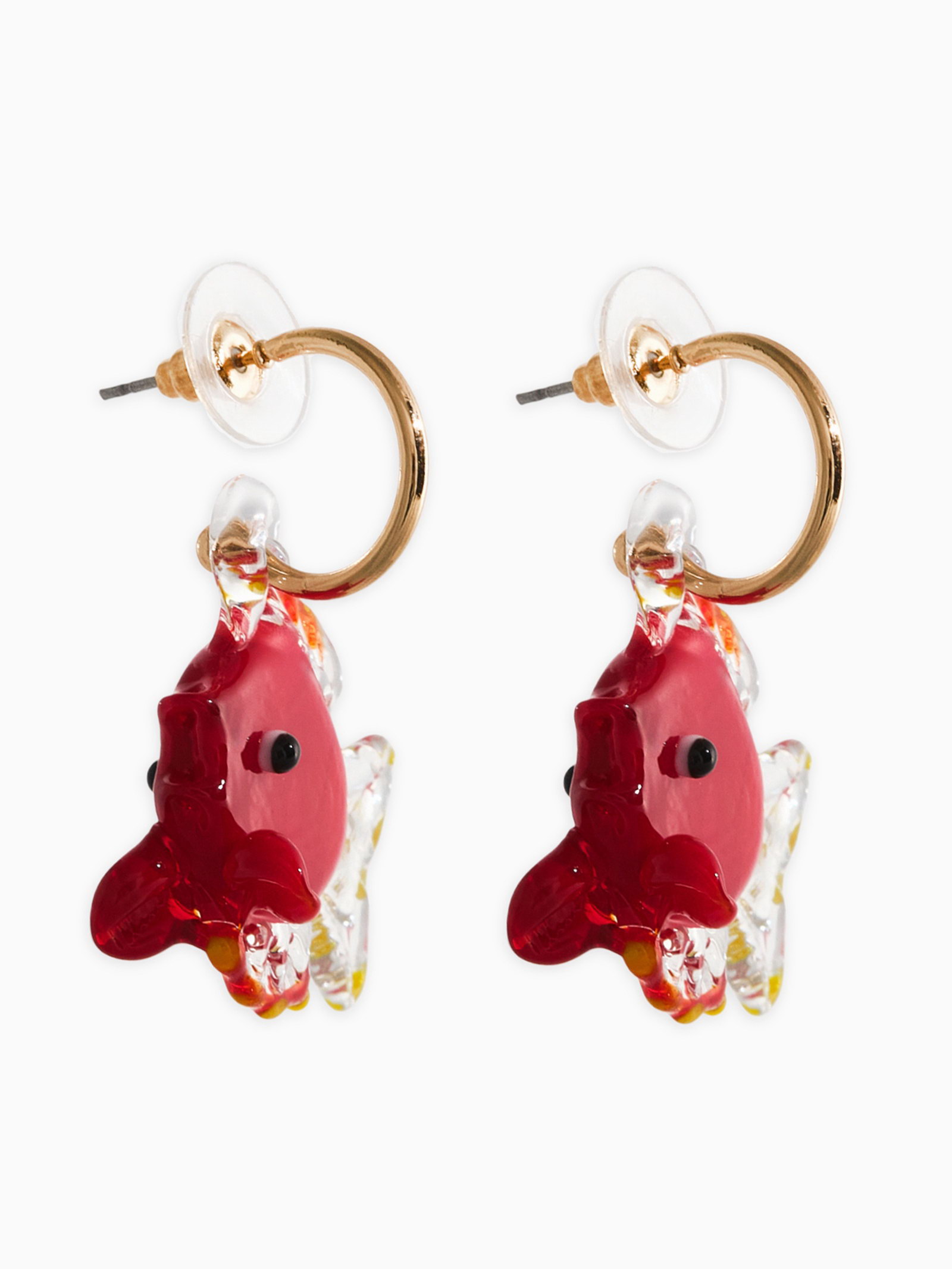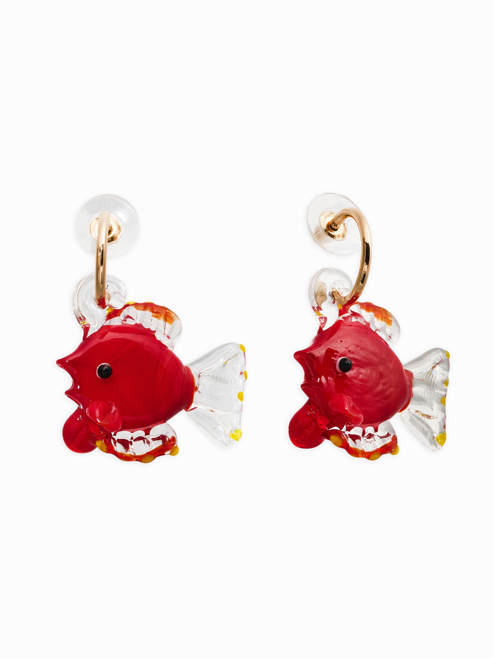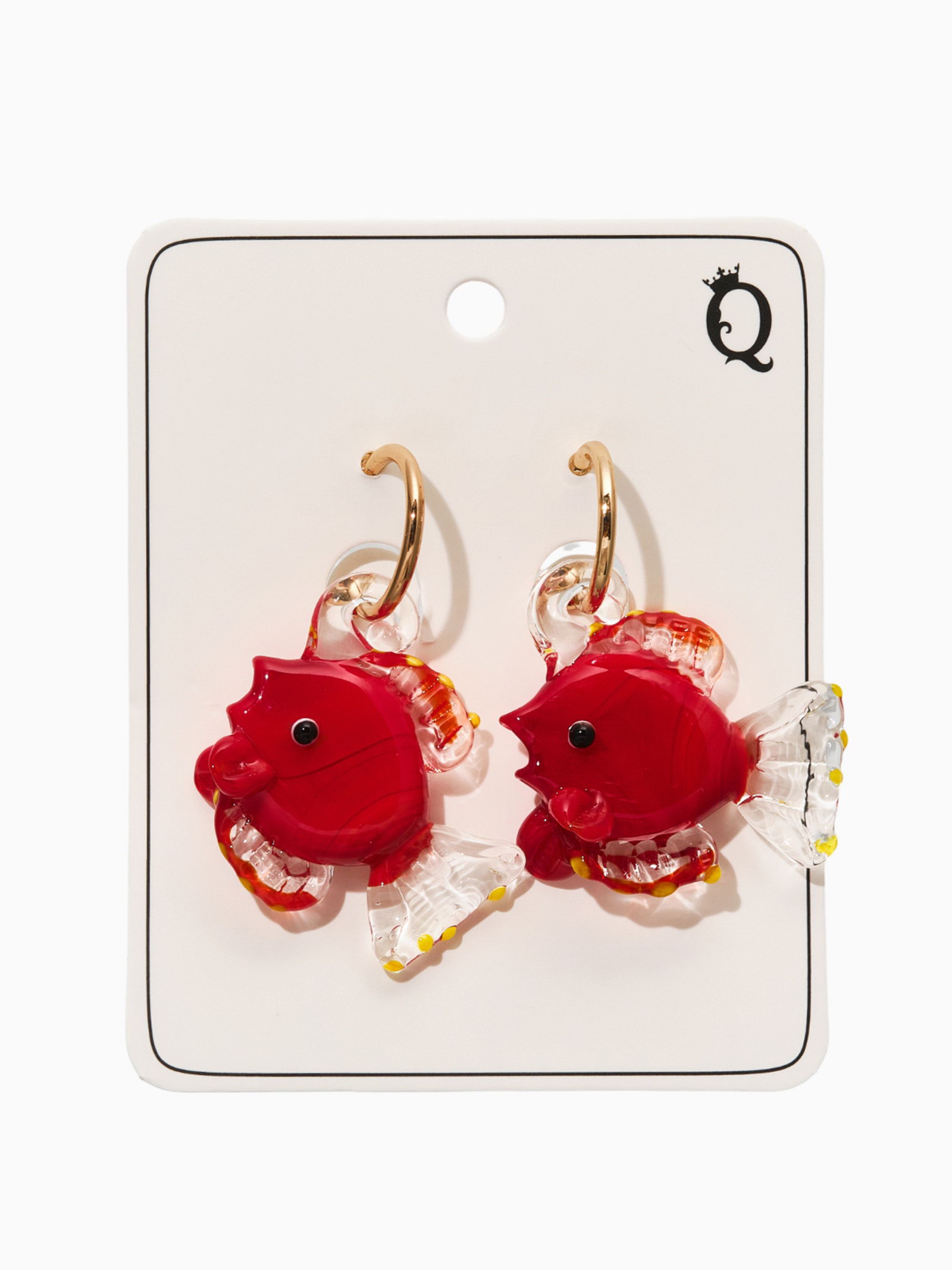 Серьги из стекла "Море. Рыба", красные в золоте, 3x4.5x1.5 см., QF, Китай
