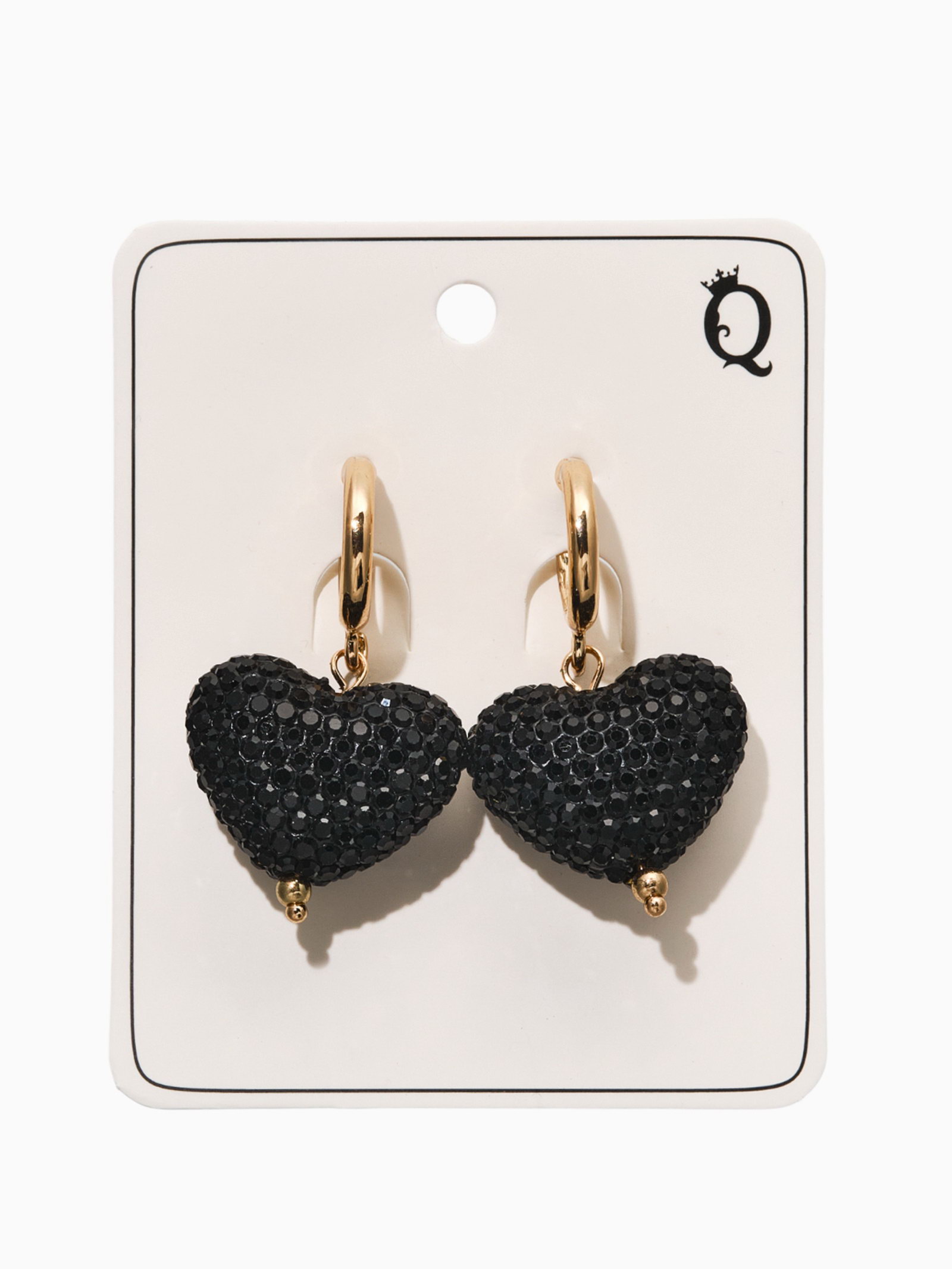 Серьги с подвесками "Вечернее сердце", чёрные в золоте, 2.5x4.5x2 см., QF, Китай