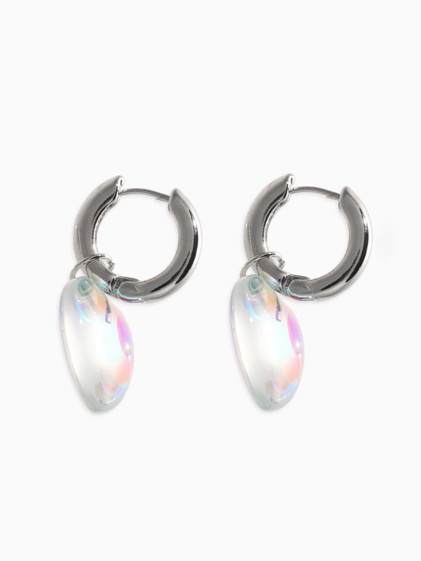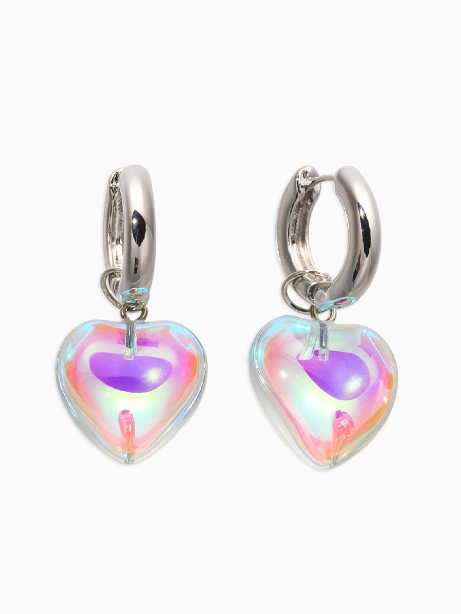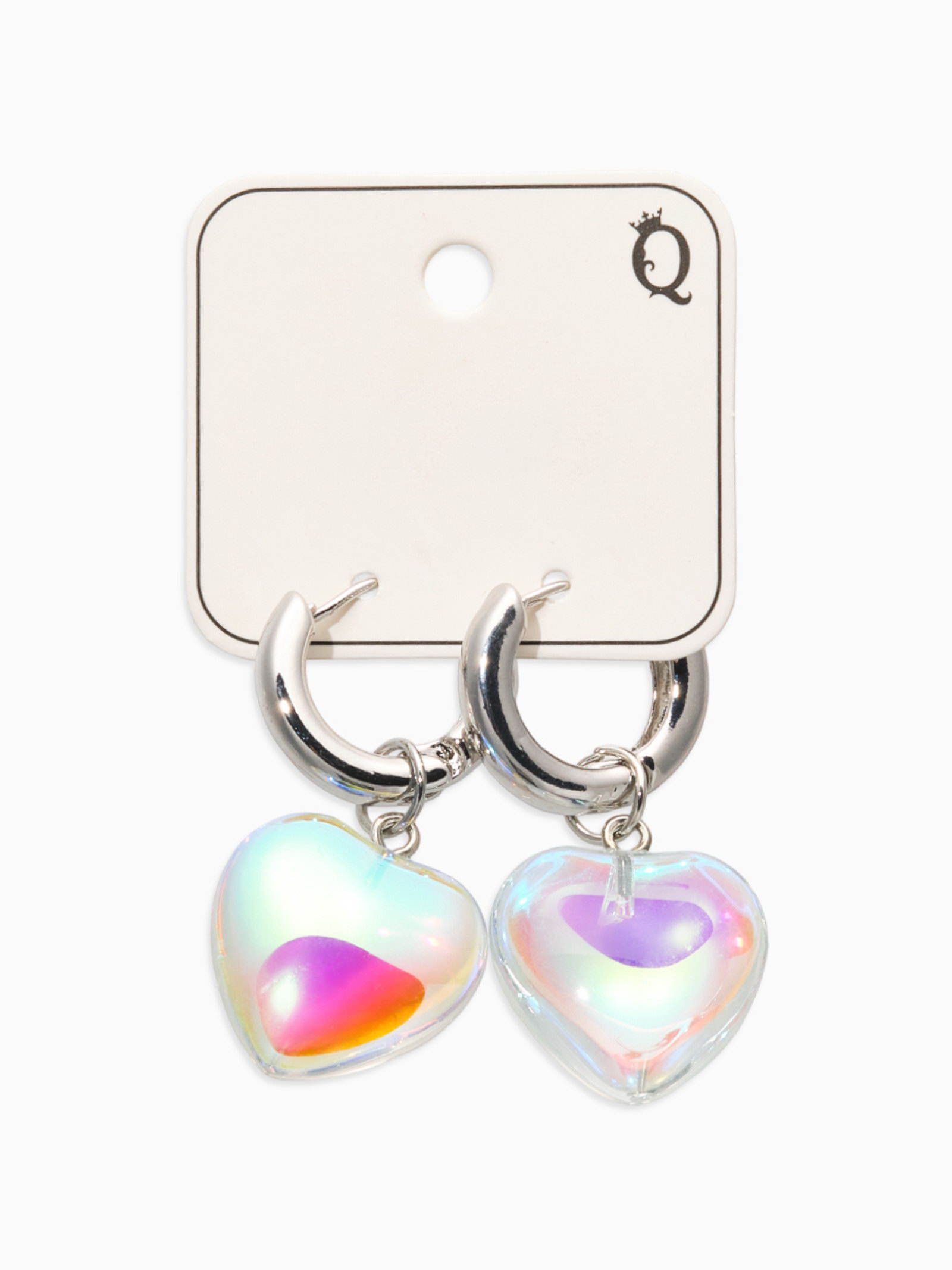 Серьги со съёмным элементом "Сердце", радужные в серебре, 1.5x3.5x0.8 см., QF, Китай