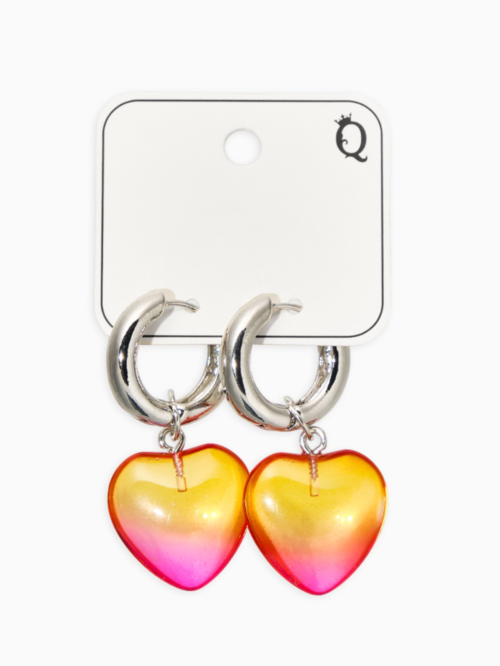 Серьги со съёмным элементом "Сердце", жёлтые, розовые в серебре, 1.5x3.5x0.8 см., QF, Китай