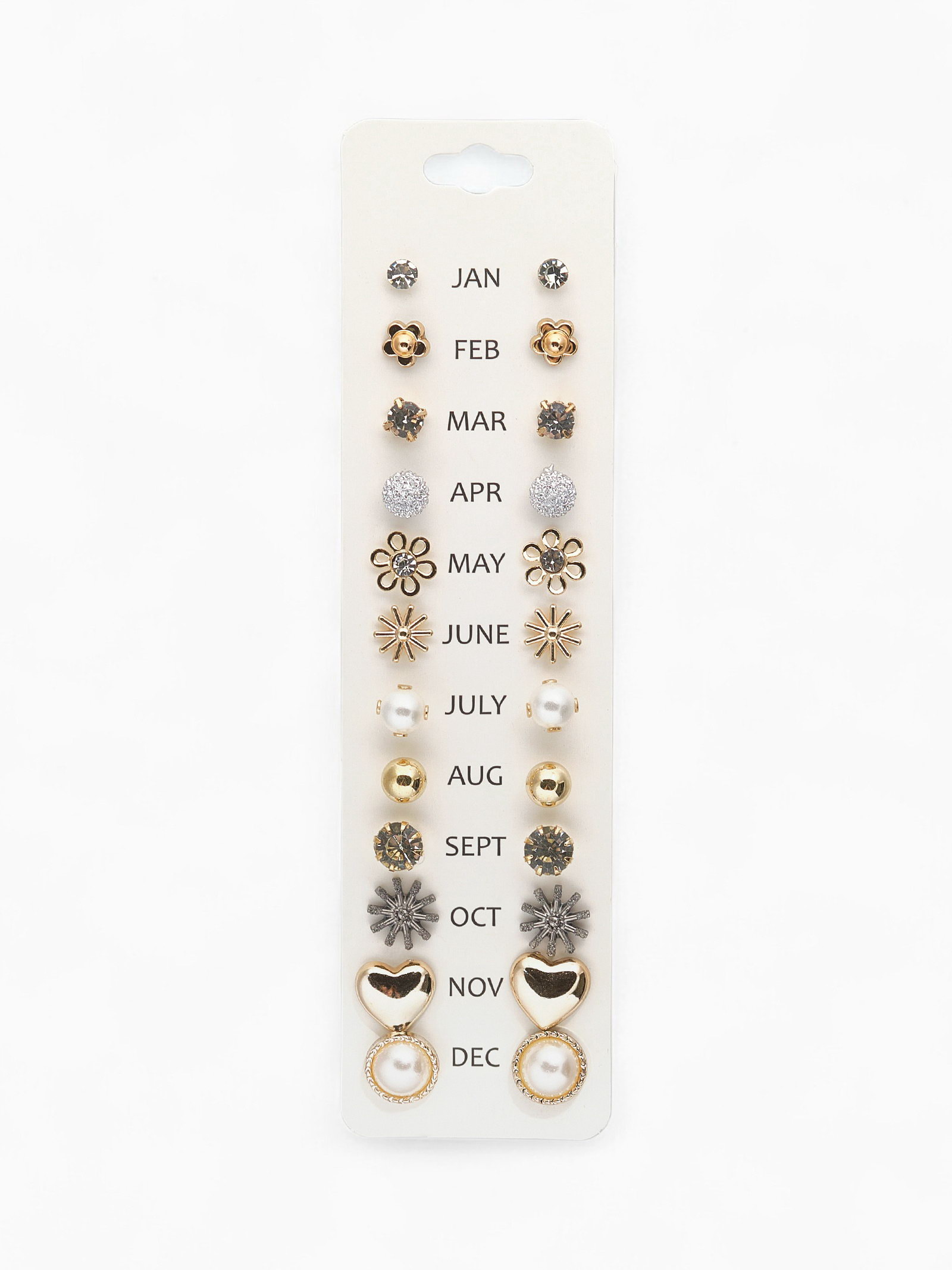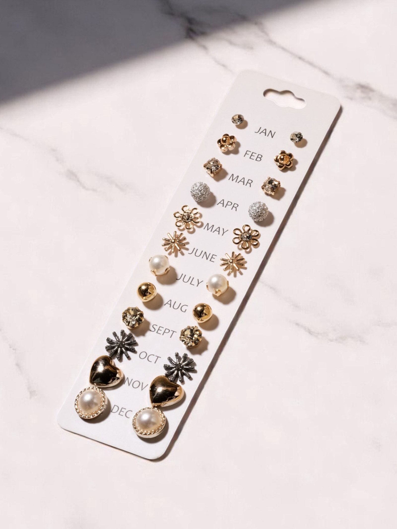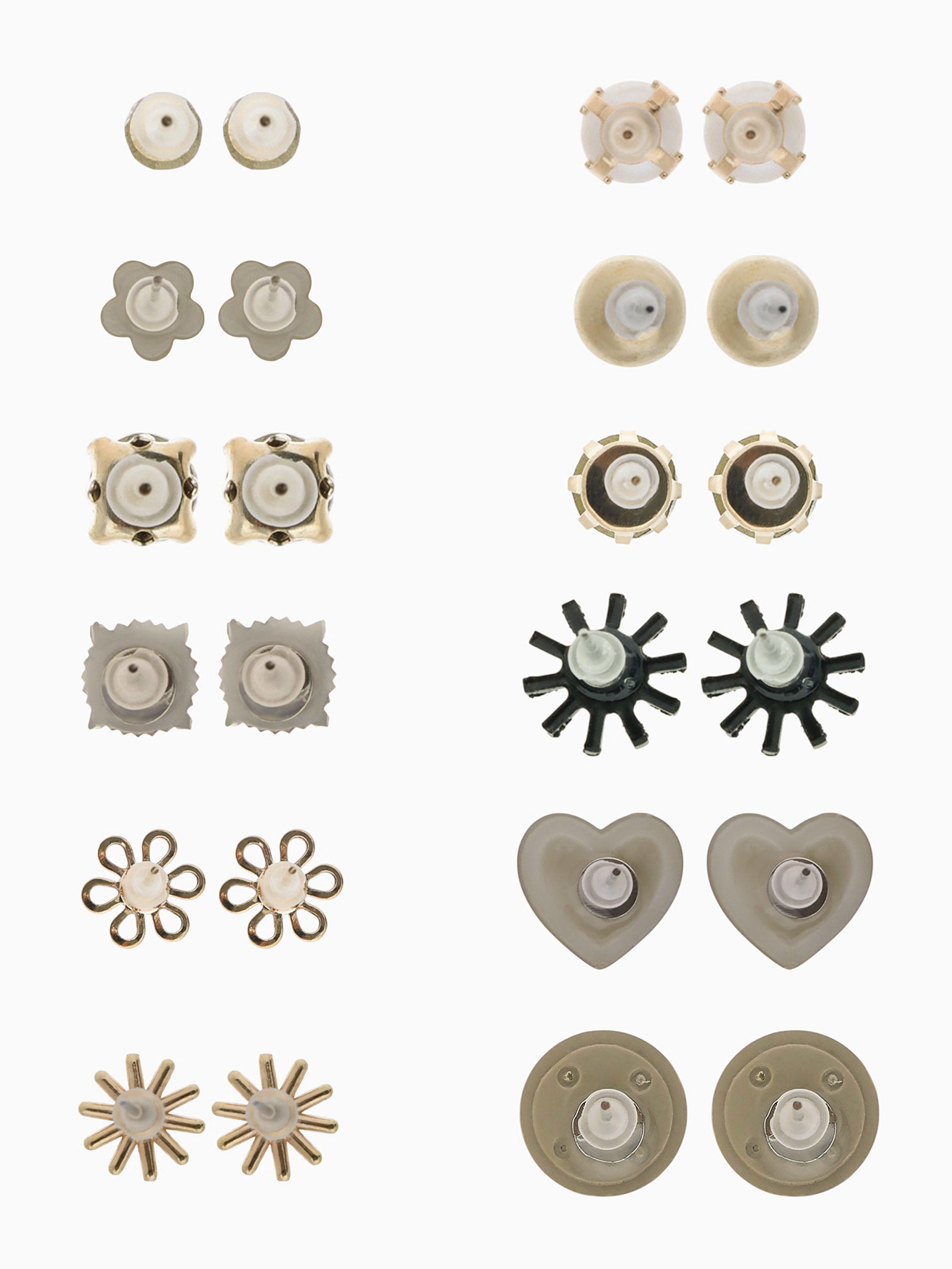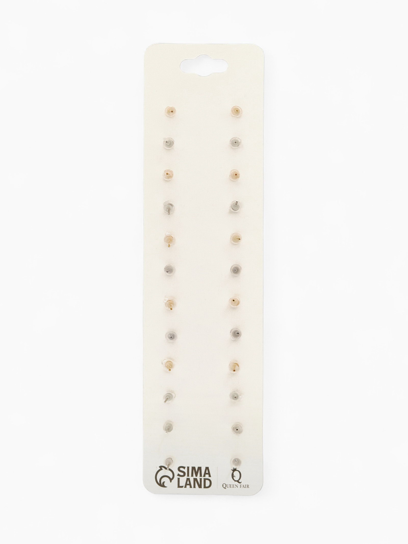 Серьги пусеты One year, 12 пар, цветочное настроение, белые в золоте, 1.1x1.2x1 см., QF, Китай
