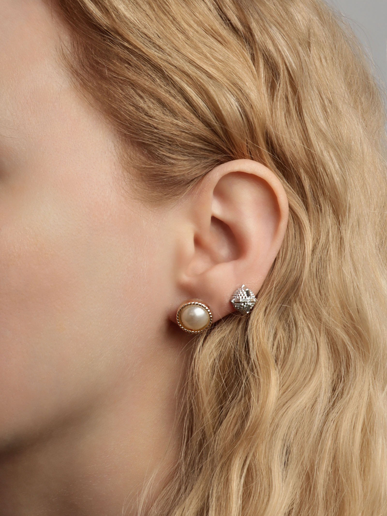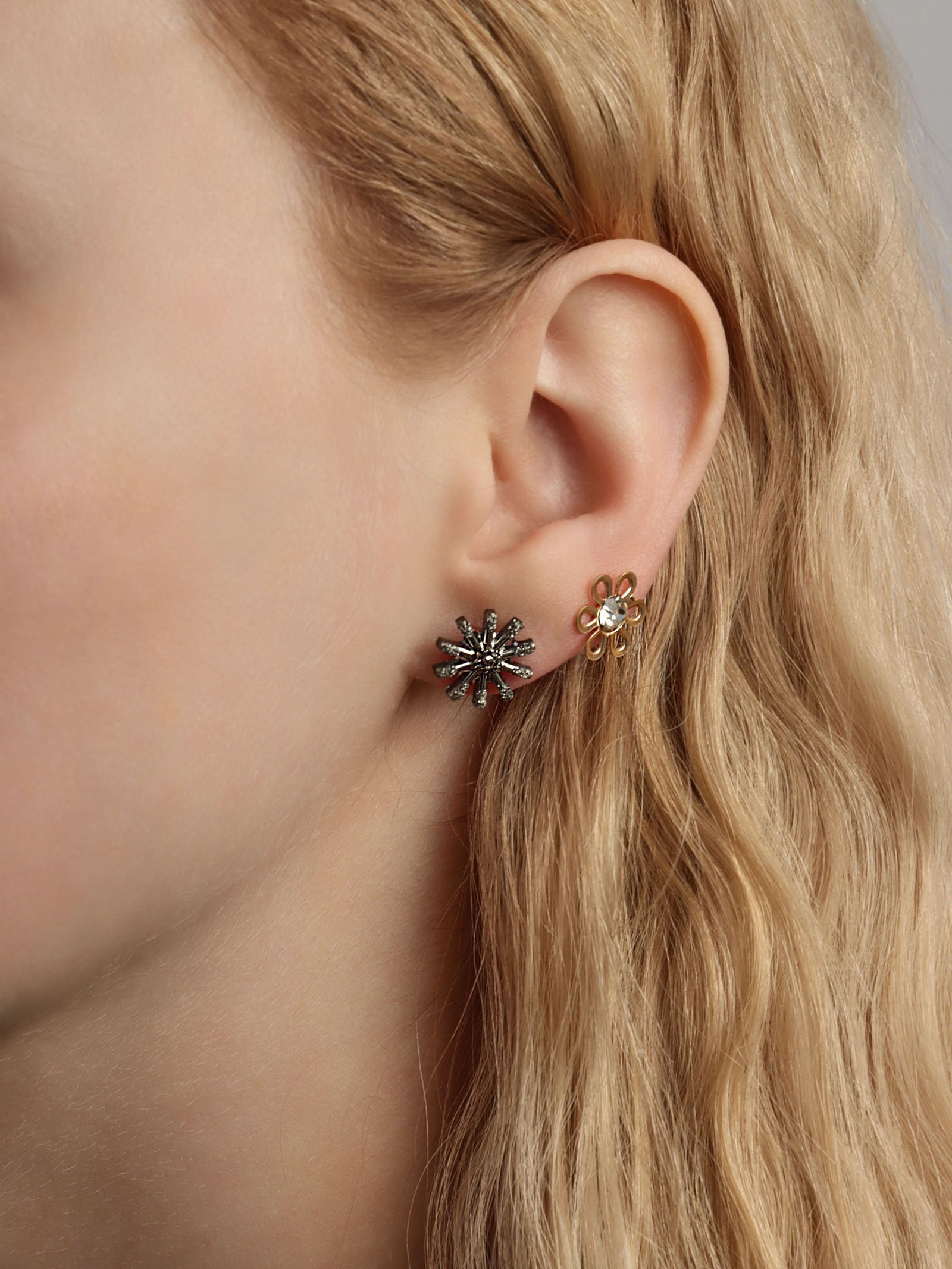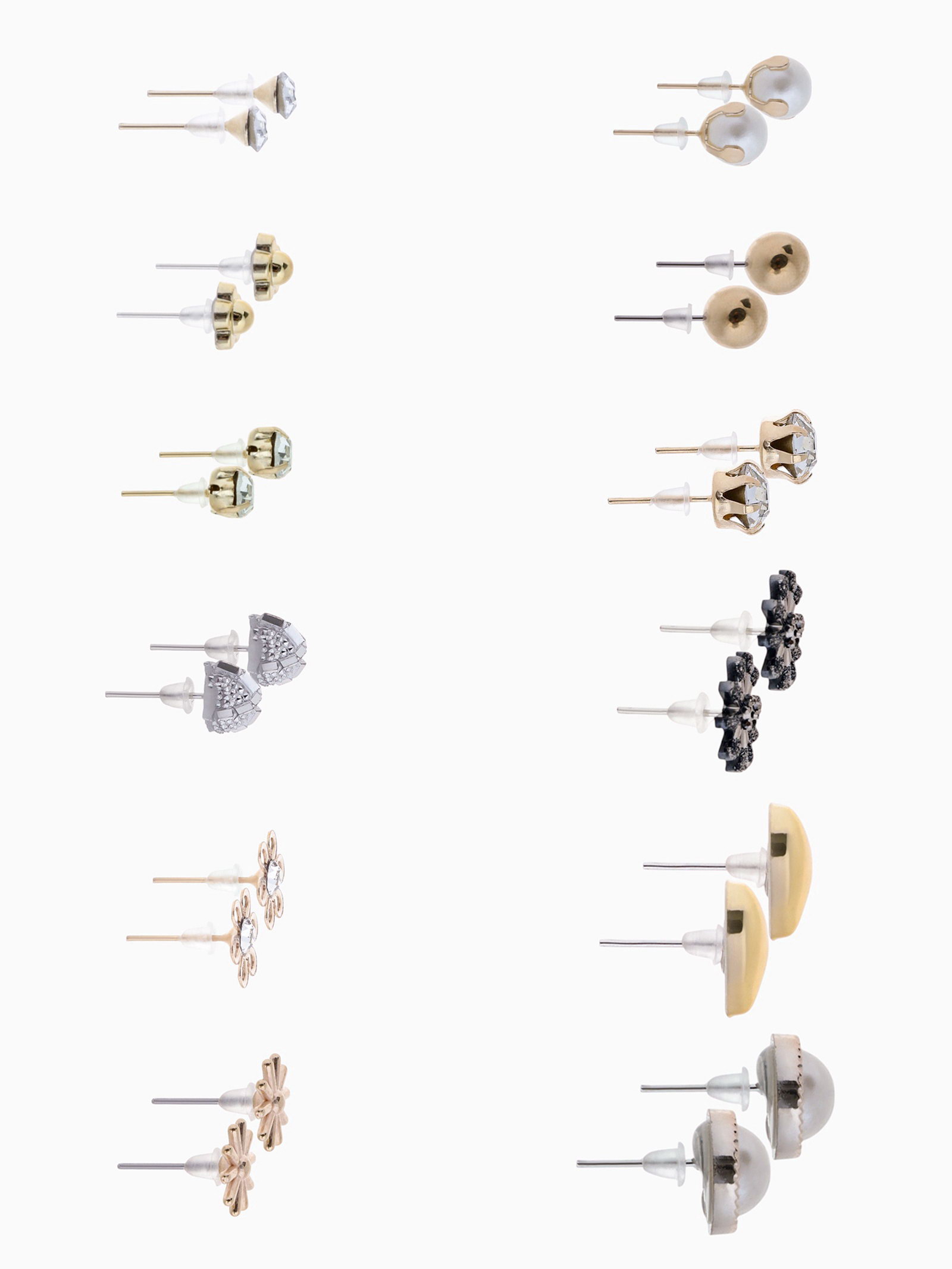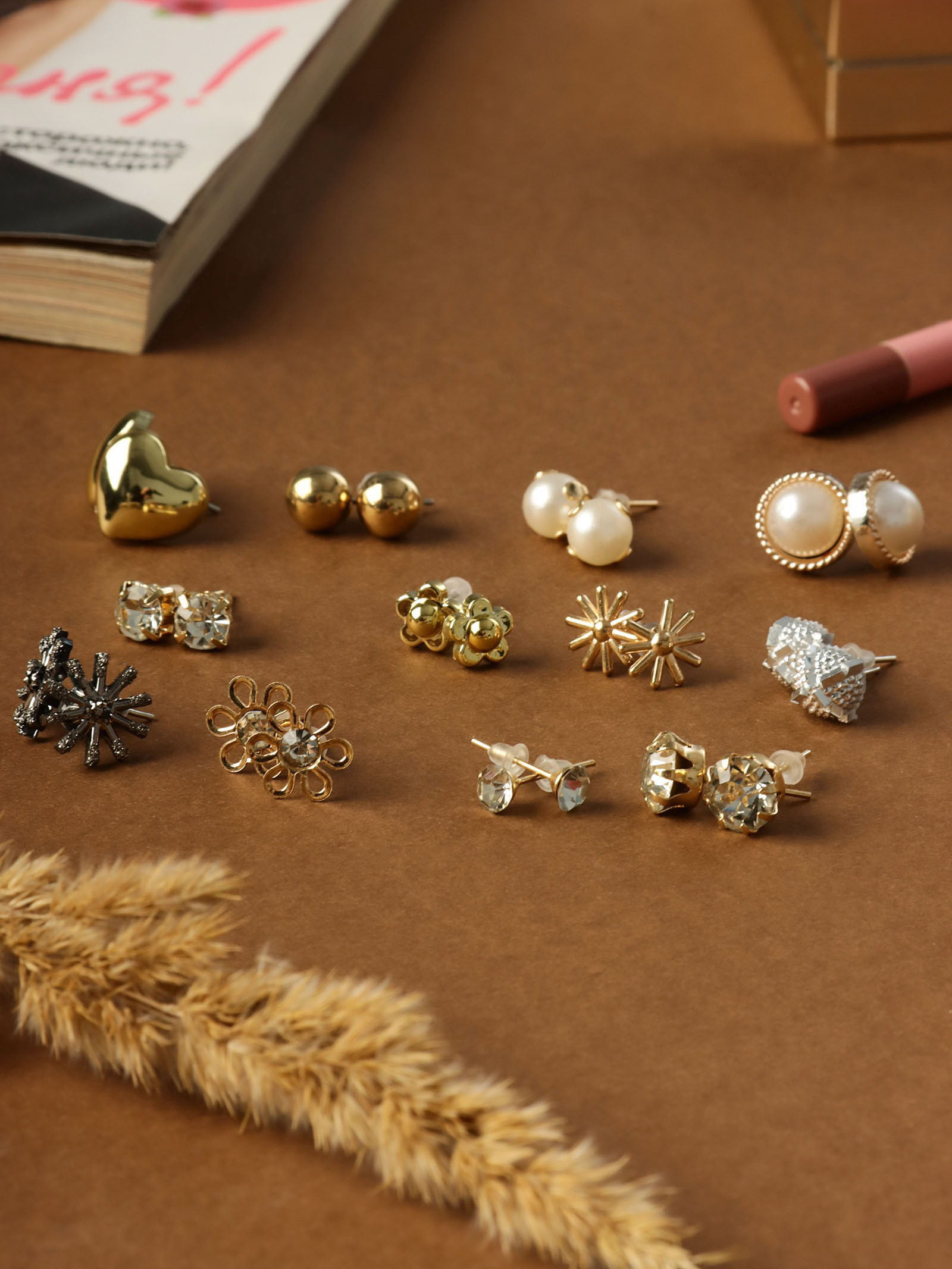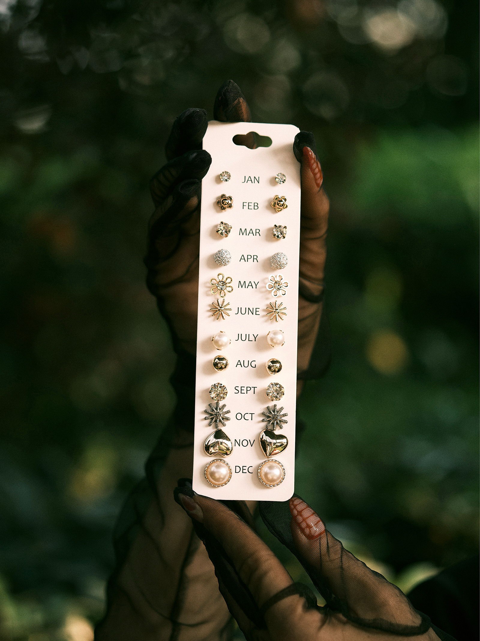 Серьги пусеты One year, 12 пар, цветочное настроение, белые в золоте, 1.1x1.2x1 см., QF, Китай