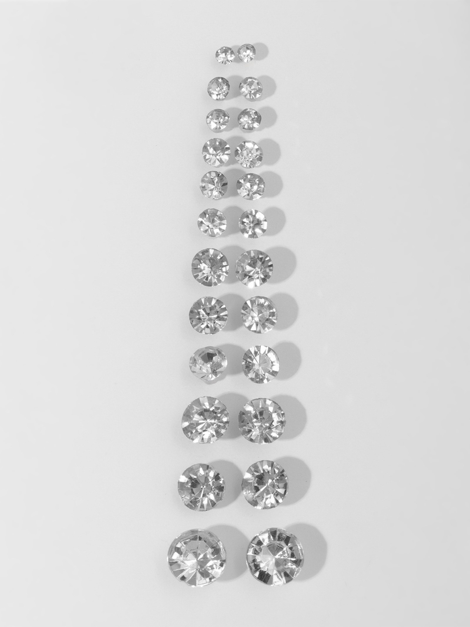 Серьги пусеты One year, 12 пар, классика, белые в серебре, 1.2x1.2x1 см., QF, Китай
