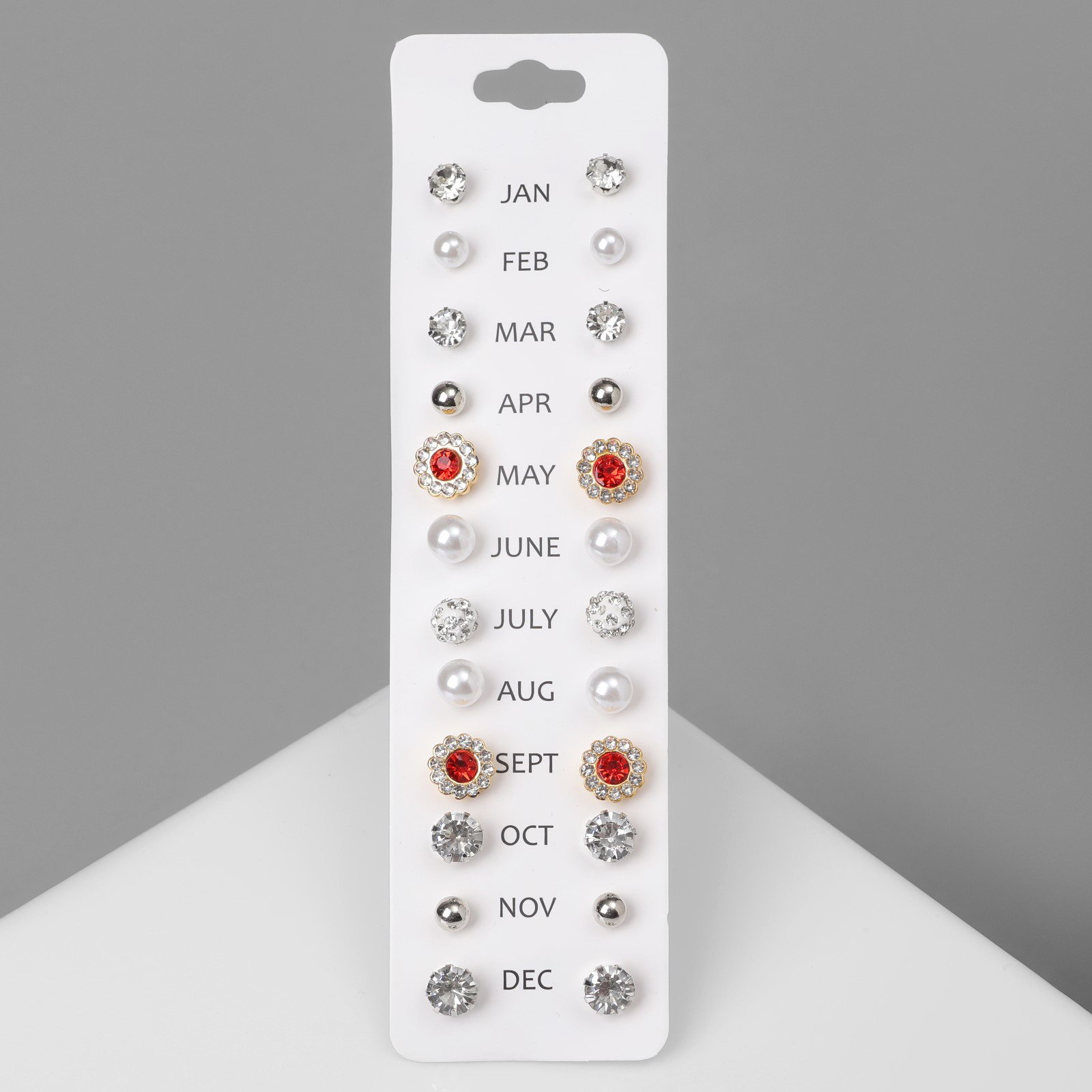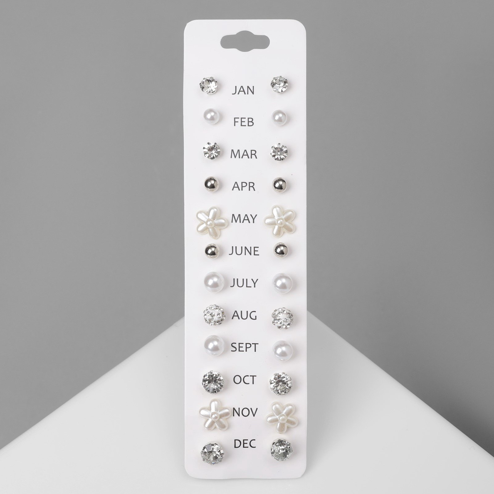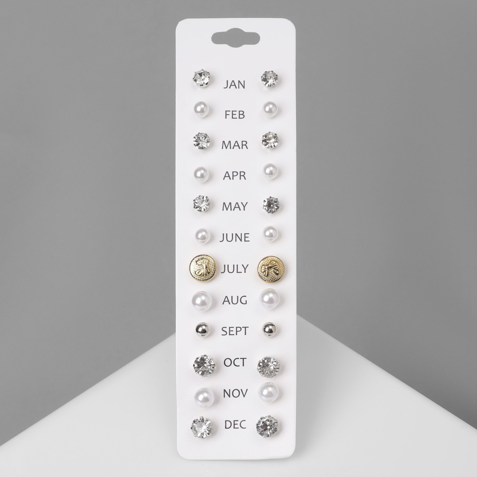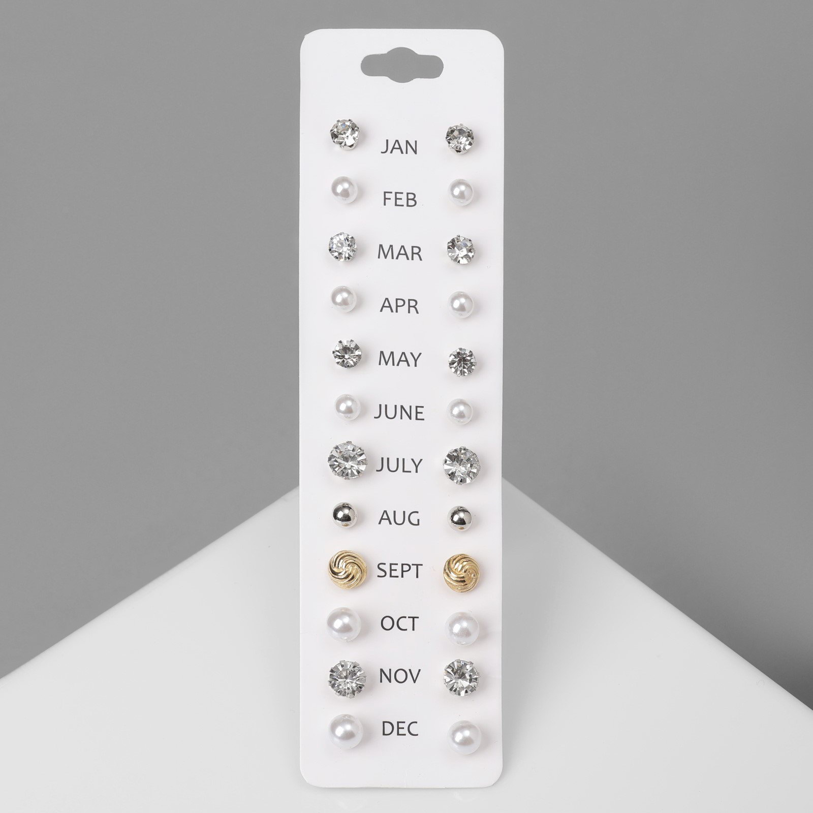 Серьги пусеты One year, 12 пар, строгий стиль, миксы, 1x1.1x1 см., QF, Китай