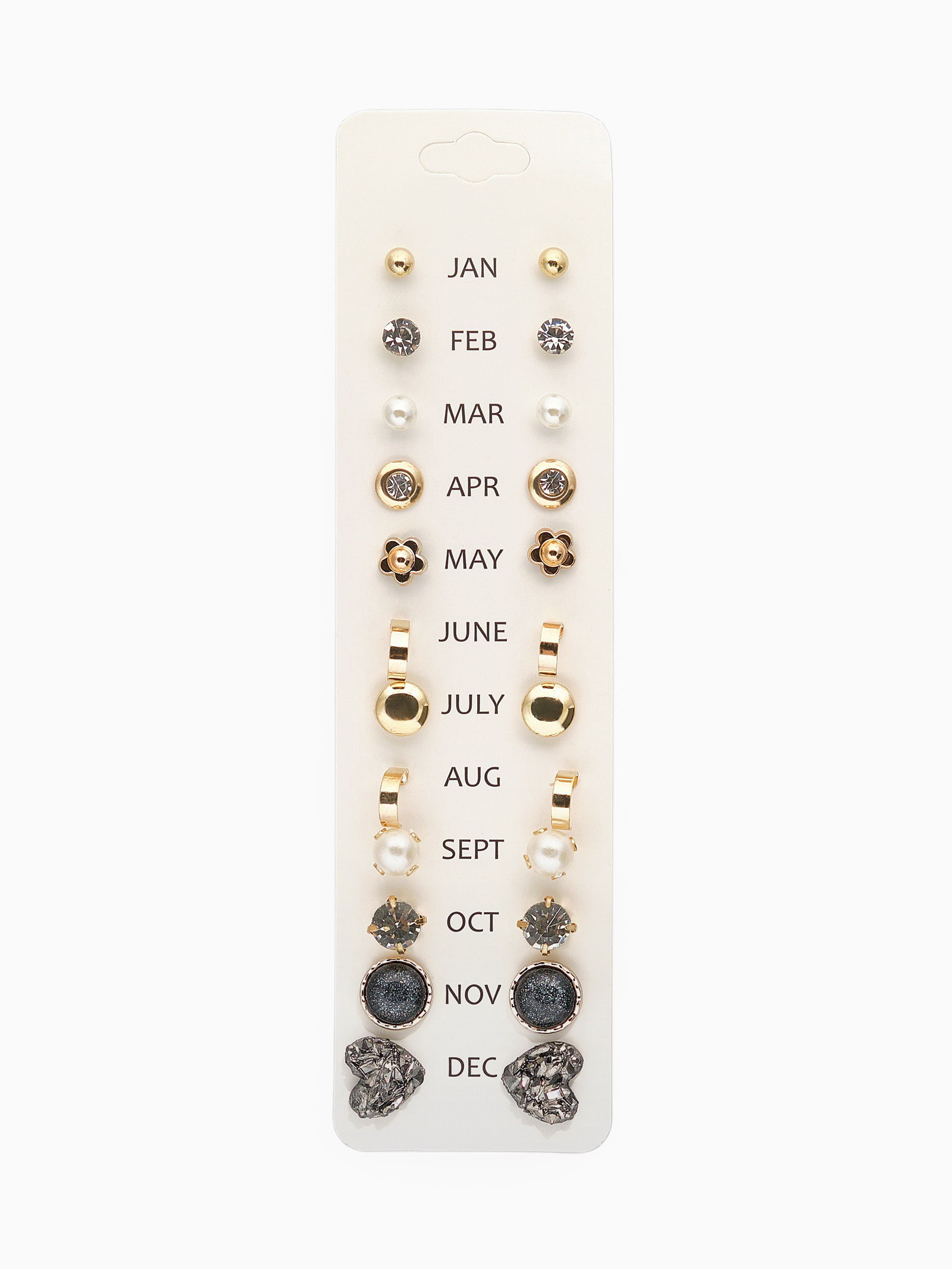 Серьги пусеты 12 пар One year, сердцем к сердцу, цветные в золоте, 1x1.1x1 см., QF, Китай