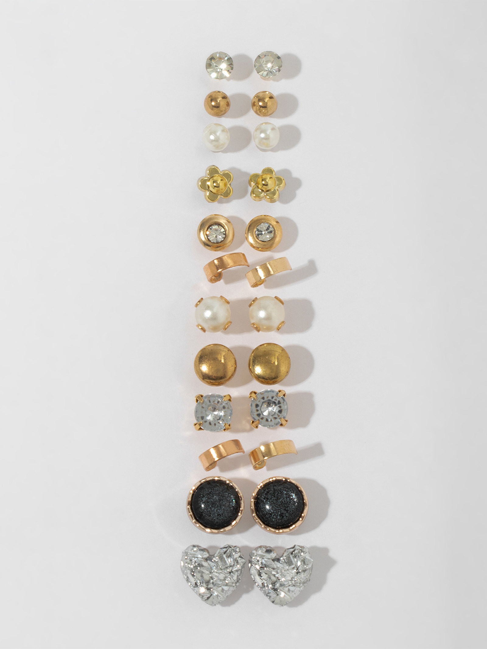 Вид: Серьги, Серьги Вид упаковки: Пакет, Подложка Тематика: Кристаллы, Сердце Для кого: Для девочки, Для женщины Вставка/Подвеска: Жемчуг, Пластик, Стразы Размер упаковки: 4.5 x 1.5 x 17 см. Длина, см: 1.1 В наборе, шт.: 12 Тематика подарка: Бижутерия Возраст: Для взрослых Составляющие набора: Серьги Температурное ограничение: Нет Бижутерия с открыткой: Нет Вид застёжки: Застёжка пусет (гвоздик) Тематика праздника: Универсальная тематика Тематика праздника: Универсальная тематика tnved: 7117190000 Цвет: Разноцветный Цвет фурнитуры: Золотой Материал основания: Металл Материал основы: Металл Набор: Да Набор из двенадцати пар изящных серёг-гвоздиков с разноцветными акцентами на золотой основе олицетворяет гармонию и тепло, вдохновляя на новые образы. Компактный размер 1,1 см делает каждую пару универсальным украшением, которое легко впишется в повседневный или праздничный стиль. Металлическая основа с золотистым покрытием гарантирует прочность и долговечность, а застёжка пусет обеспечивает комфорт и надёжную фиксацию. Вставки из страз, пластика и жемчуга придают украшениям особое сияние и объём, подчёркивая тематику сердца и кристаллов.