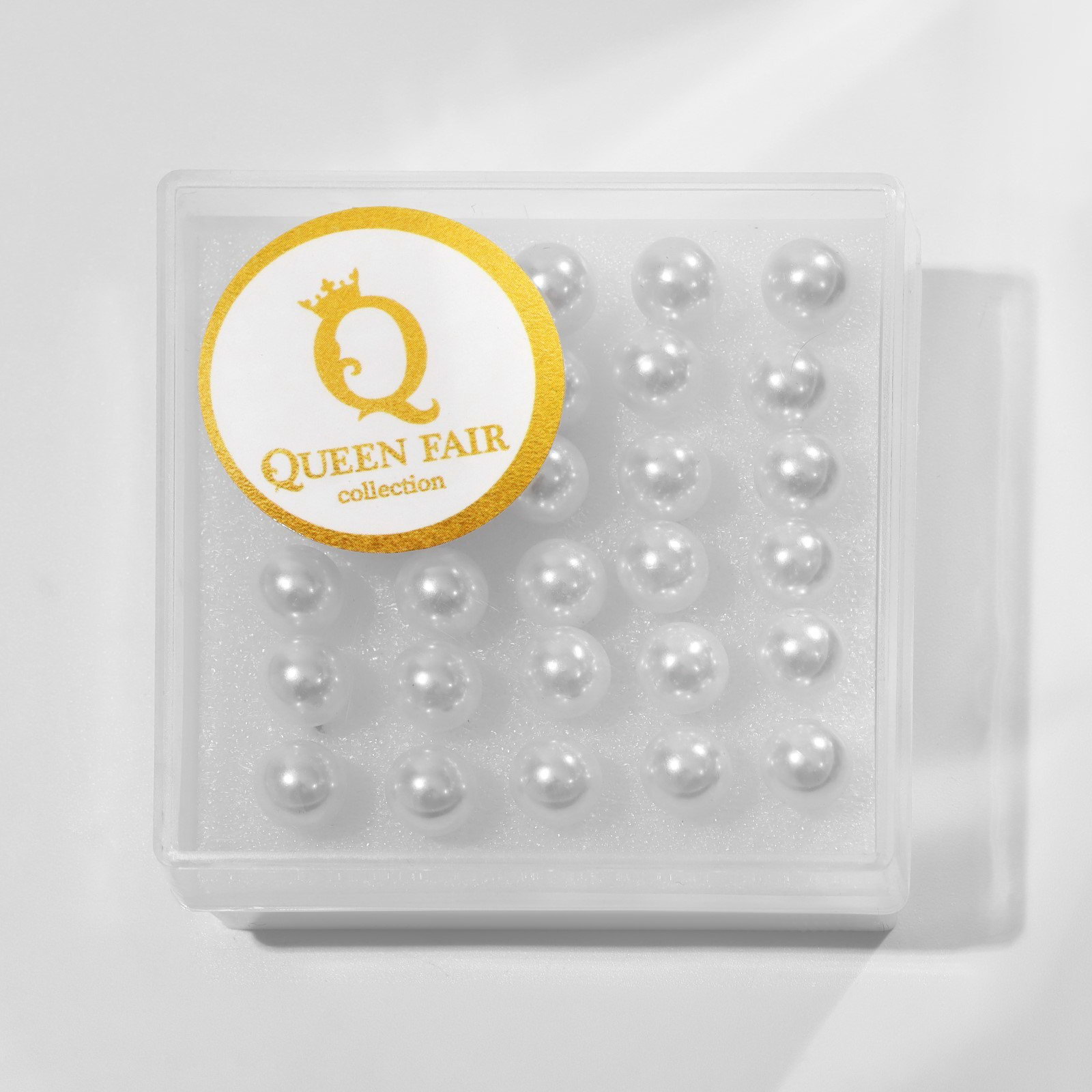 Серьги пусеты "Жемчужинки", 15 пар, бусинки d=8 мм, белые в серебре, 0.8x0.8x0.8 см., QF, Китай