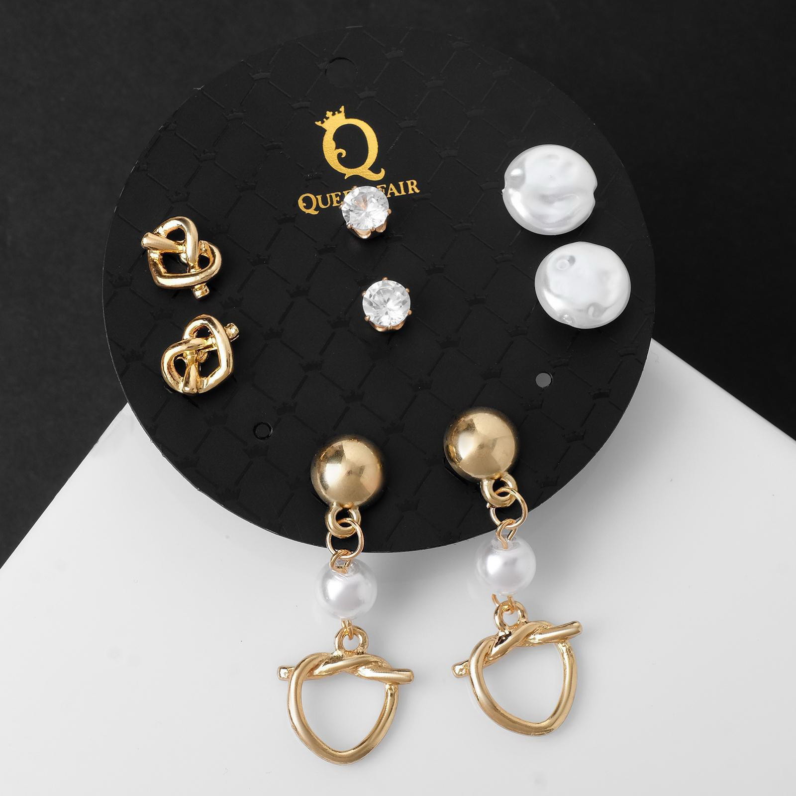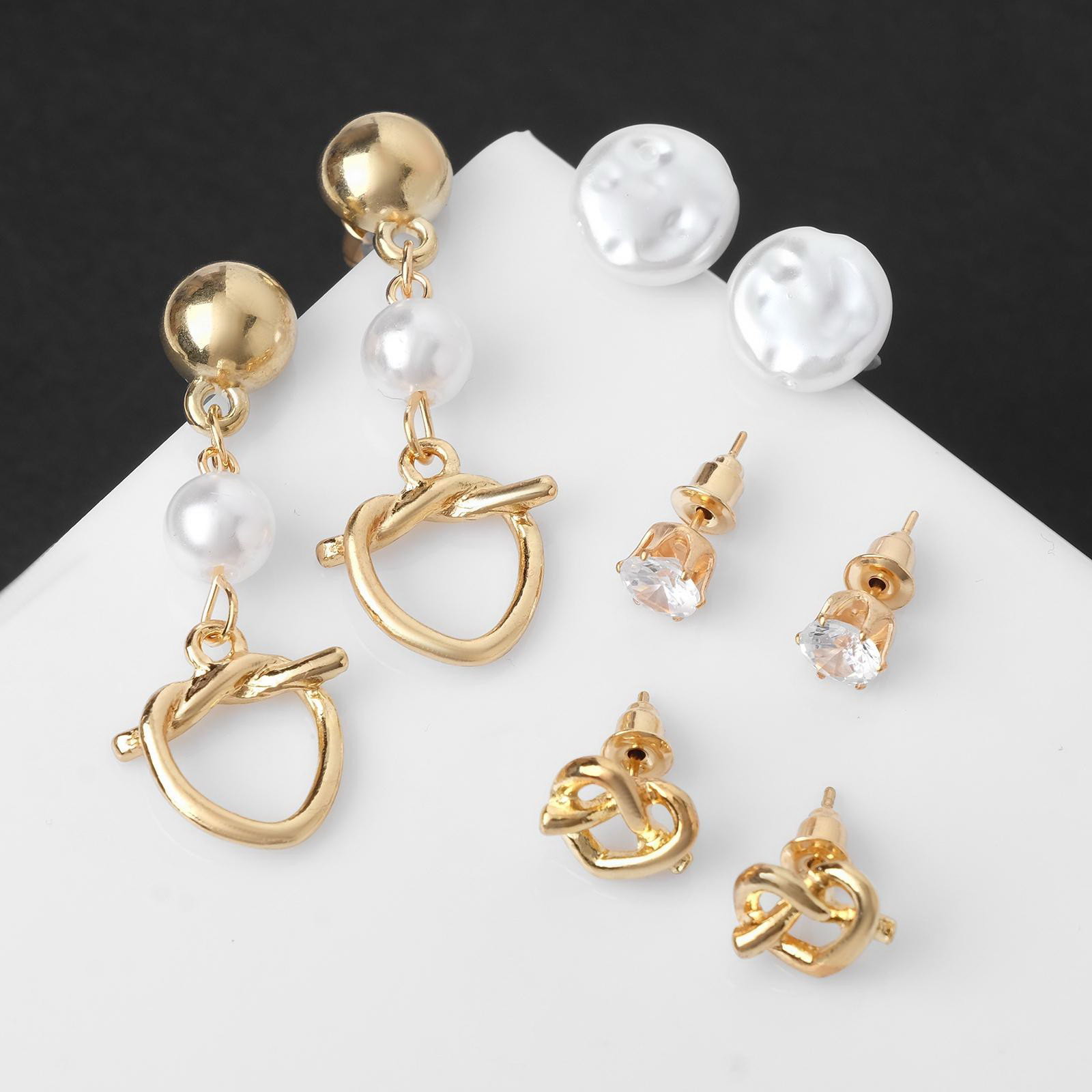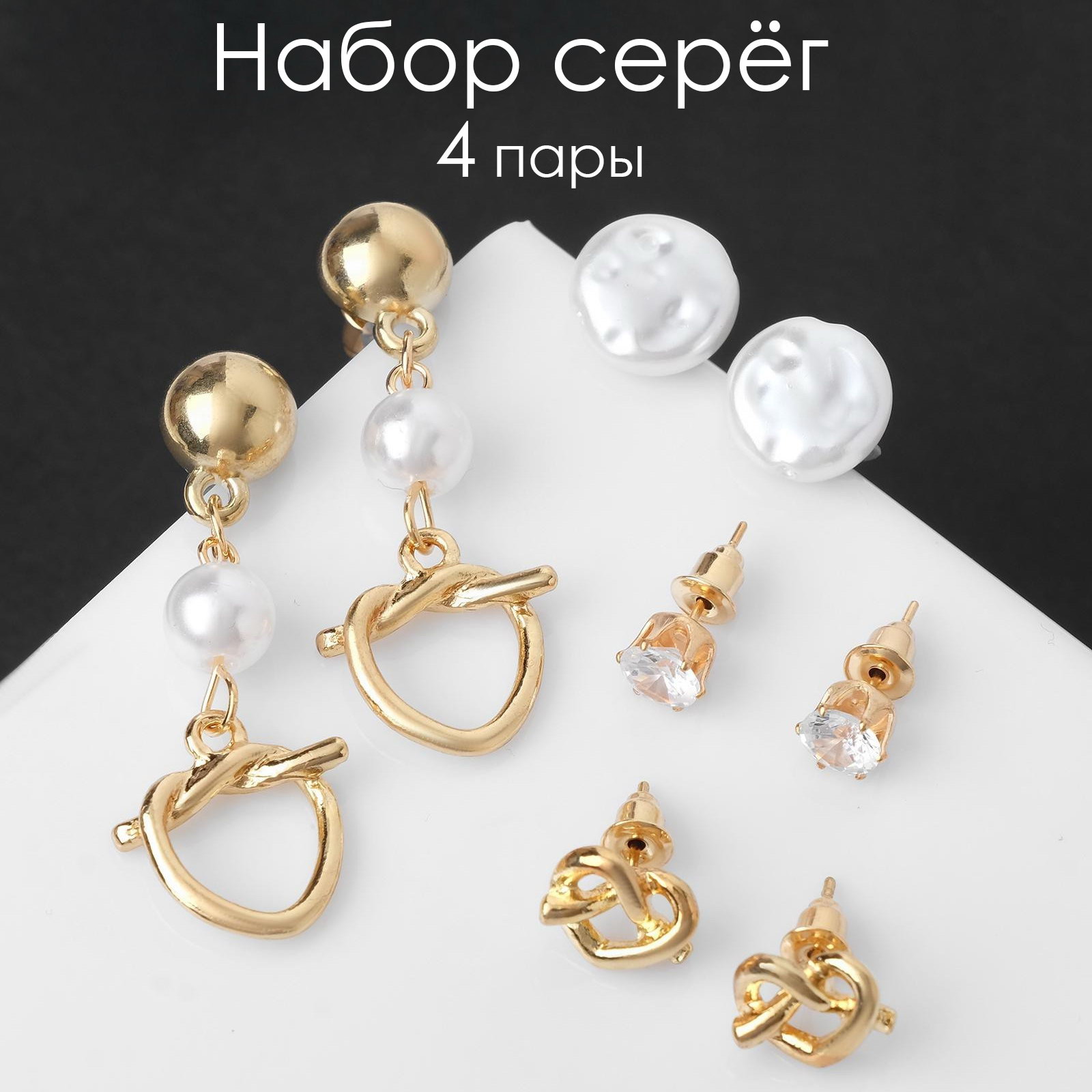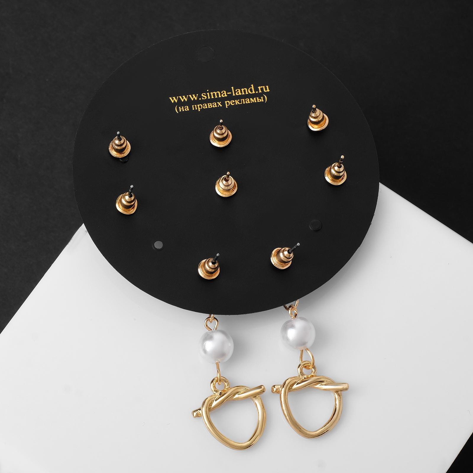 Пусеты 4 пары "Волшебство" сердца на узелке, цвет белый в золоте, 1.7x4x0.5 см., Queen fair, Китай