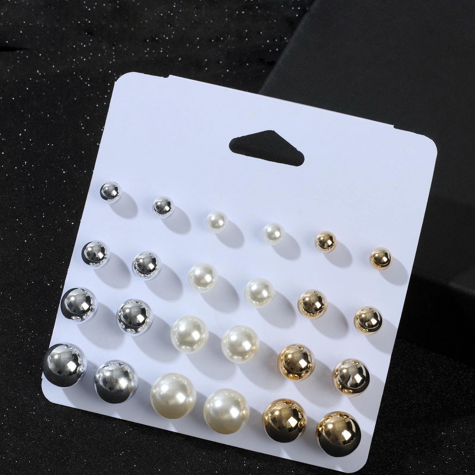 Серьги пусеты "Рэйчел", 12 пар, бусины d=6-12 мм, цветные, 1.2x1.2x1 см., QF, Китай