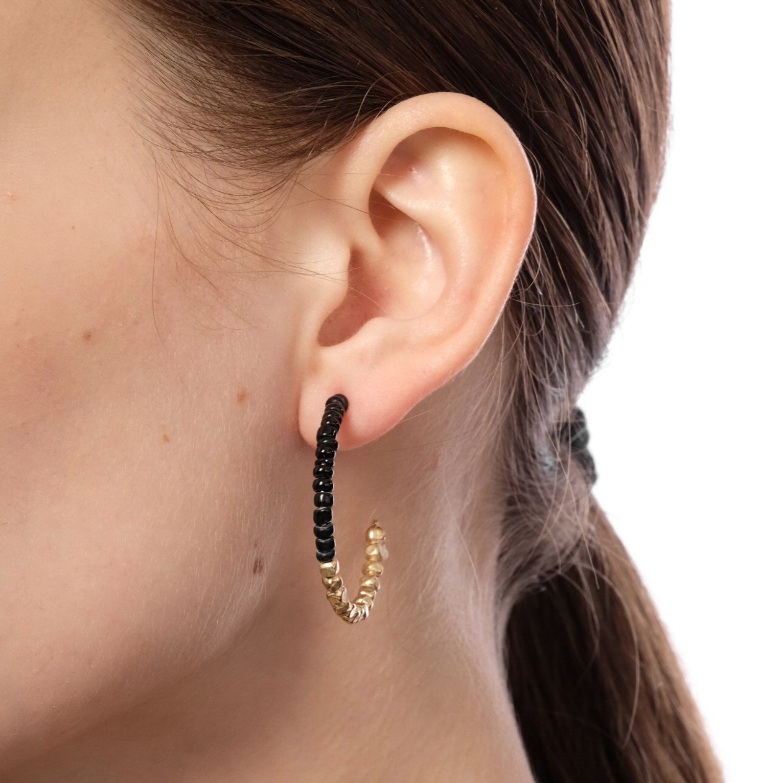 Серьги набор 8 пар "Ночь" кольца, цвет чёрно-белый в золоте, d=4, 4x4x0.5 см., QF, Китай
