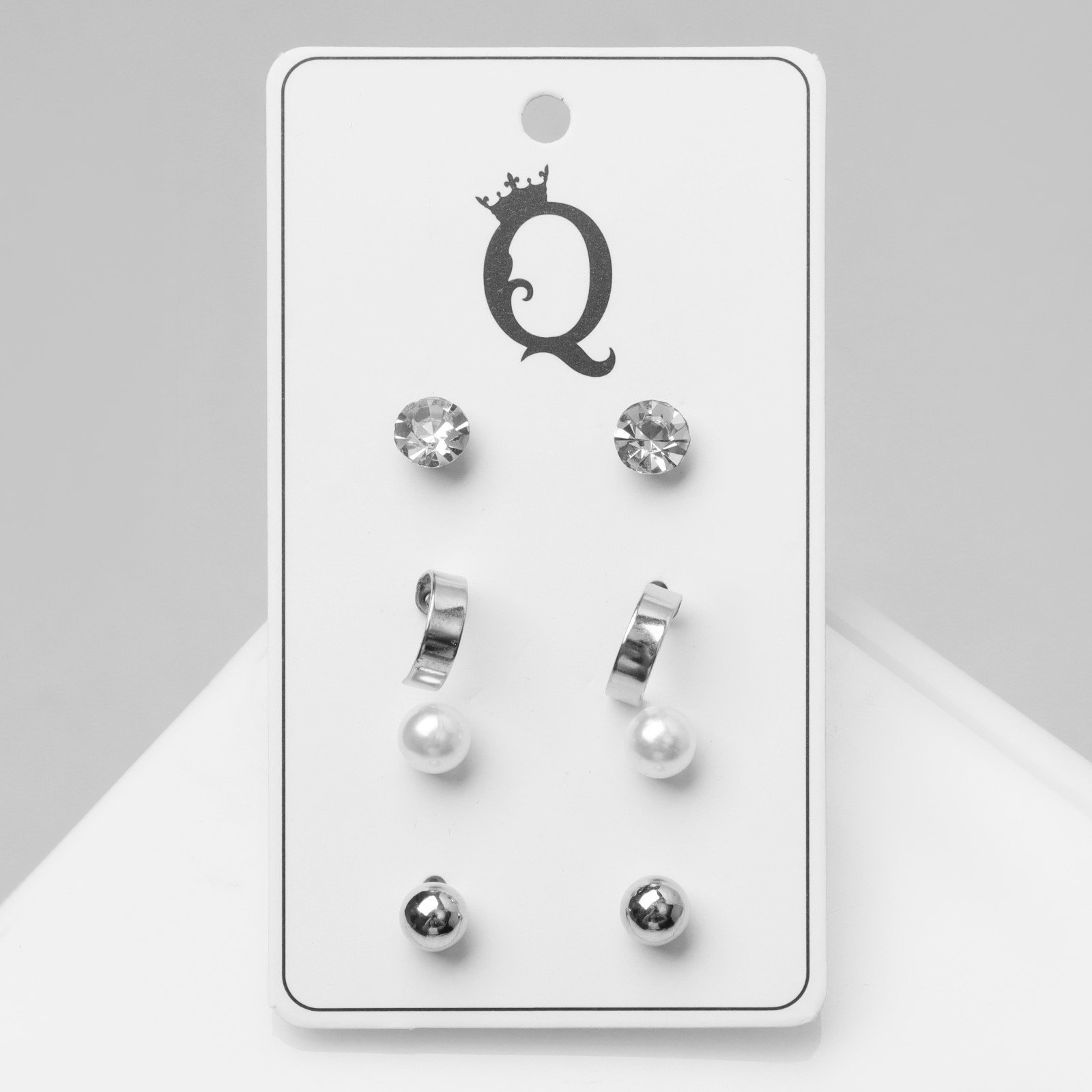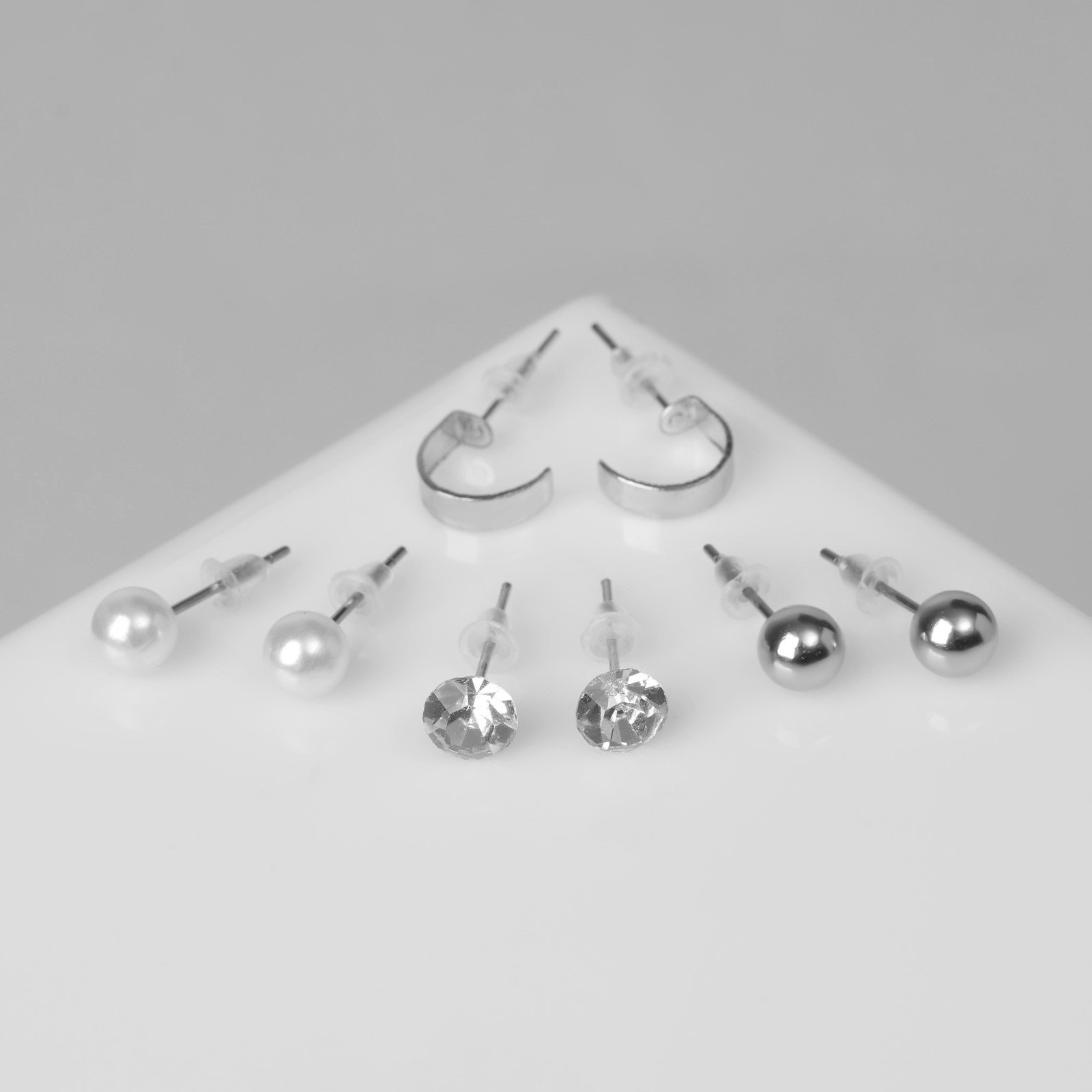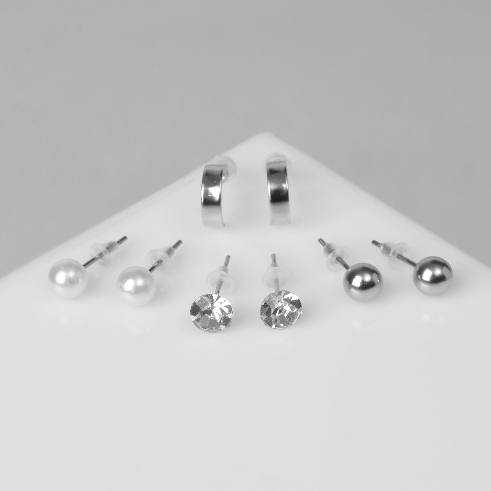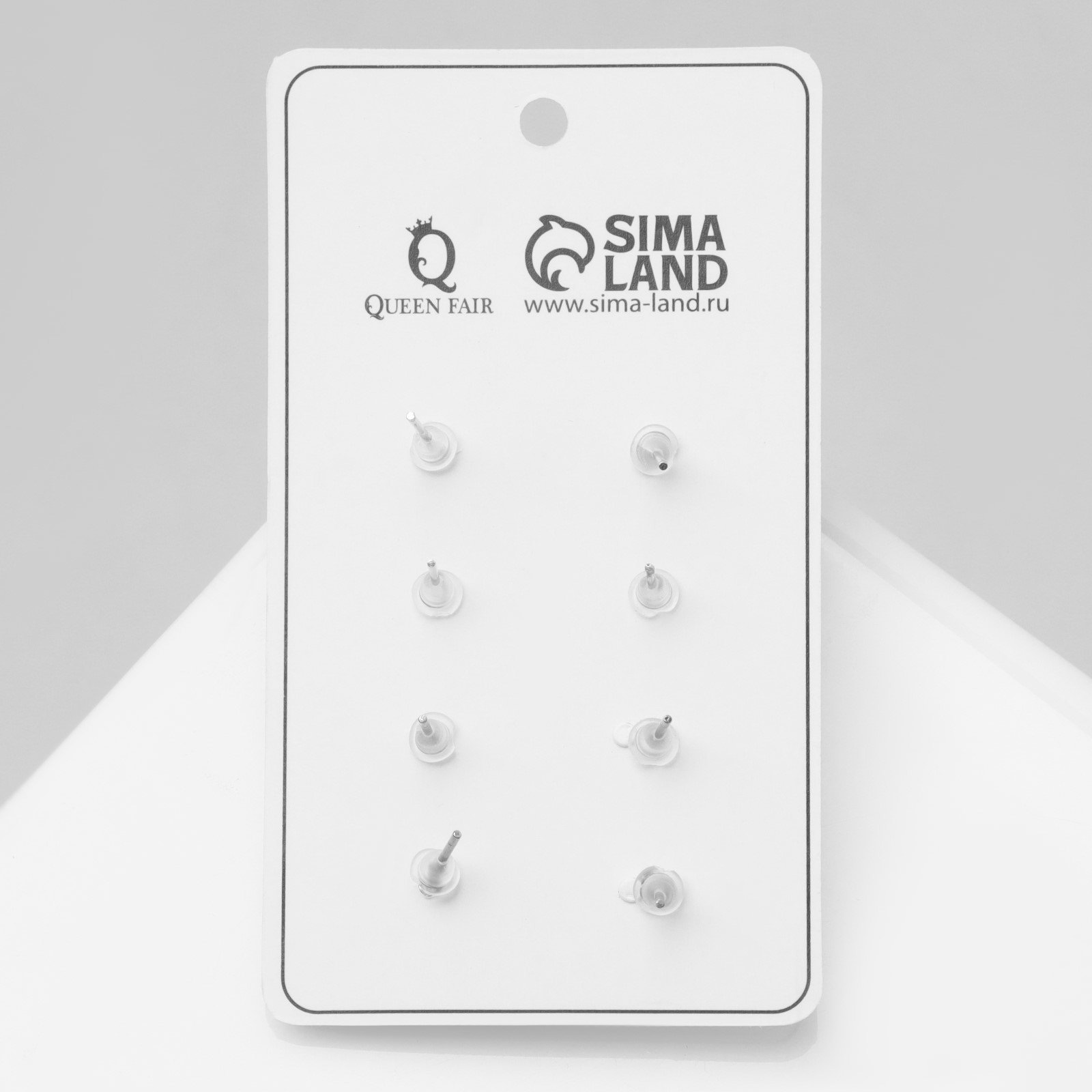 Серьги пусеты "Романтика", 4 пары, кольца, белые в серебре, 0.5x1x0.5 см., QF, Китай