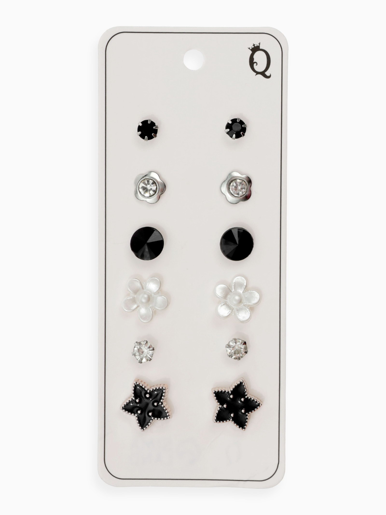 Серьги пусеты "Романтика", 6 пар, цветочки, чёрно-белый в серебре, 1x1.2x0.5 см., QF, Китай