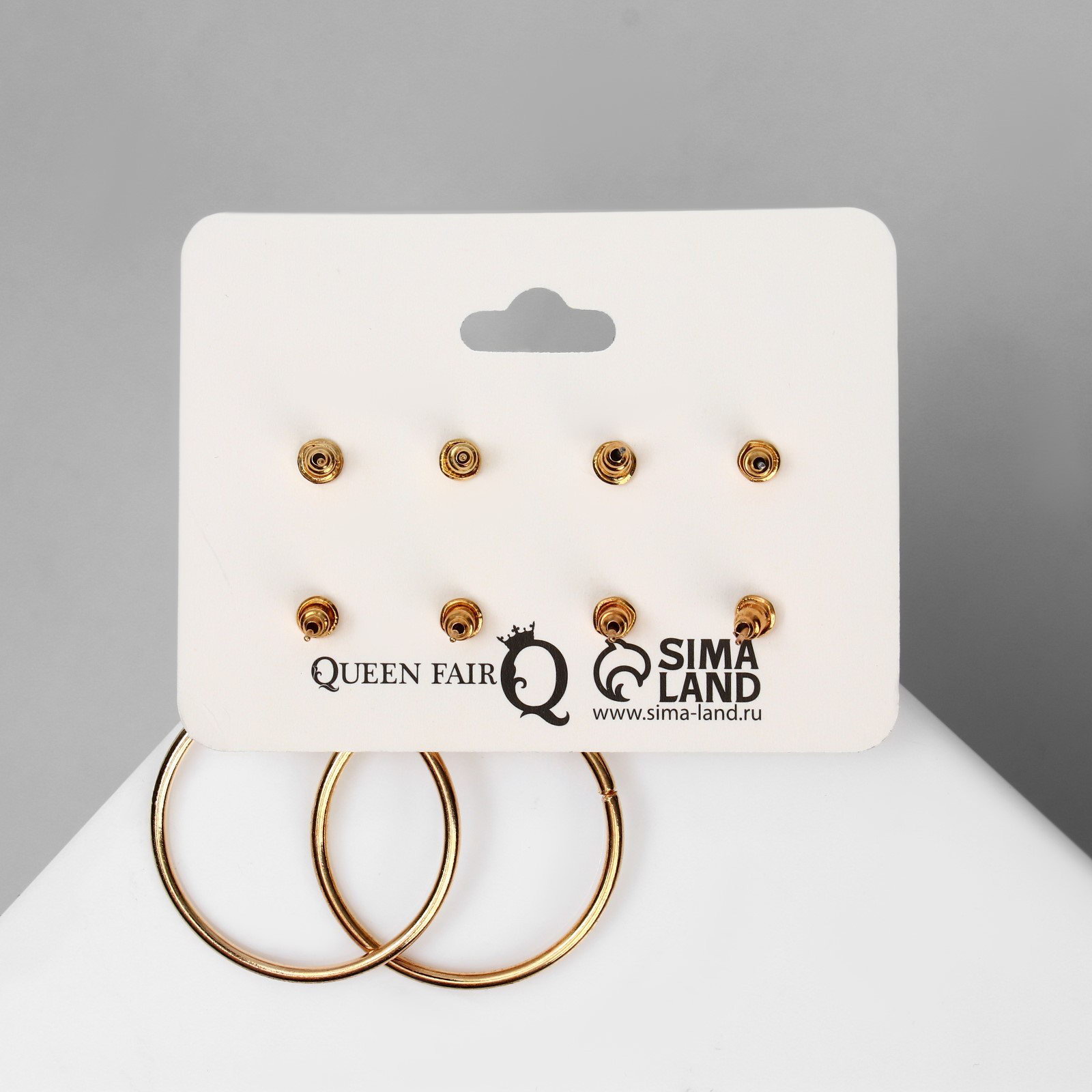 Серьги "Ракушка", набор 4 пары, цвет золото, чёрный, 1.5x3.3x1 см., QF, Китай