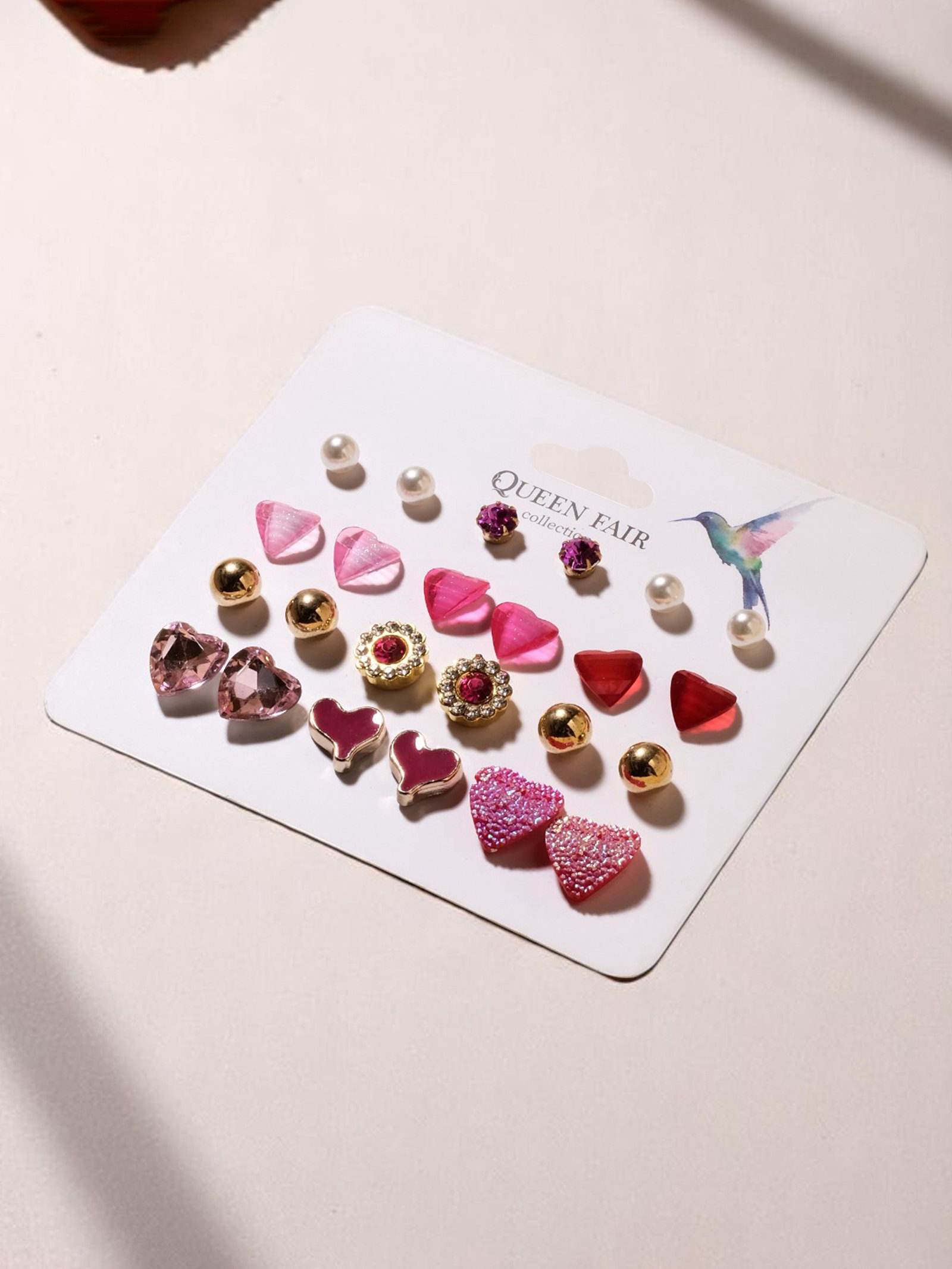 Серьги пусеты 12 пар "Сердечки" свидание, миксы, 1.5x1.5x0.5 см., QF, Китай