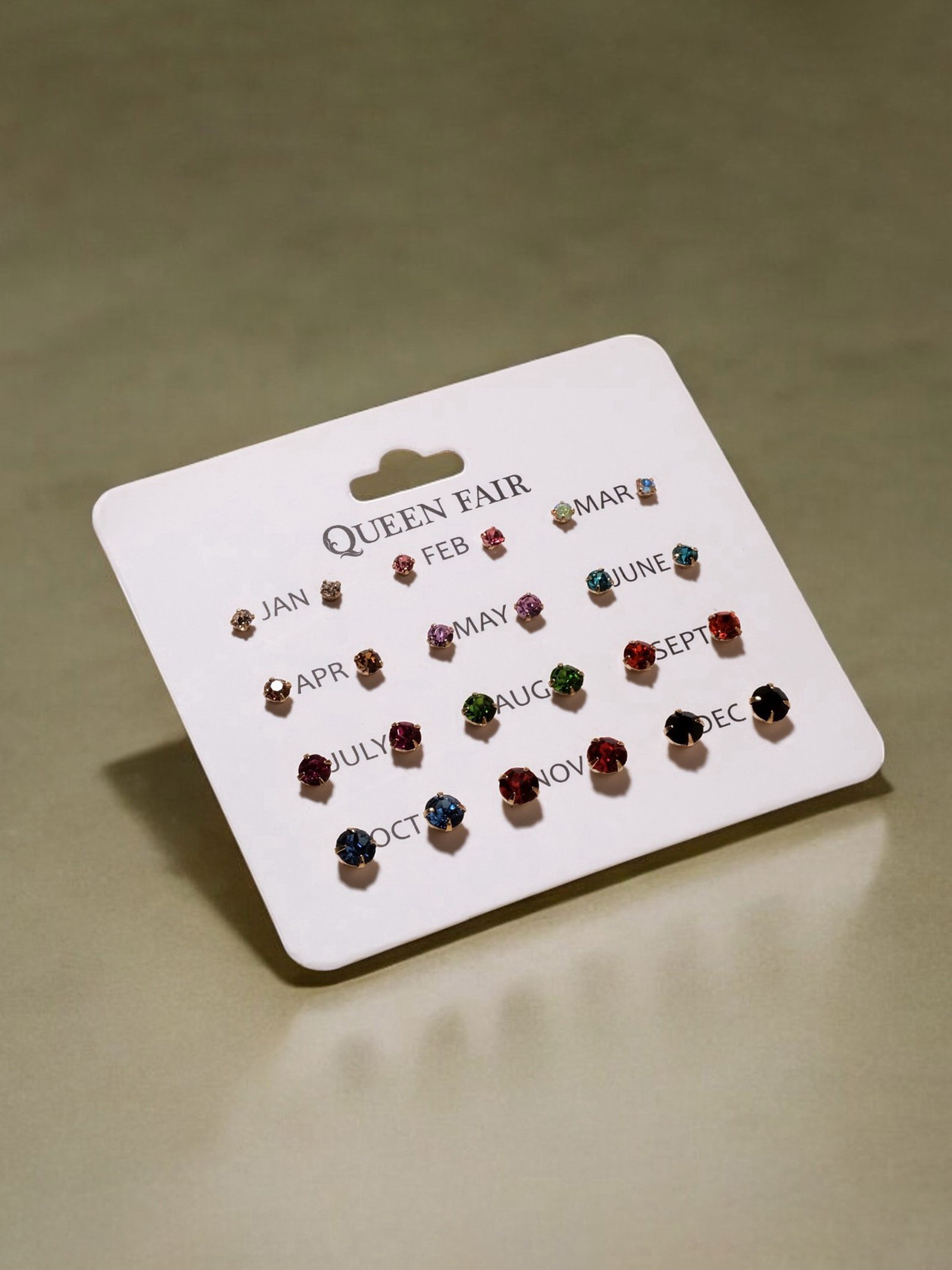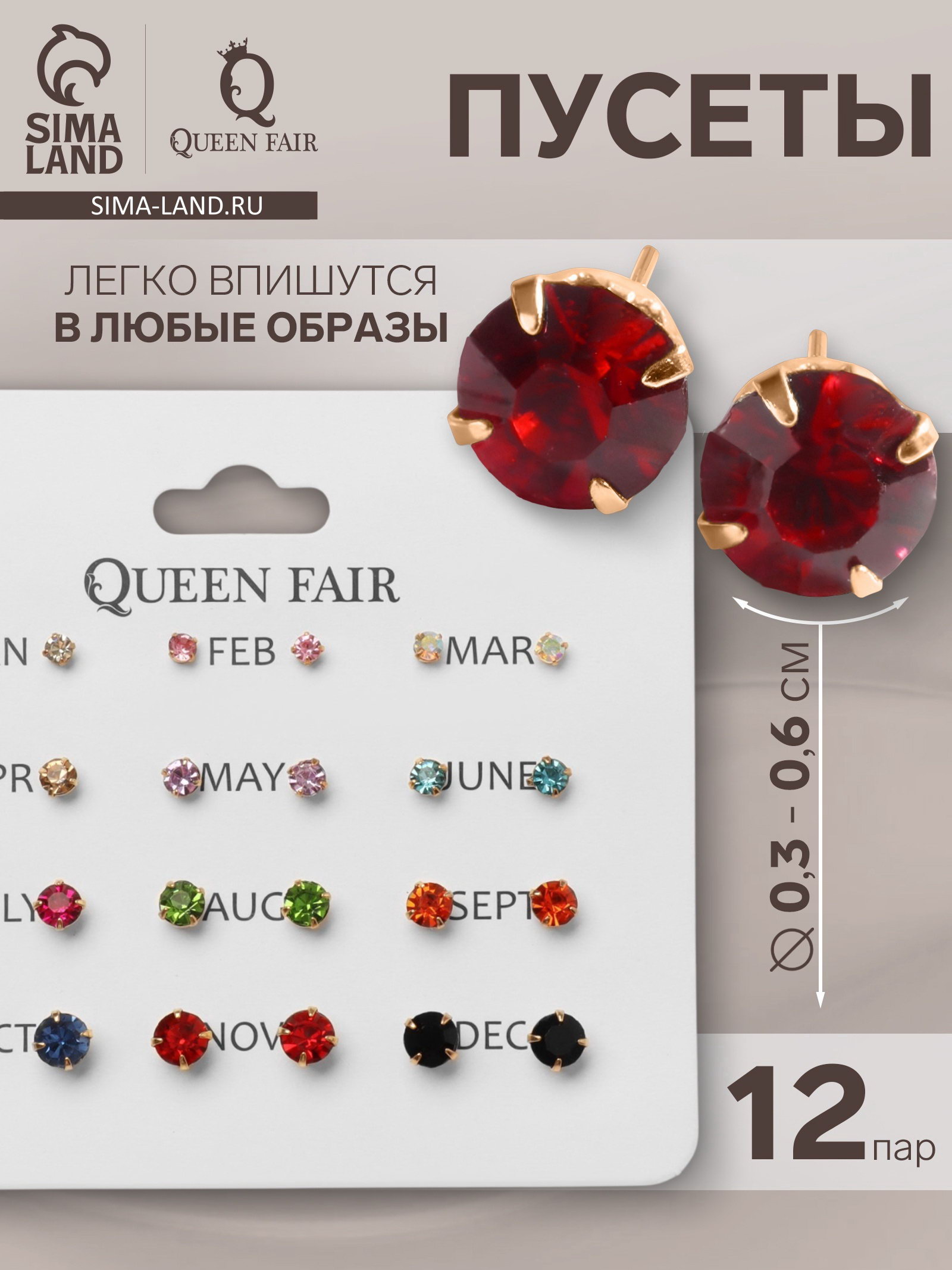 Серьги пусеты 12 пар "Фантазия", маленькие d=3-6 мм, цветные в золоте, 0.4x0.5x0.3 см., QF, Китай