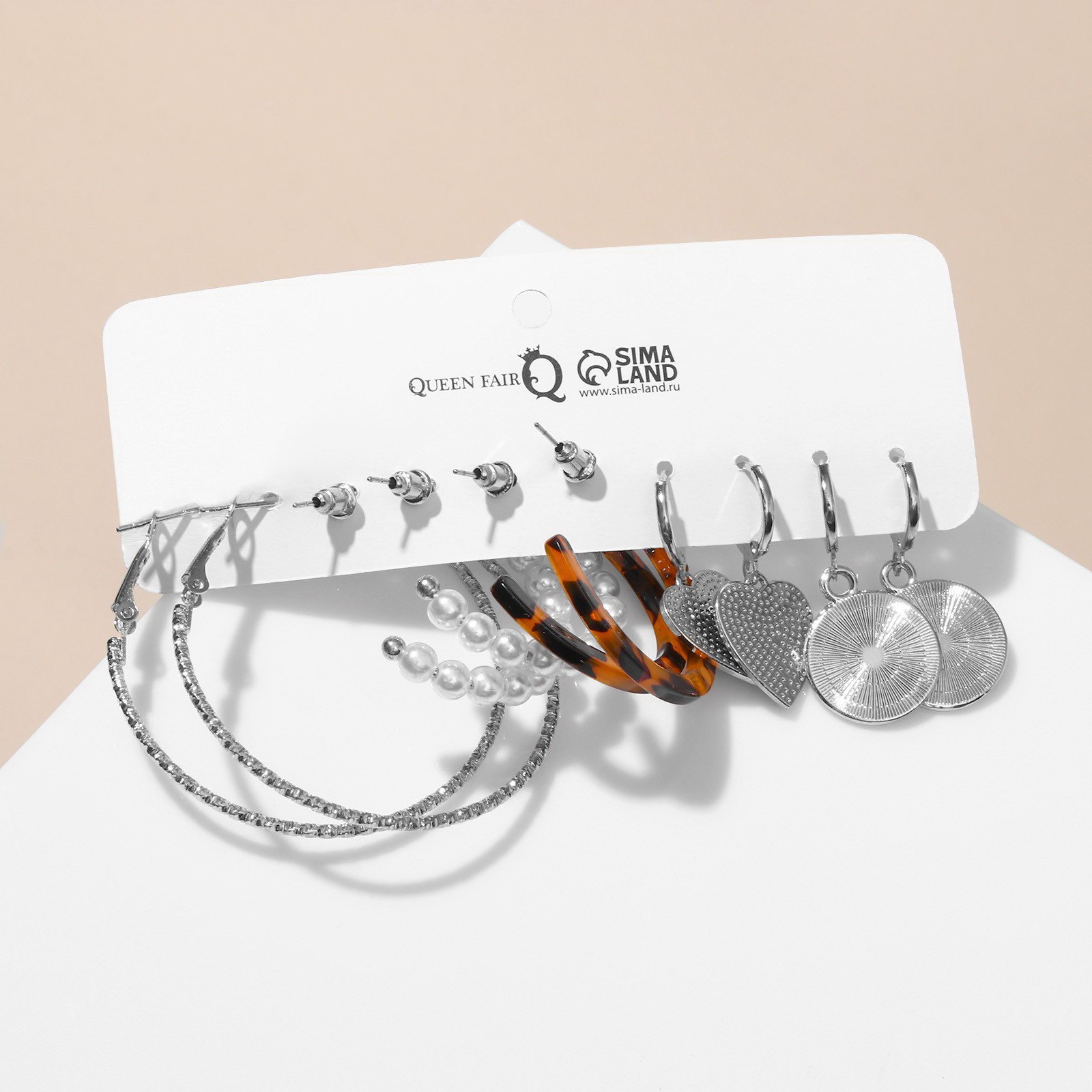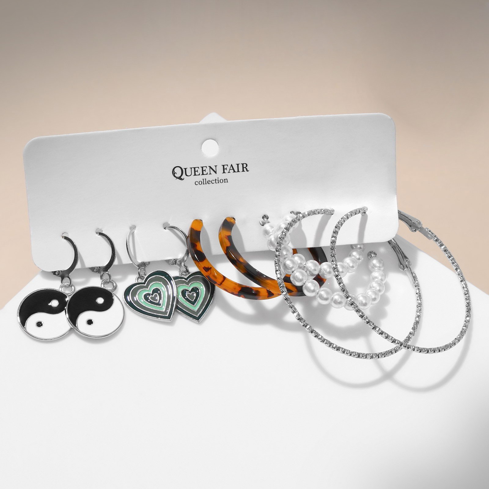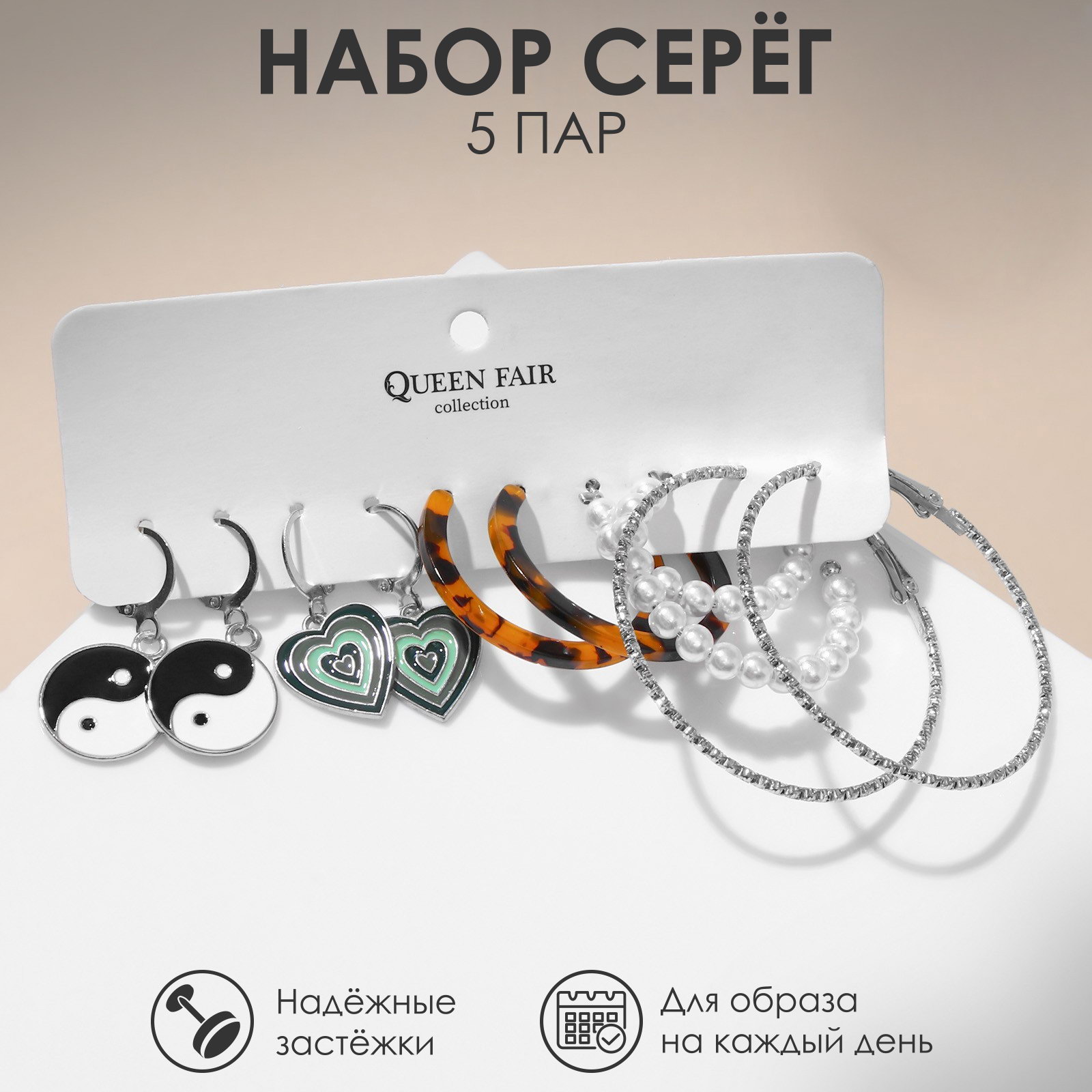 Серьги набор 5 пар "Леди" инь-ян, цветные в серебре, 5x5x1 см., Queen fair, Китай