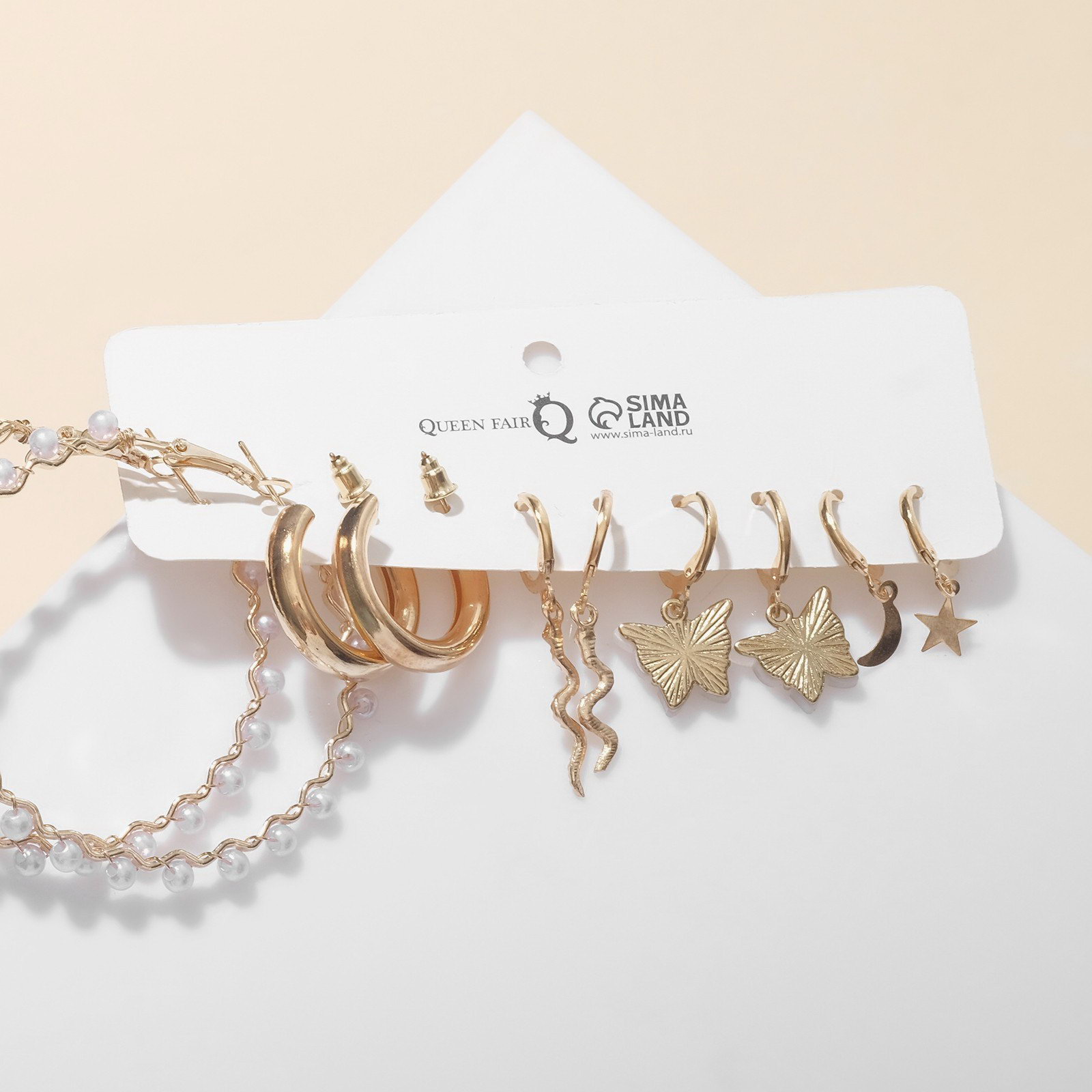 Серьги "Леди весна", набор 5 пар, цвет золото, белый, 2x5.5x1 см., QF, Китай