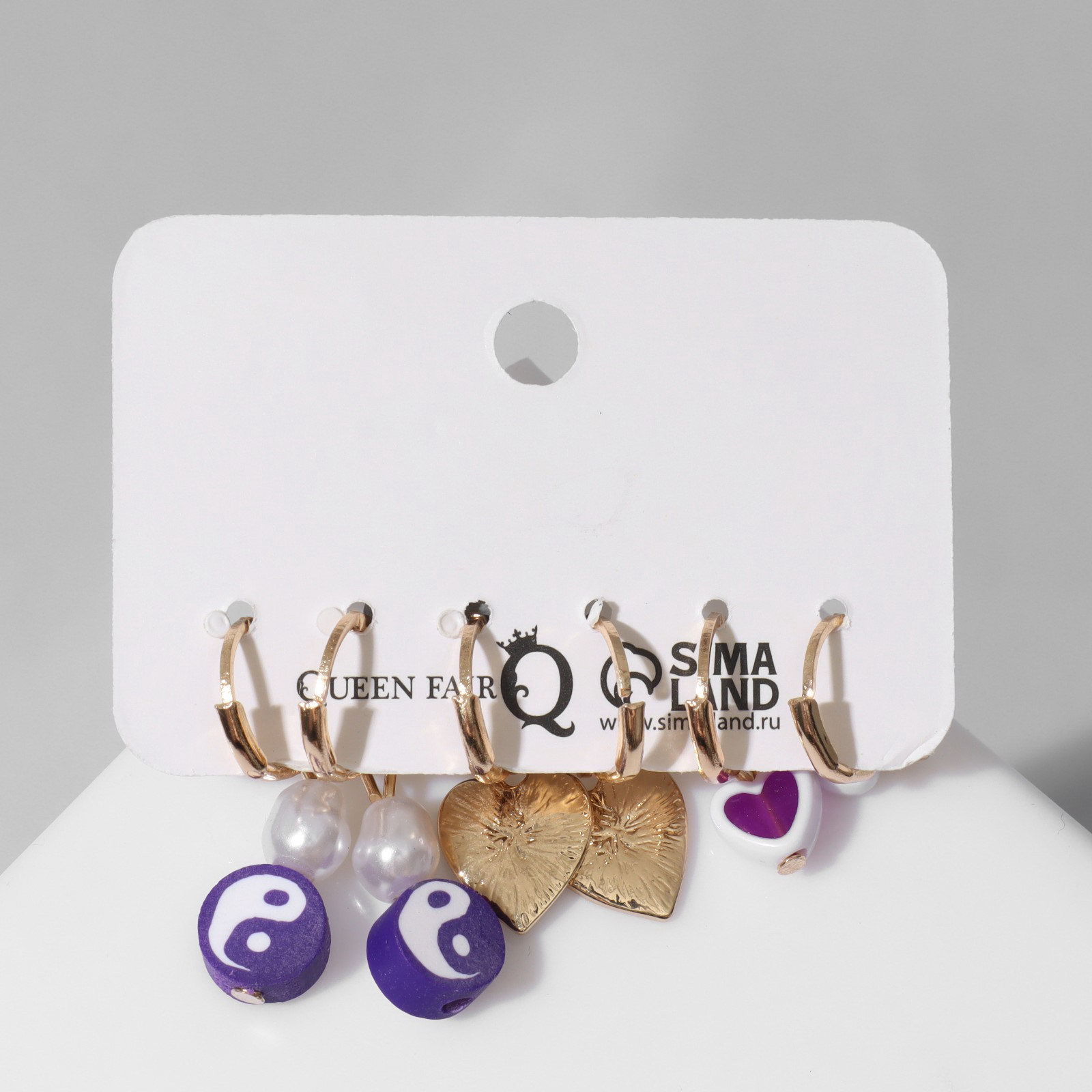 Серьги "Инь ян", набор 3 пары, фиолетовые, золото, 1x3.5x1.1 см., QF, Китай