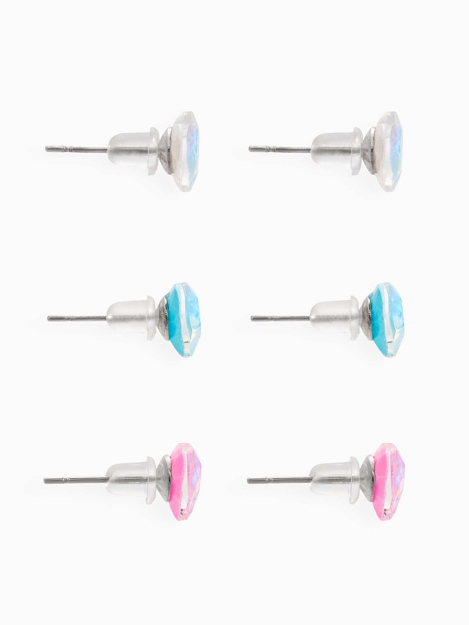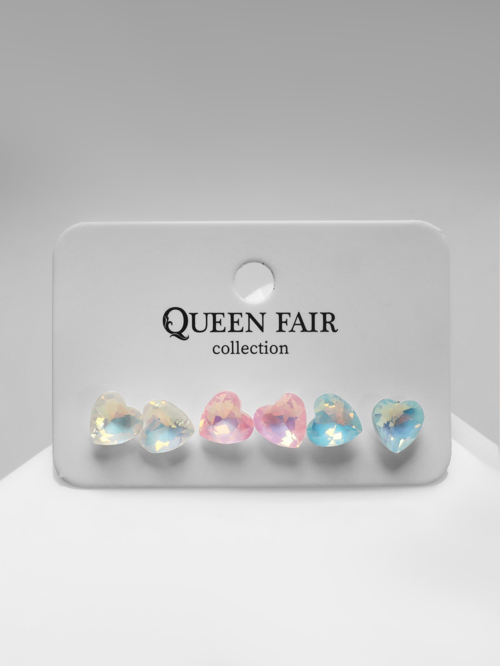 Серьги пусеты "Летние истории", 3 пары, сердца, цветные, 0.5x0.5x0.3 см., QF, Китай