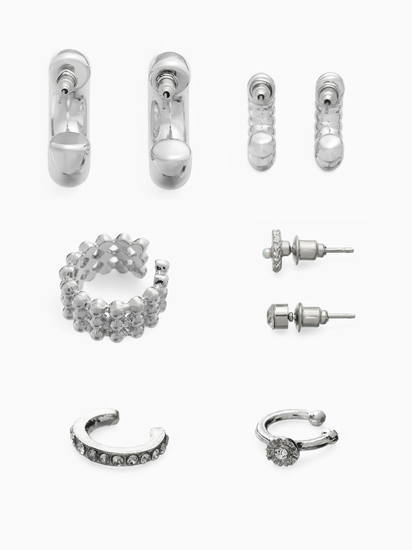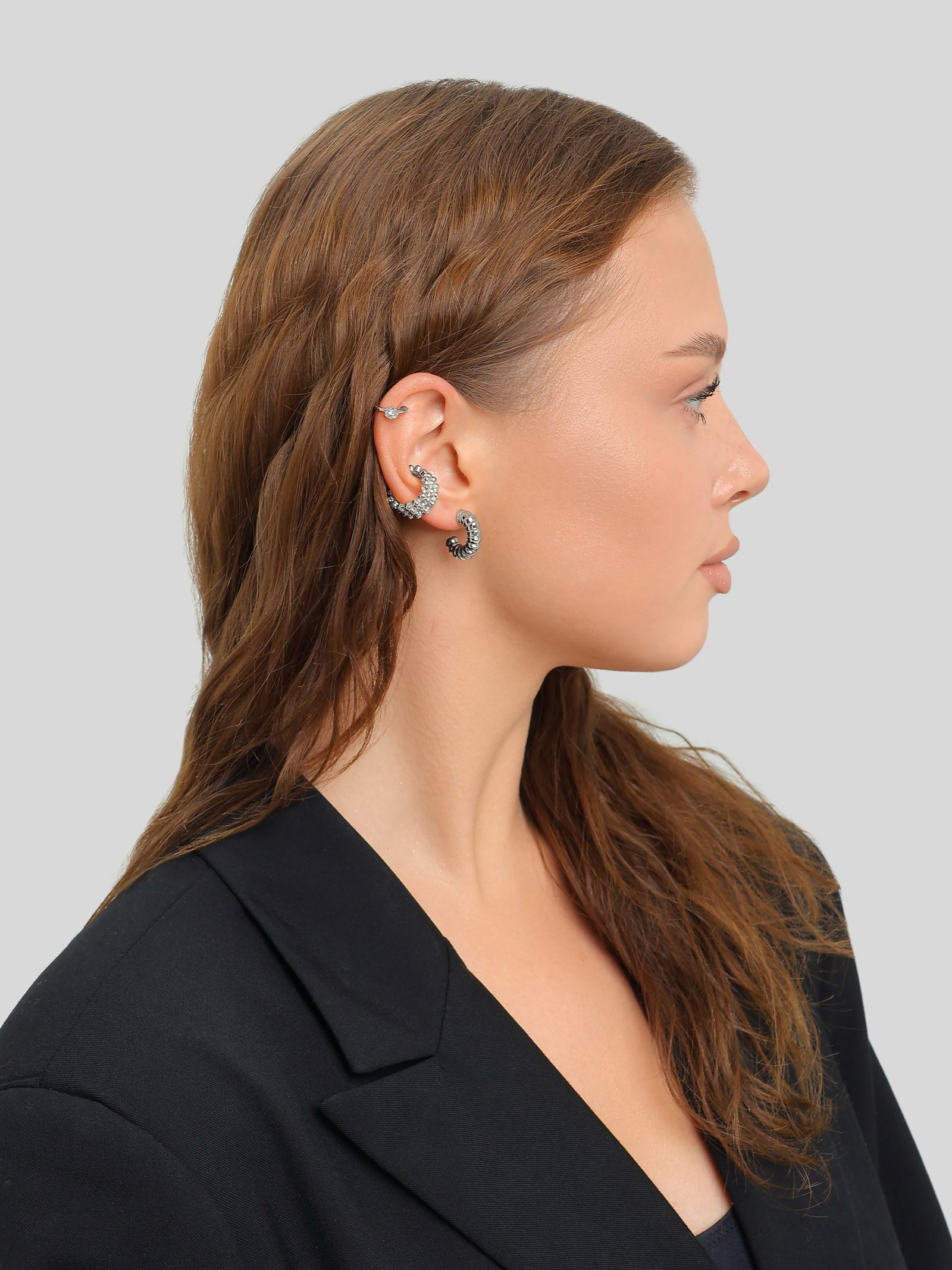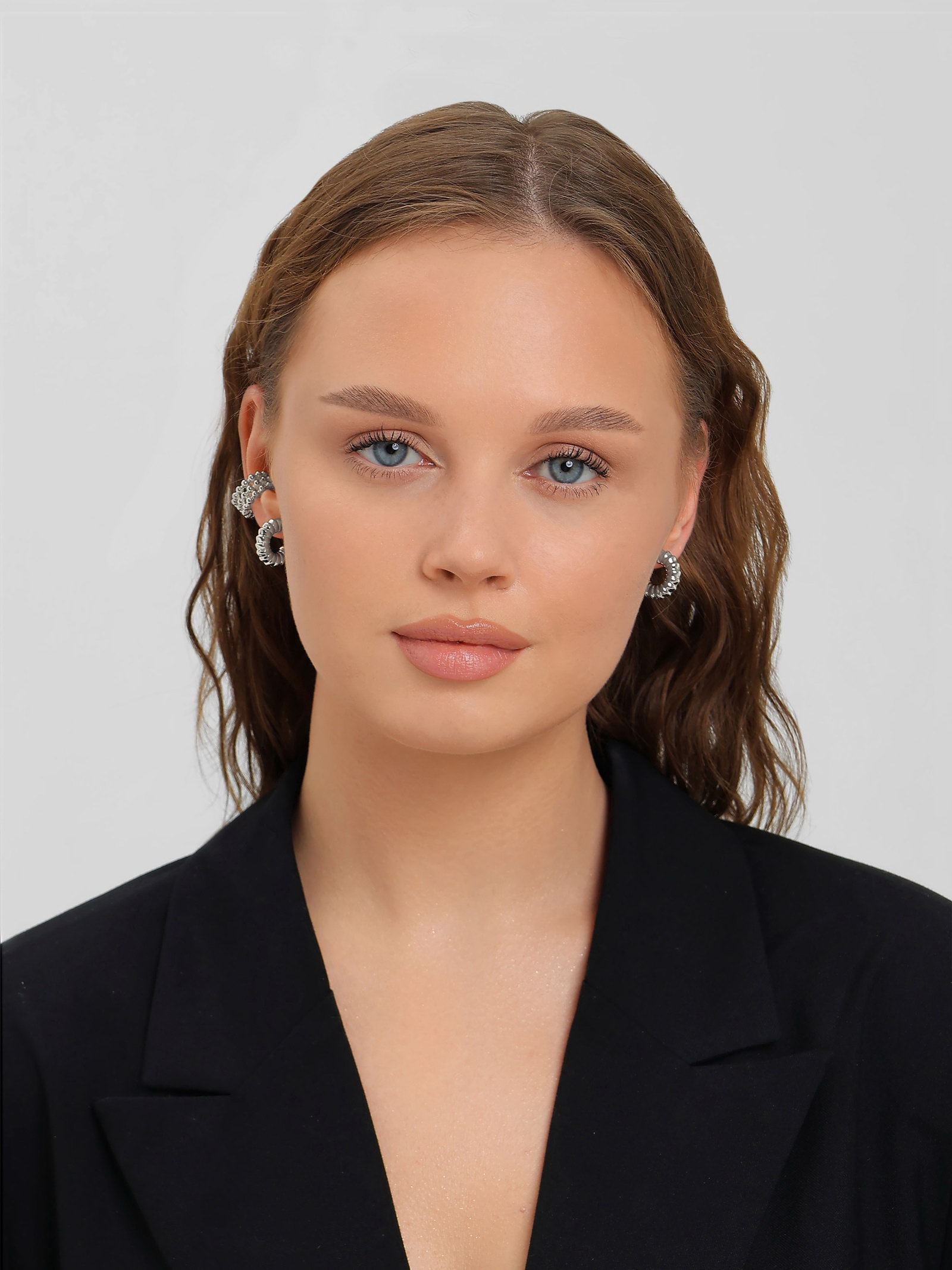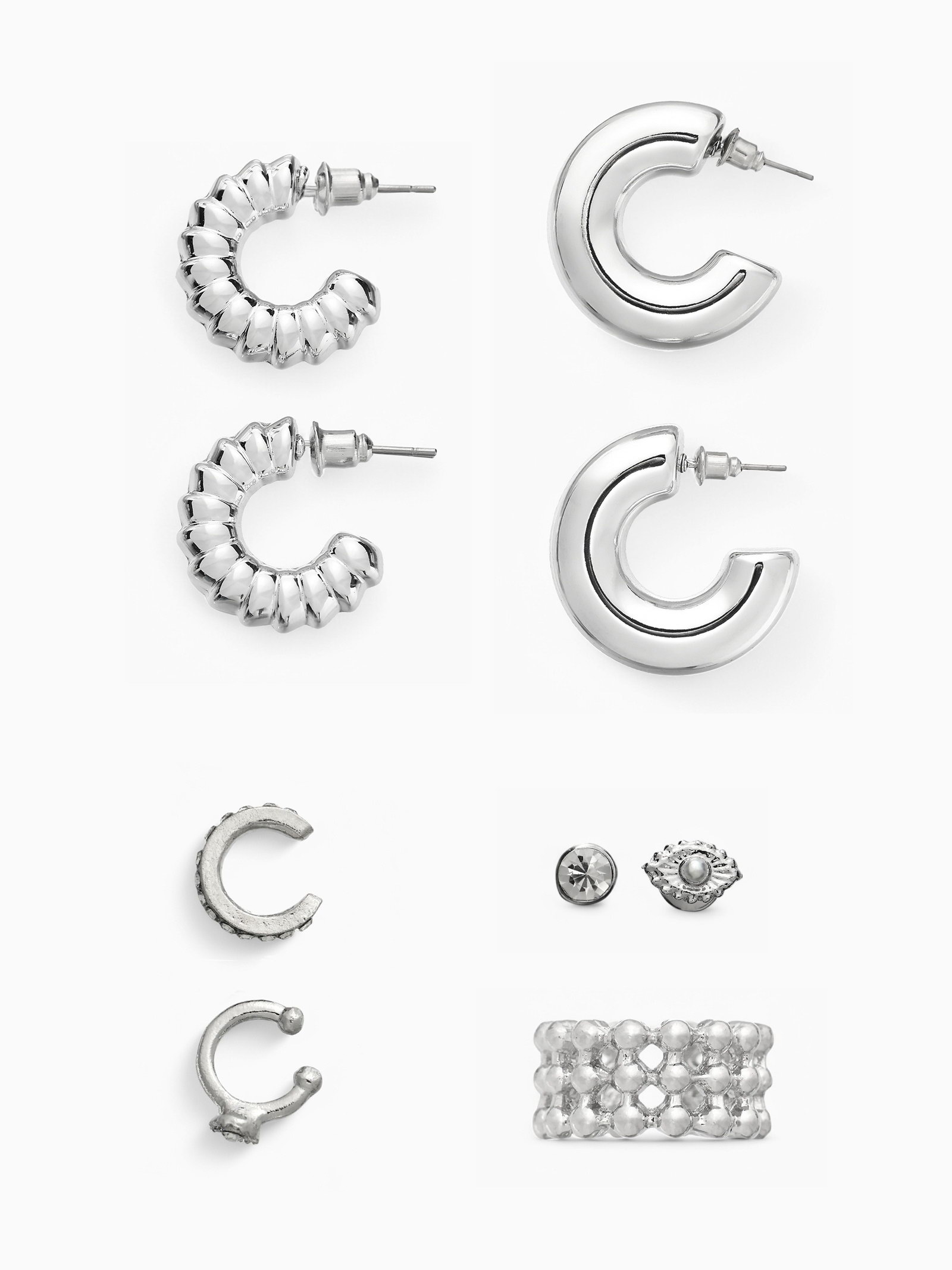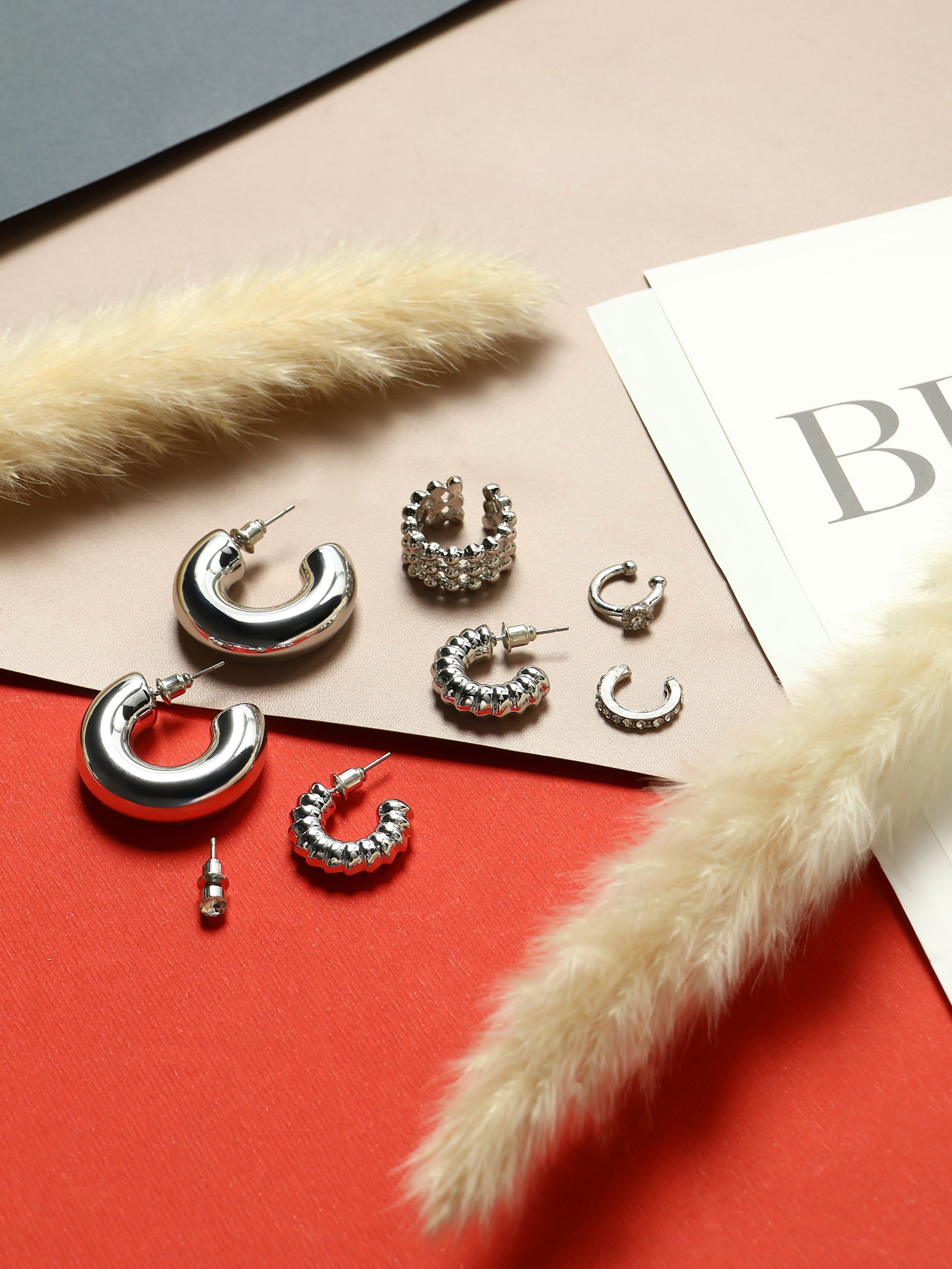 Серьги и кафф "Бублик", набор 9 шт. цвет серебро, 5.5x8.5x1 см., QF, Китай