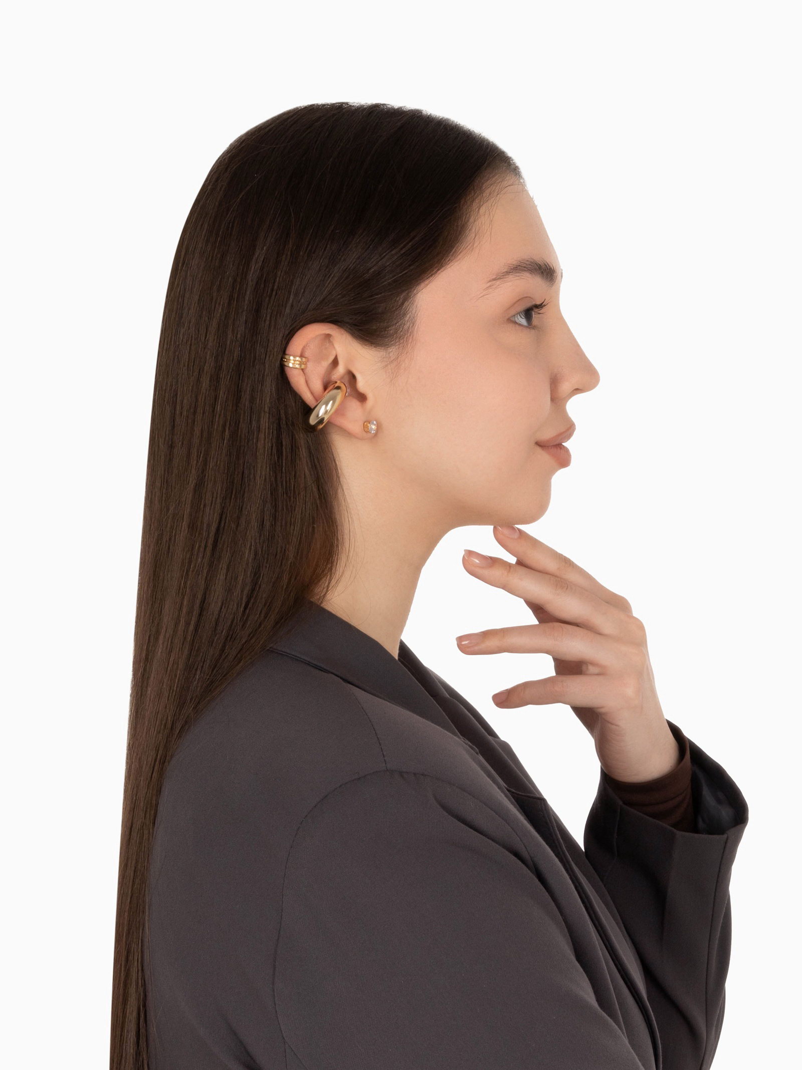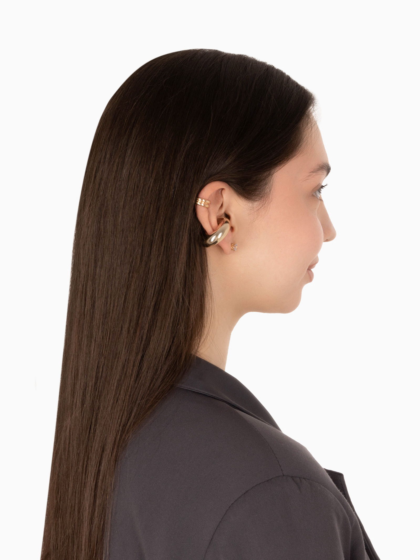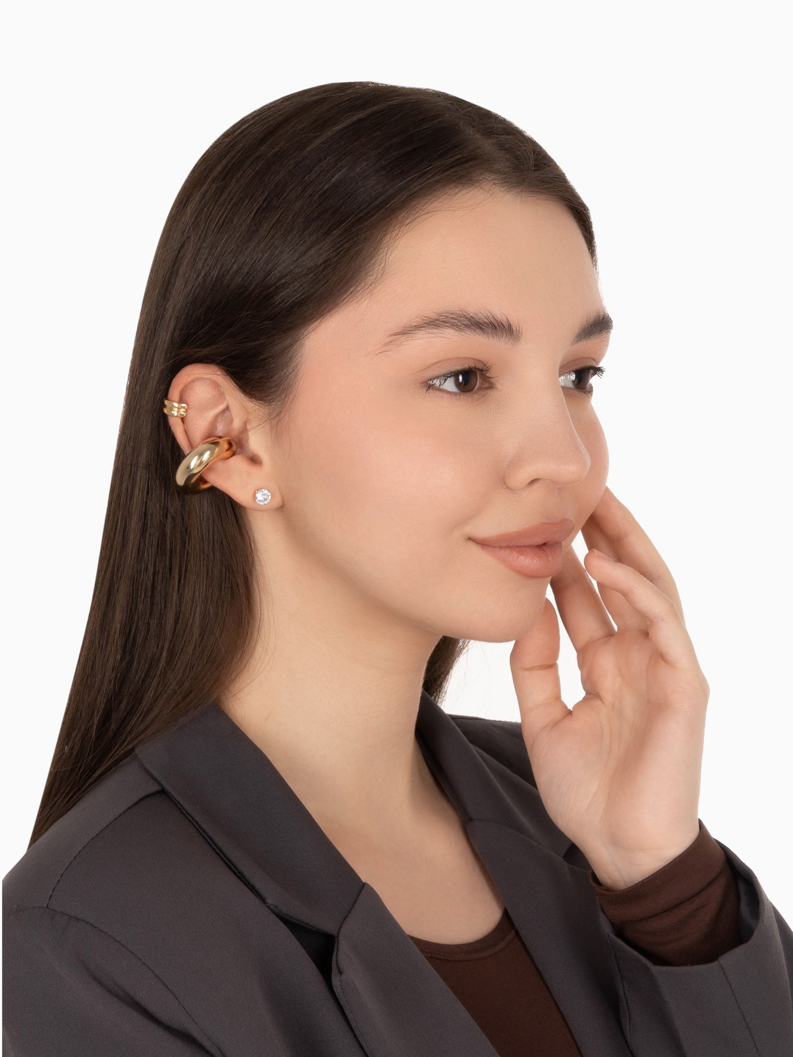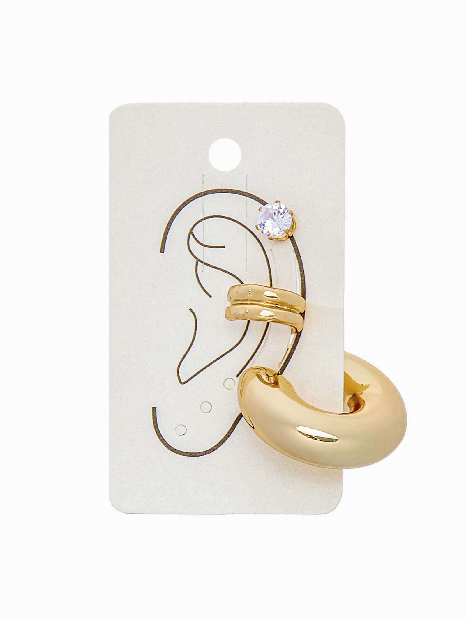 Серьга и кафф "Бублик", набор 3 шт. стразы, цвет золото, 5.5x8.5x1 см., QF, Китай