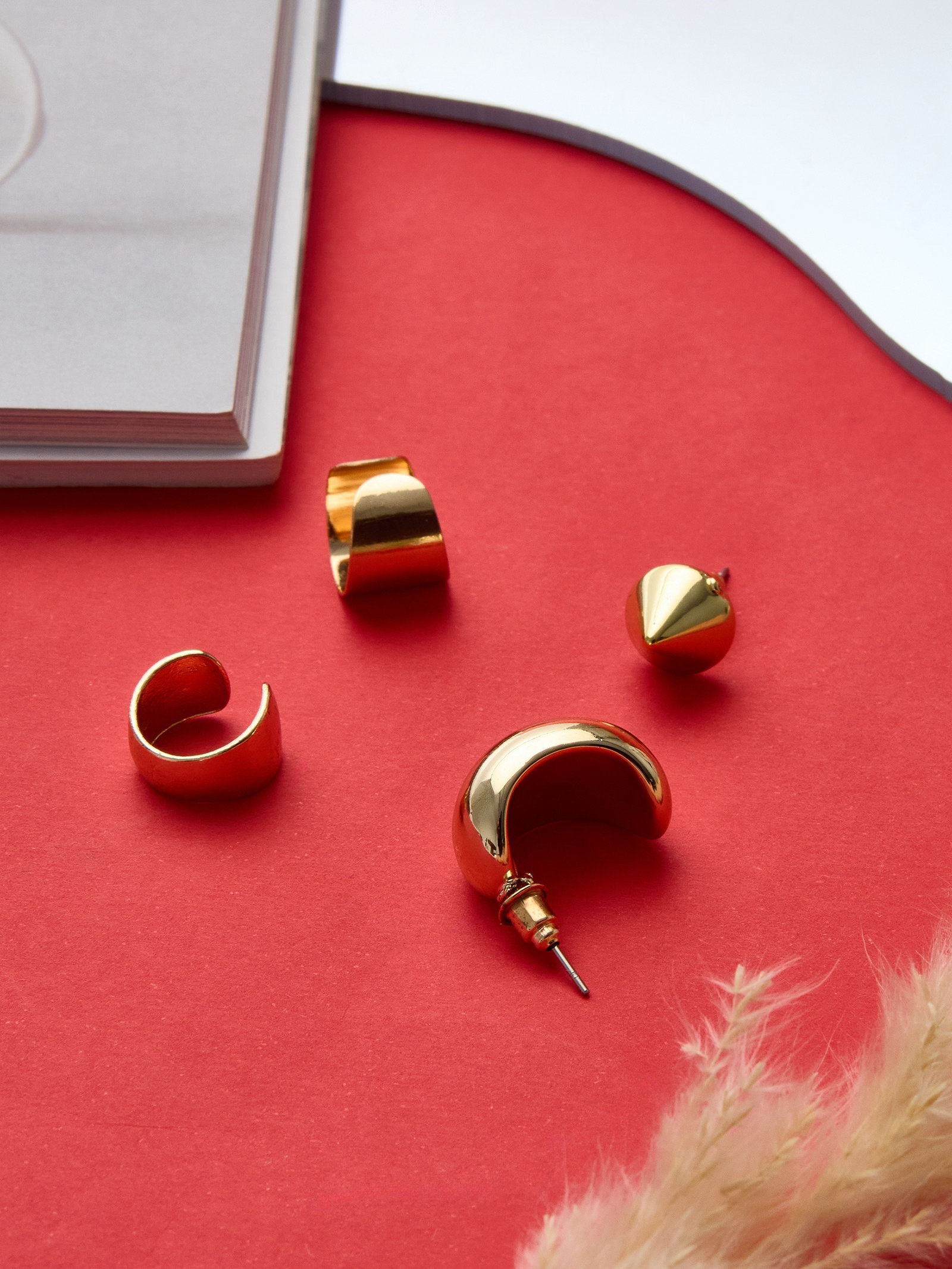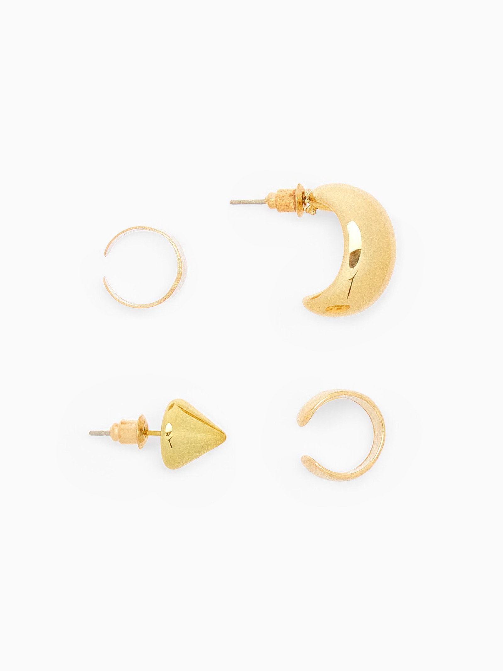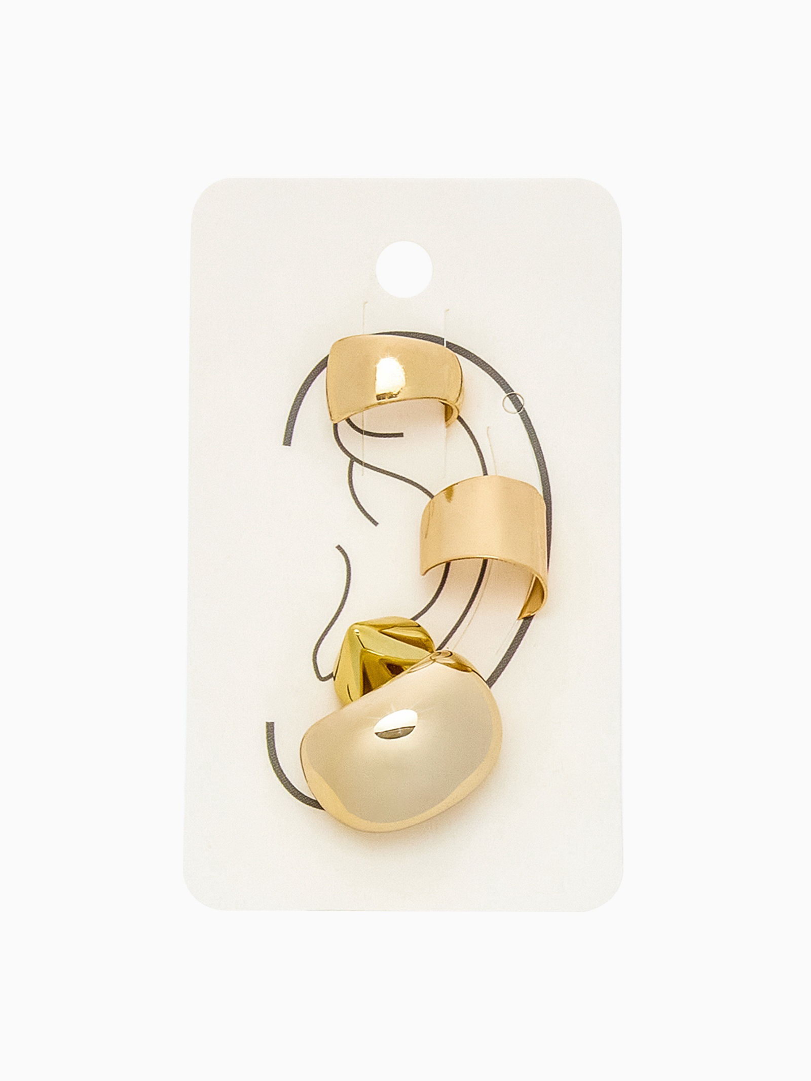 Серьги и кафф "Объёмные фигуры", набор 4 шт. цвет золото, 5.5x8.5x1 см., QF, Китай
