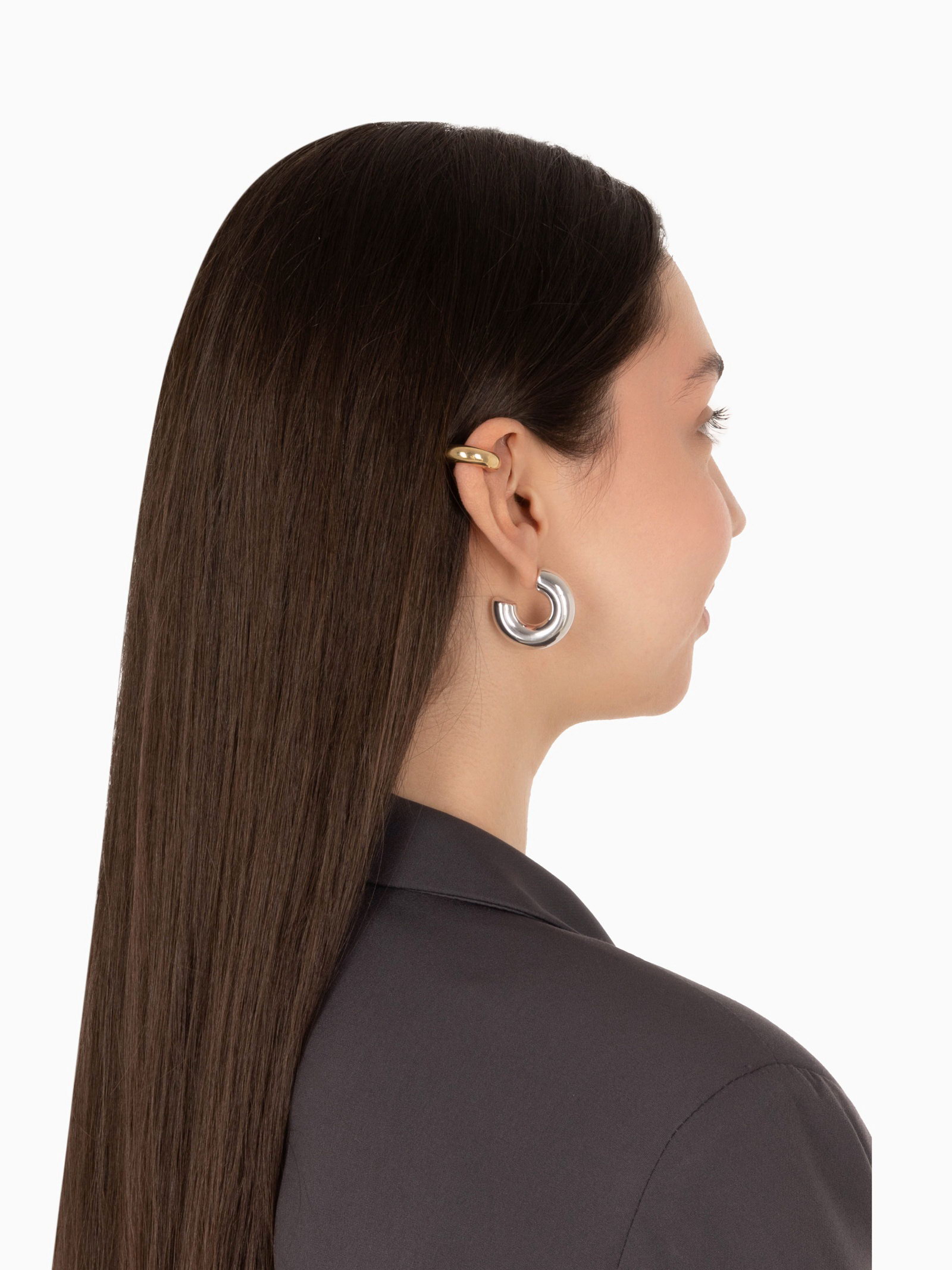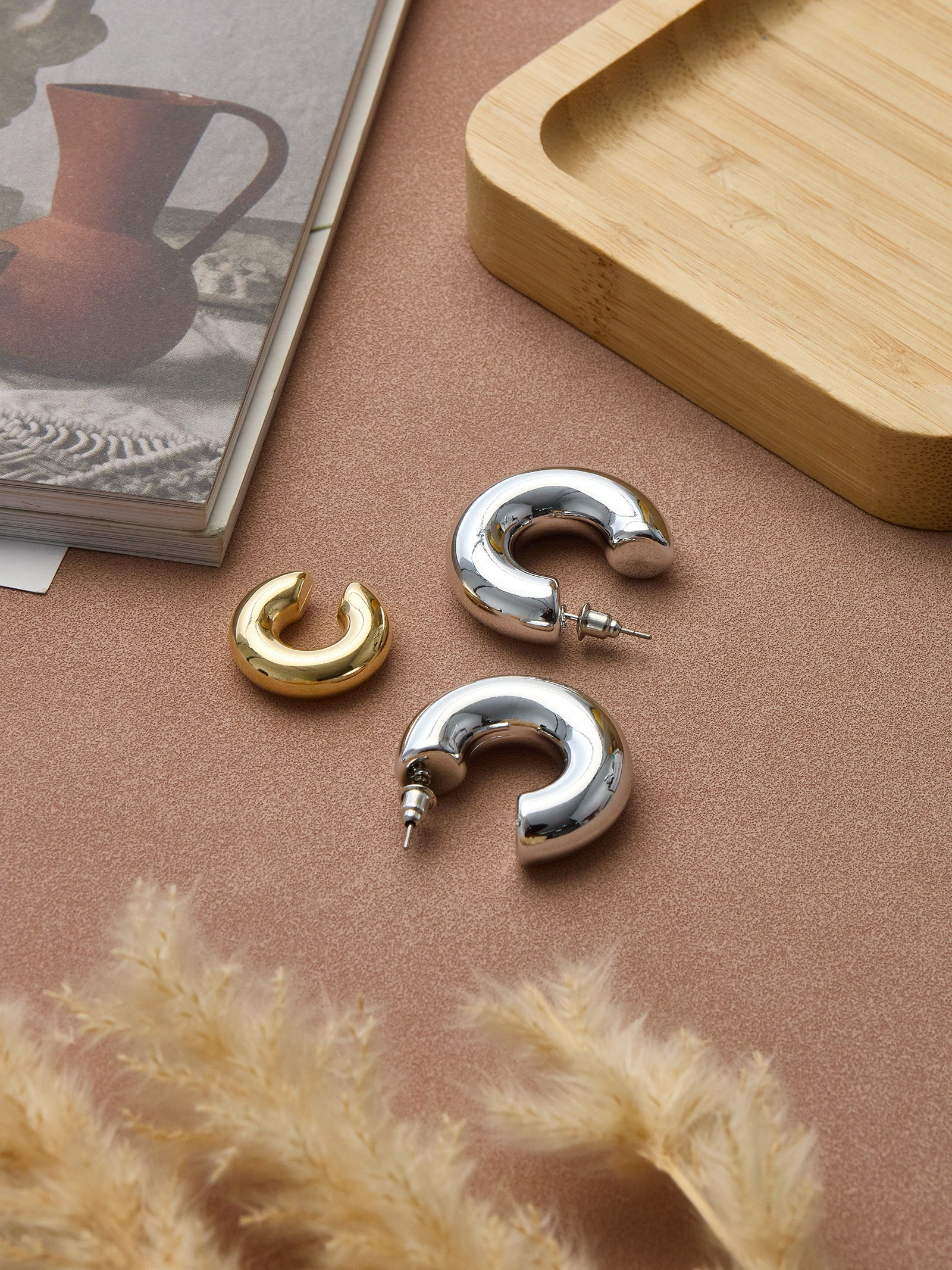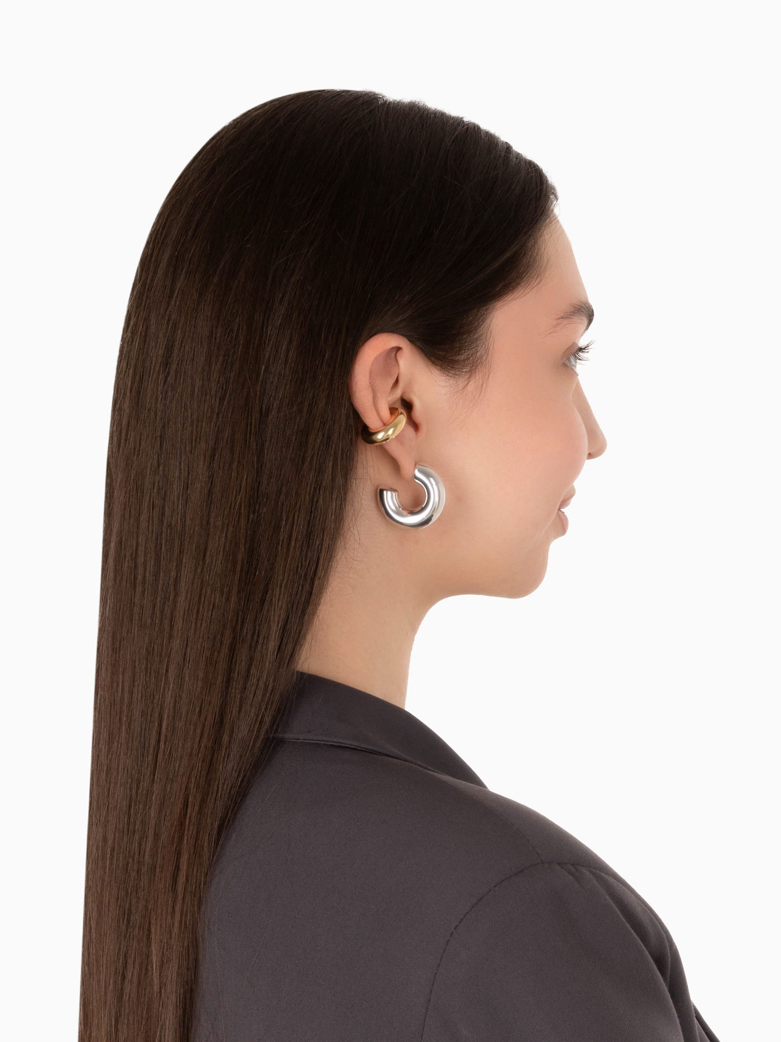 Серьги кольца и каффы "Бублик", набор, цвет золото, серебро, 5.5x8.5x1 см., QF, Китай
