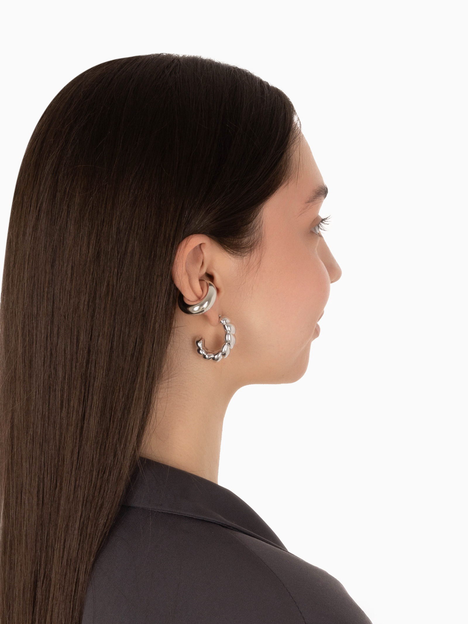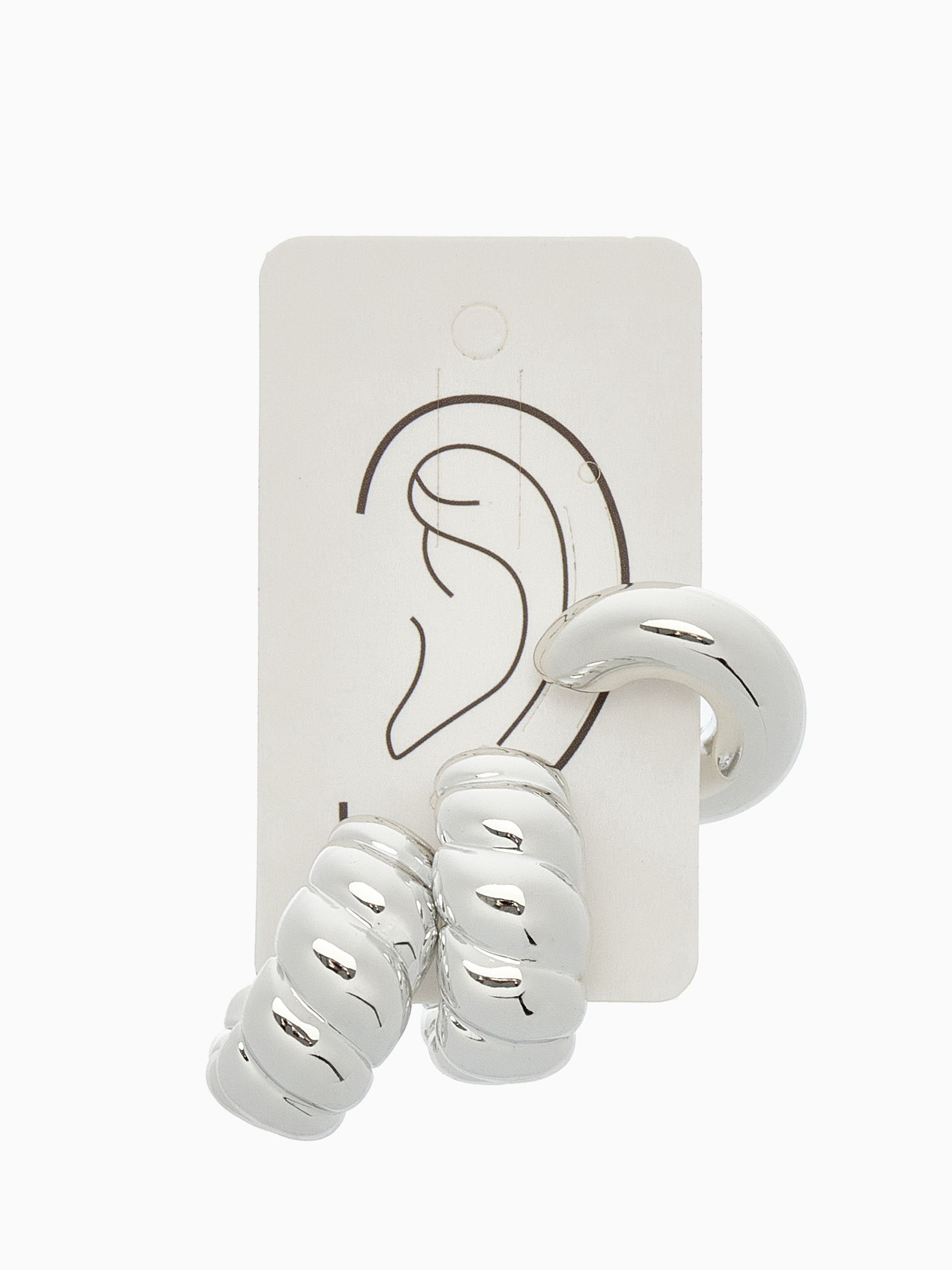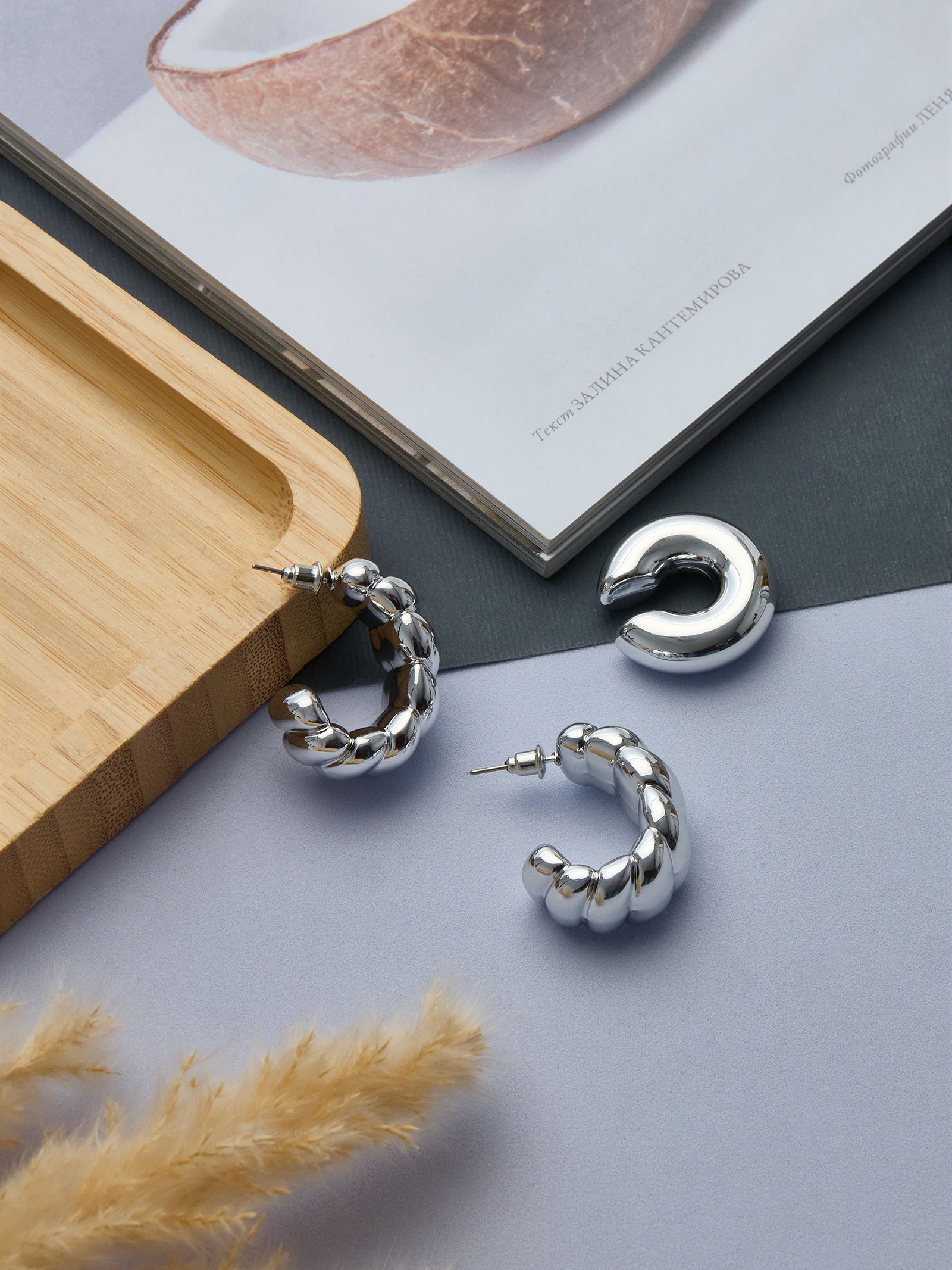 Серьги и каффы "Плетённый бублик", набор, цвет серебро, 5.5x8.5x1 см., QF, Китай