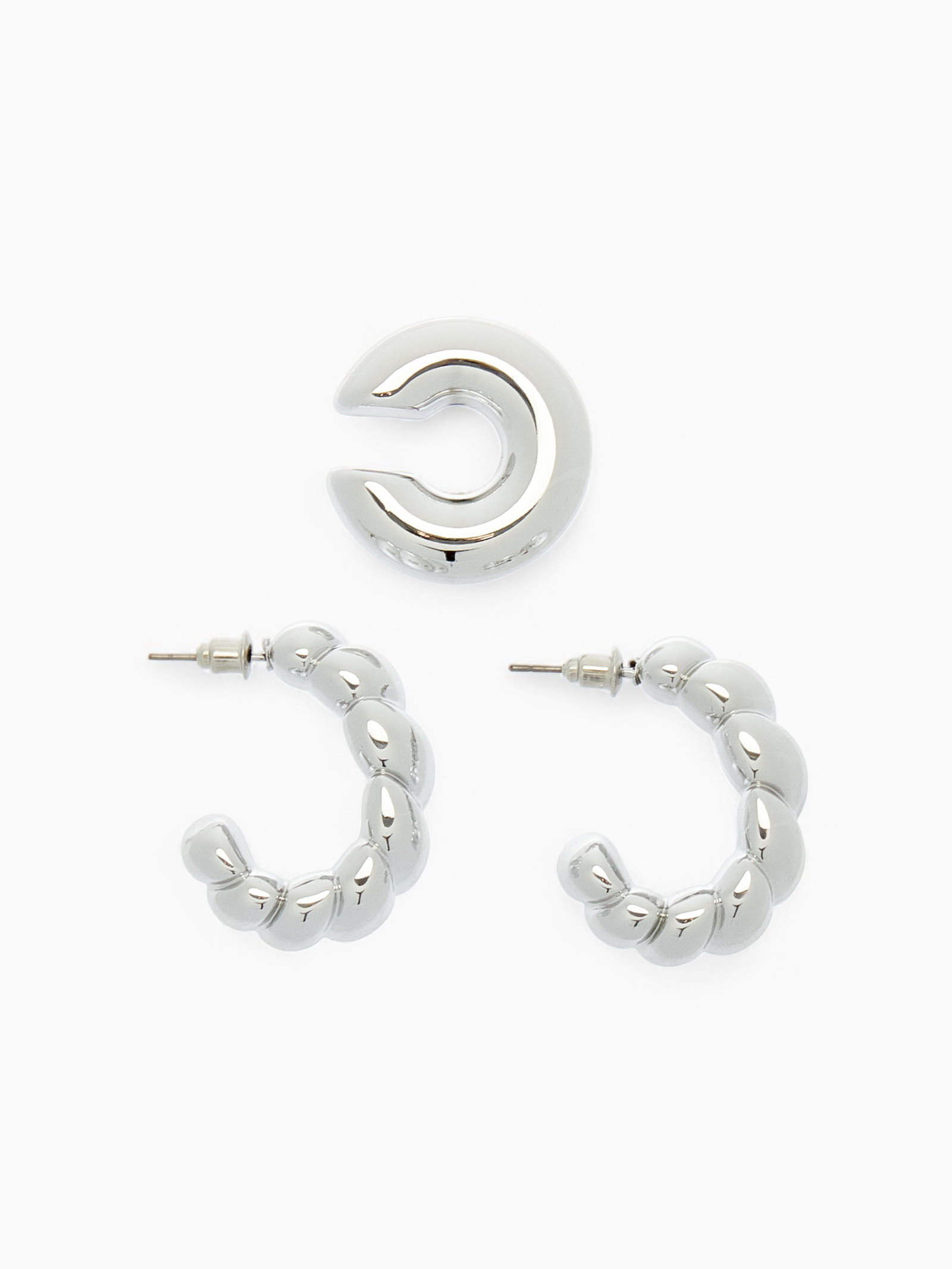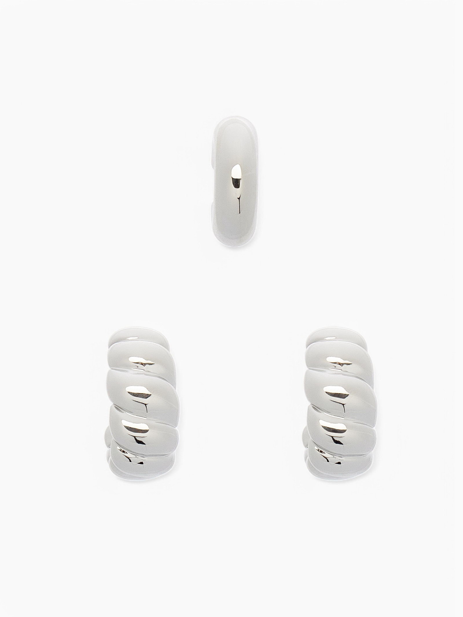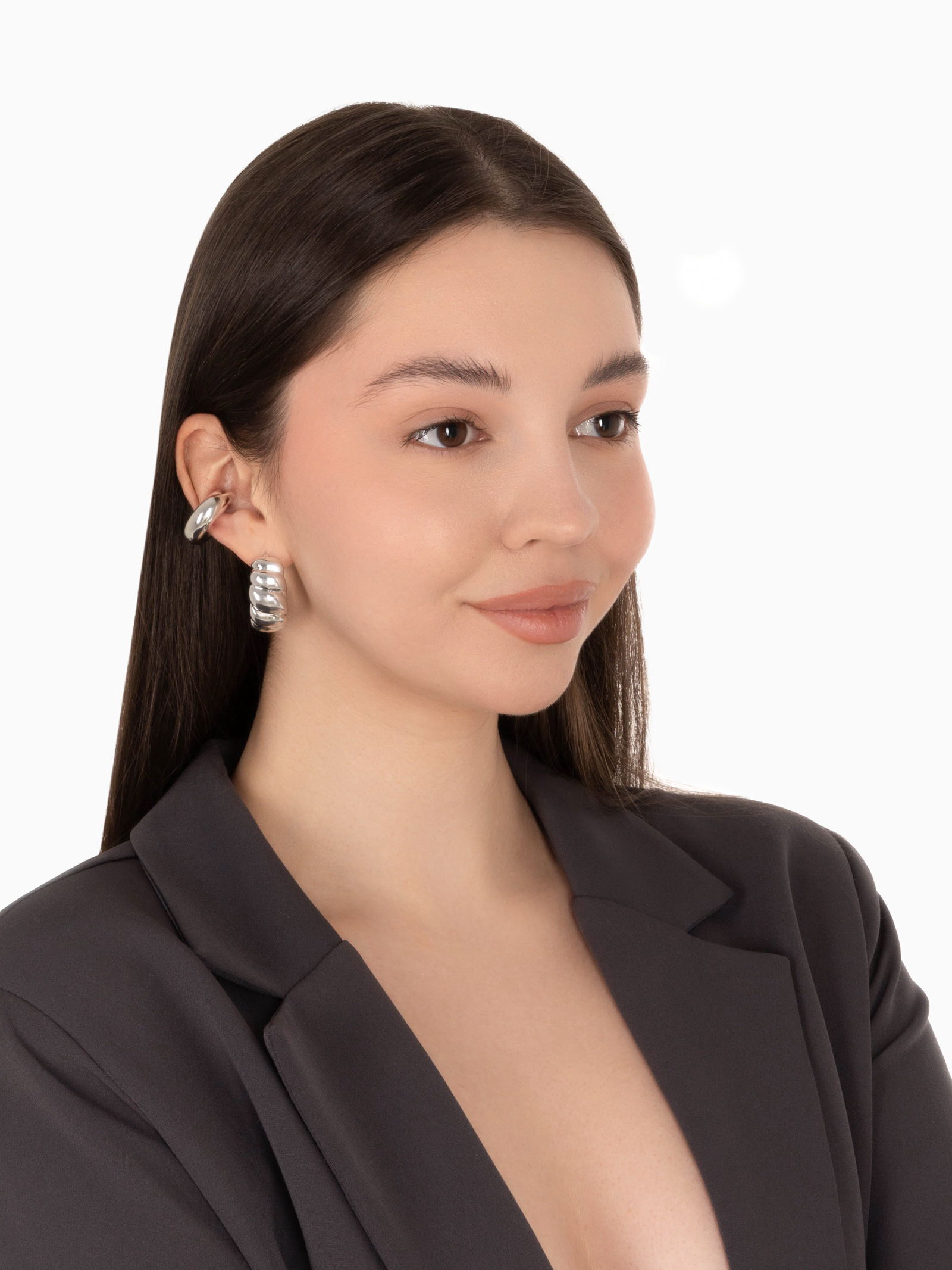 Серьги и каффы "Плетённый бублик", набор, цвет серебро, 5.5x8.5x1 см., QF, Китай
