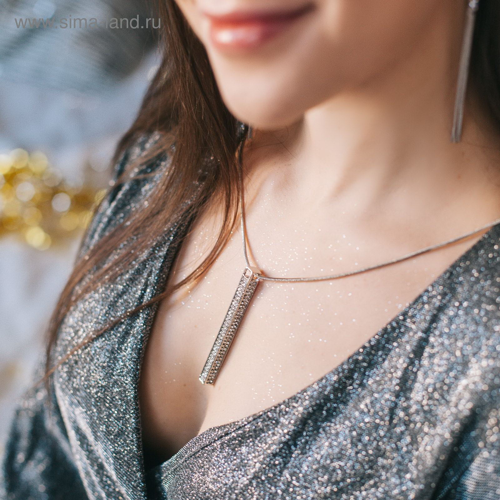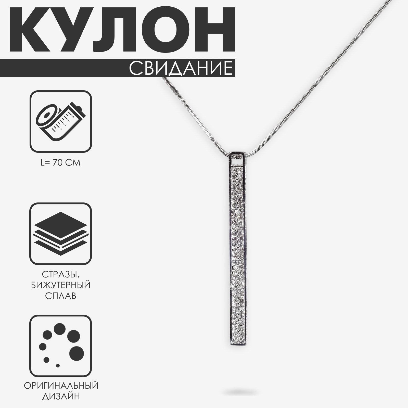 Кулон "Свидание" пластина, цвет белый в серебре, L=70 см, 7.2x70x0.6 см., Queen fair, Китай