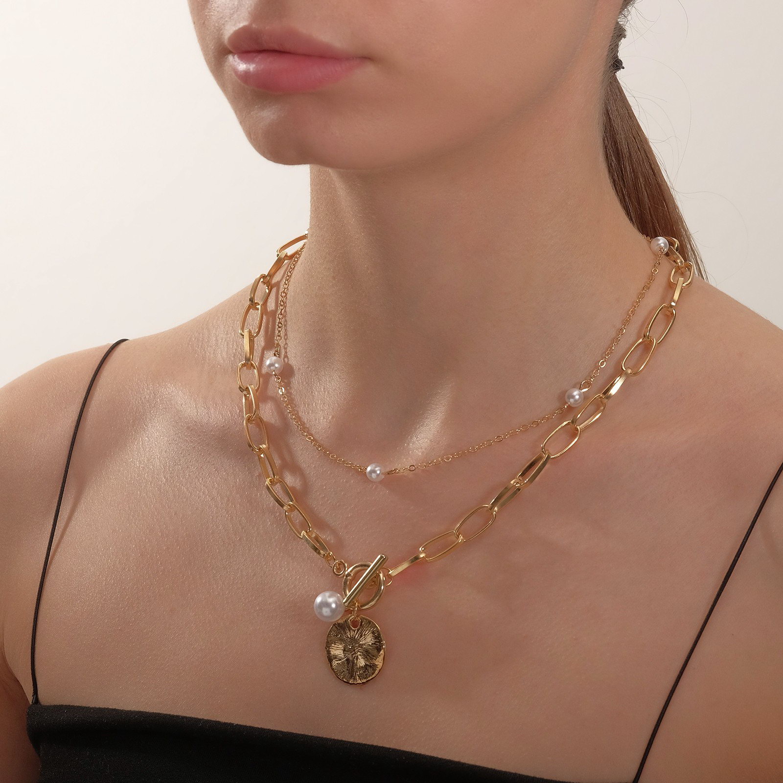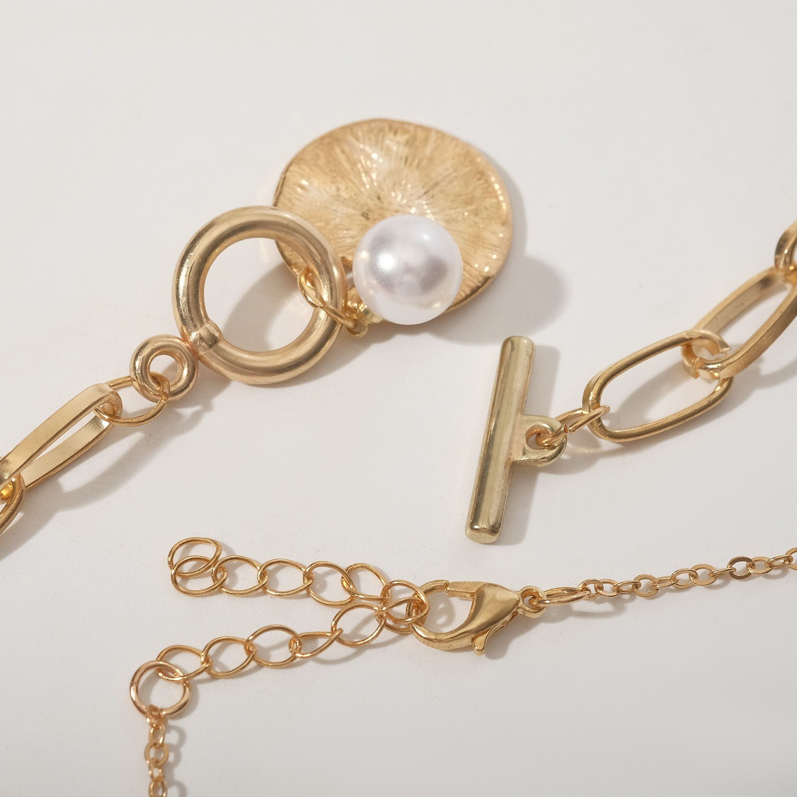 Кулон на декоративной основе "Жемчужина" круг, цвет белый в золоте, L= 45 см, 3.5x45x1 см., Queen fair, Китай