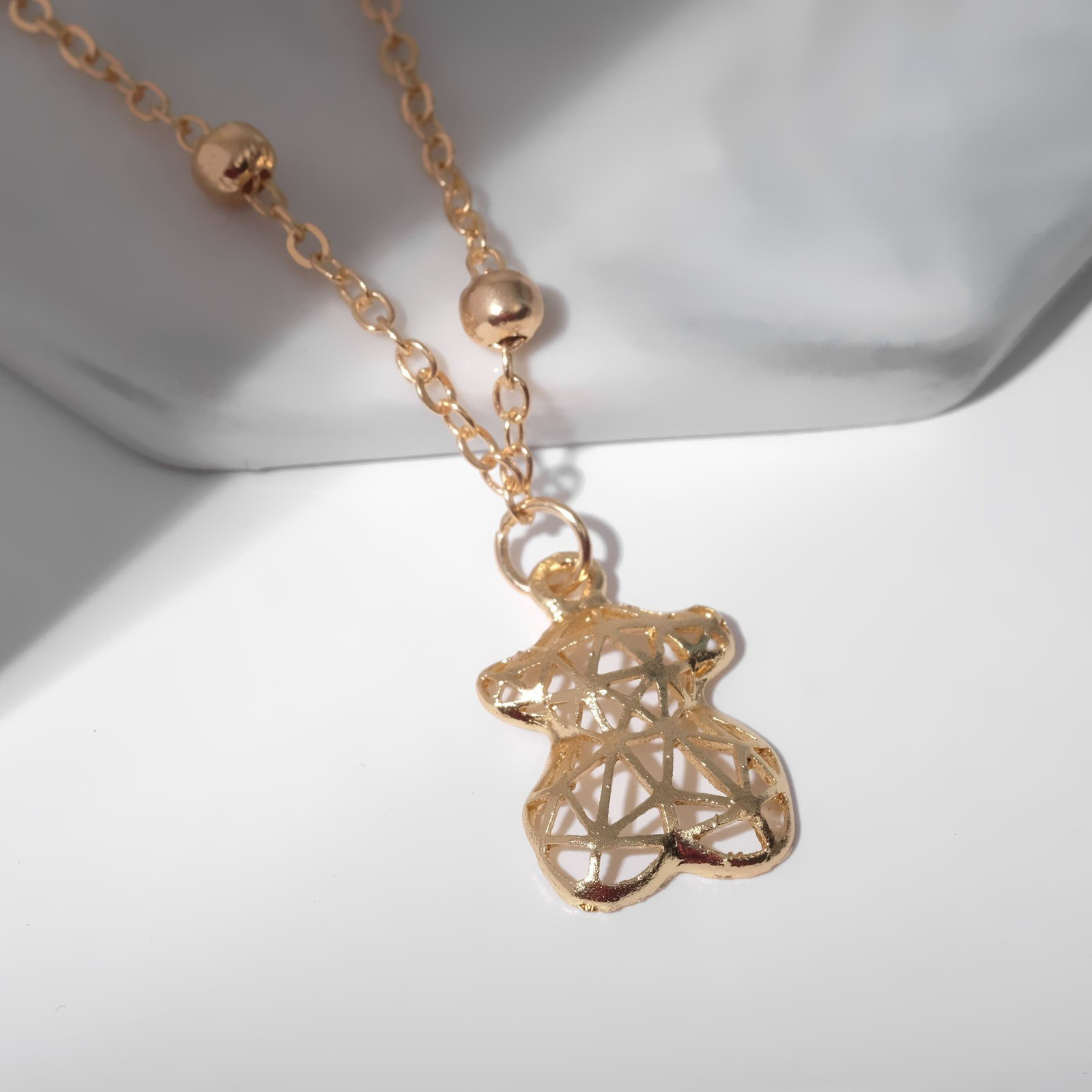 Кулон "Мишка" плетёный, цвет золото, 40 см, 1.3x40x1.6 см., Queen fair, Китай