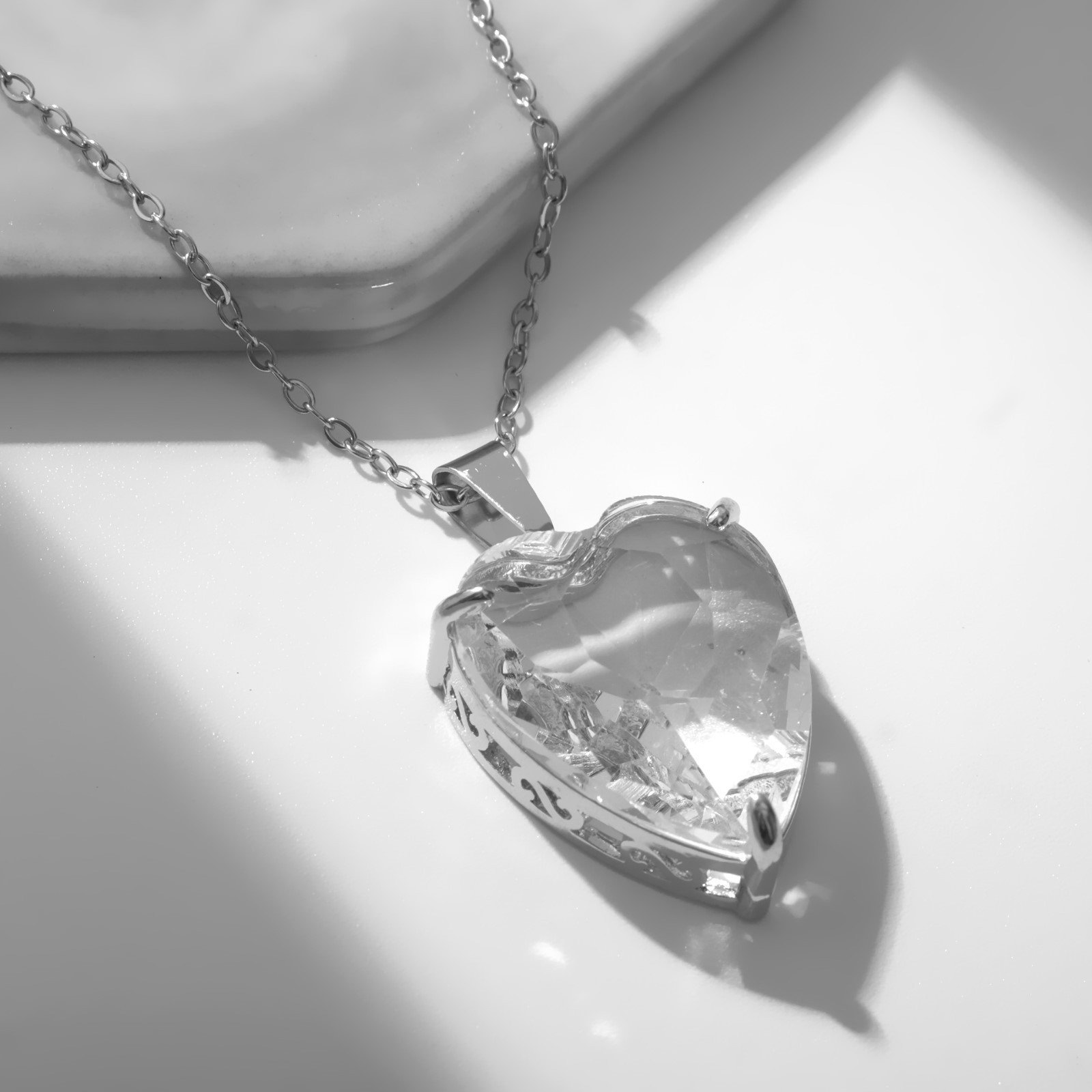Кулон "Сердце", цвет прозрачный в серебре, 48 см, 1.8x48x3 см., Queen fair, Китай