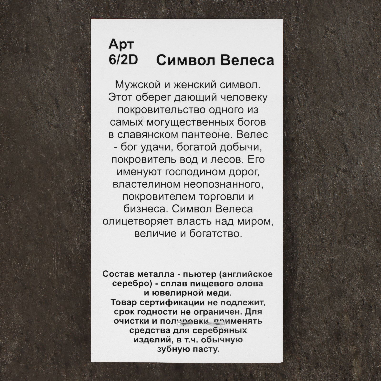 Оберег "Символ Велеса", металл пьютер, художественное литье, Россия