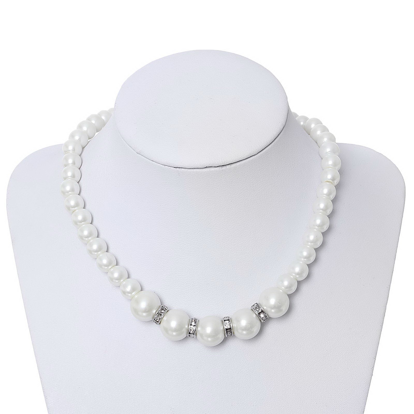 Бусы "Классик" с разделителем, шар №8.14, белые, 40 см, 0.8x40x1.4 см., QF, Китай