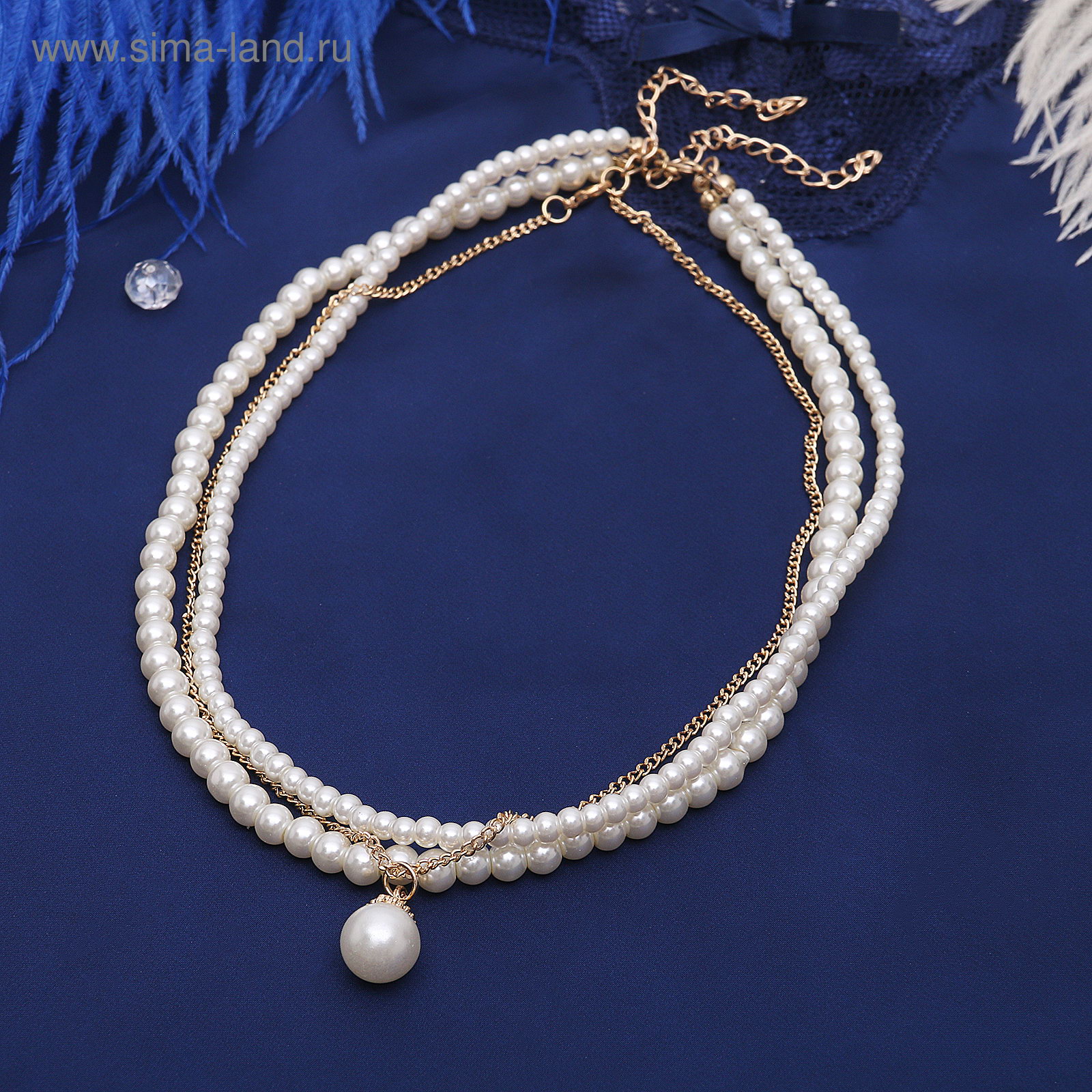 Бусы 3 яруса "Рошель" капля, шар №15, белые в золоте, L=42 см, 1.5x42x1.5 см., QF, Китай