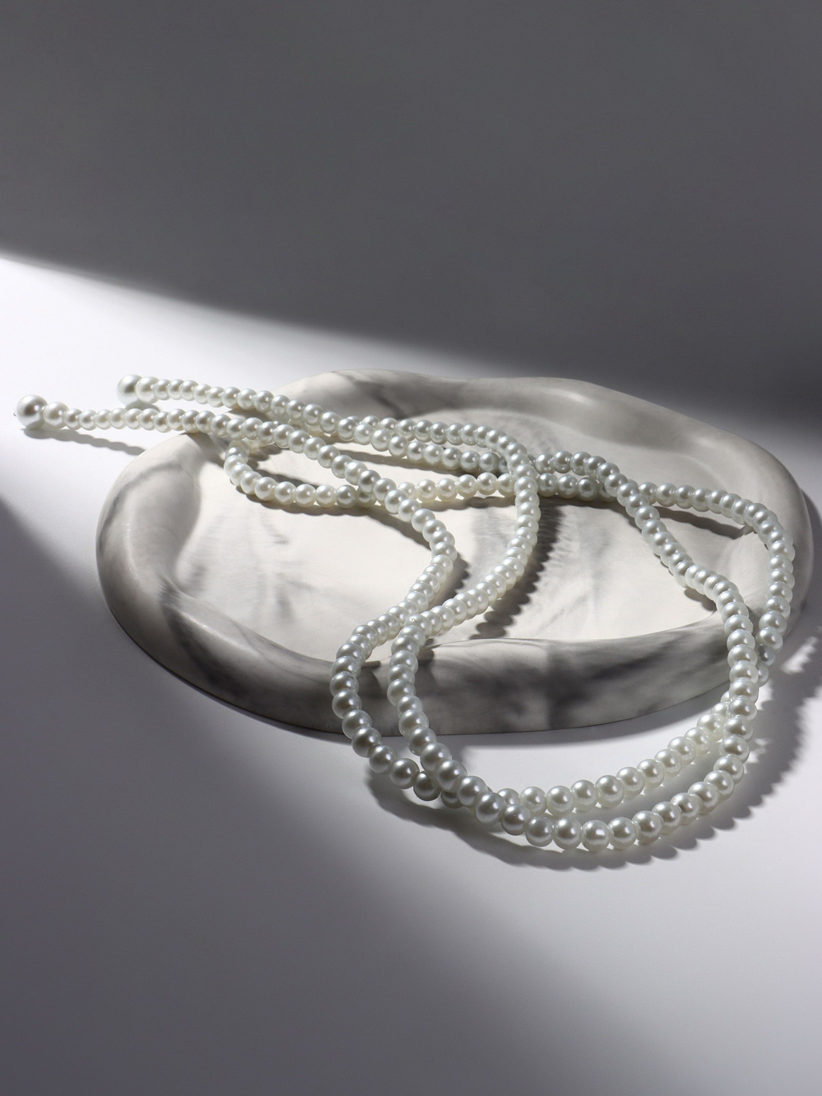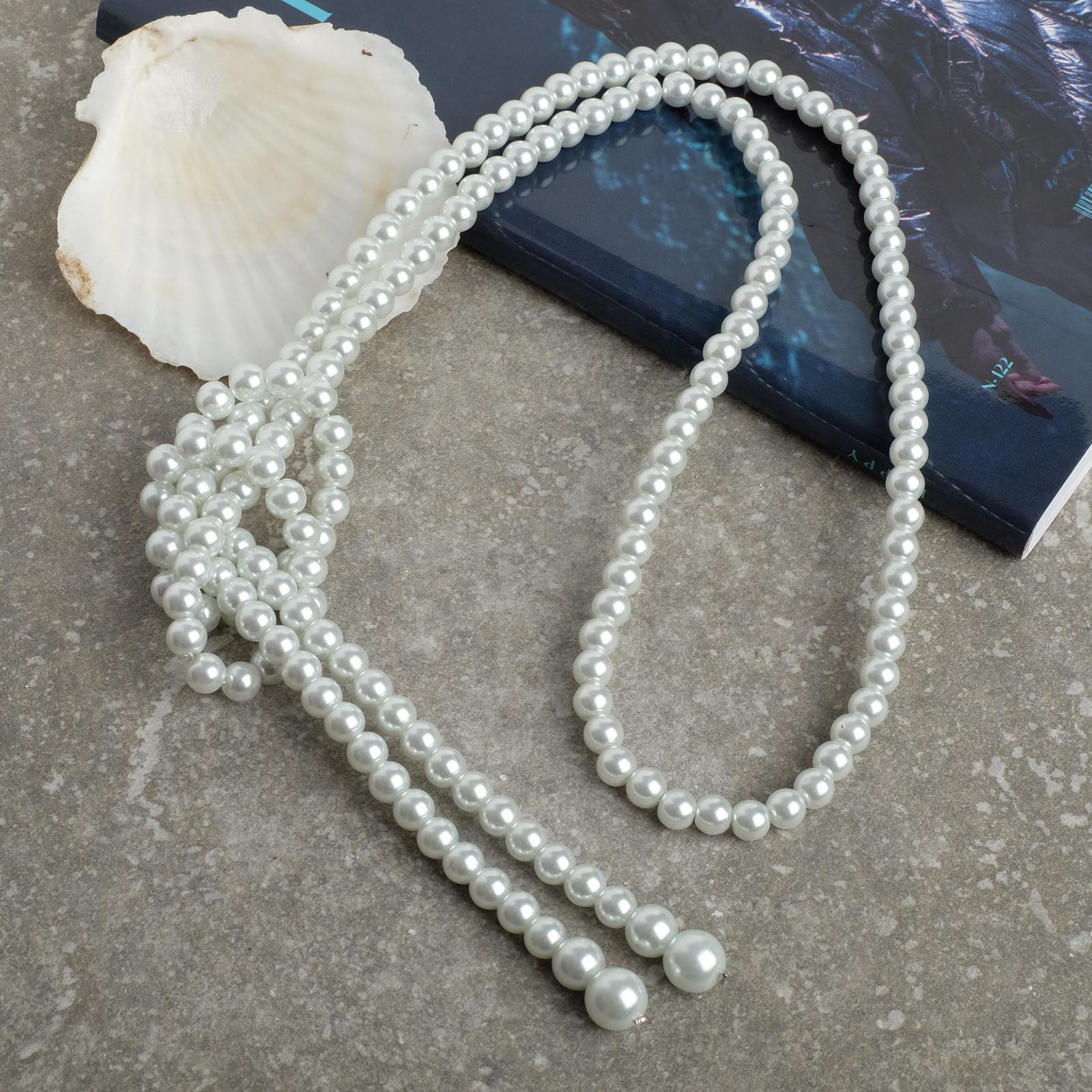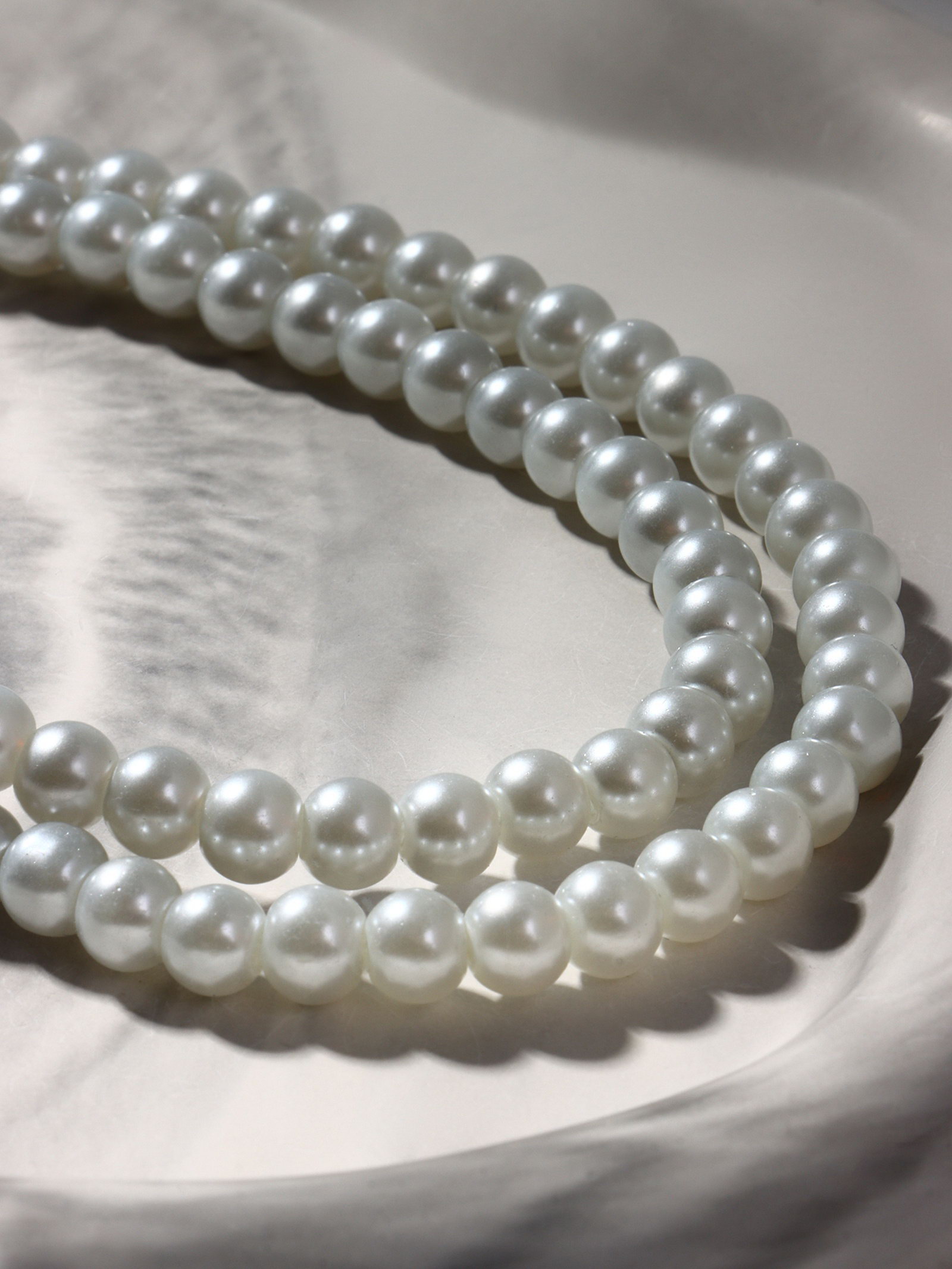 Бусы "Жемчуг" нить, шар №6, белые, L=117 см, 0.6x117x1 см., QF, Китай
