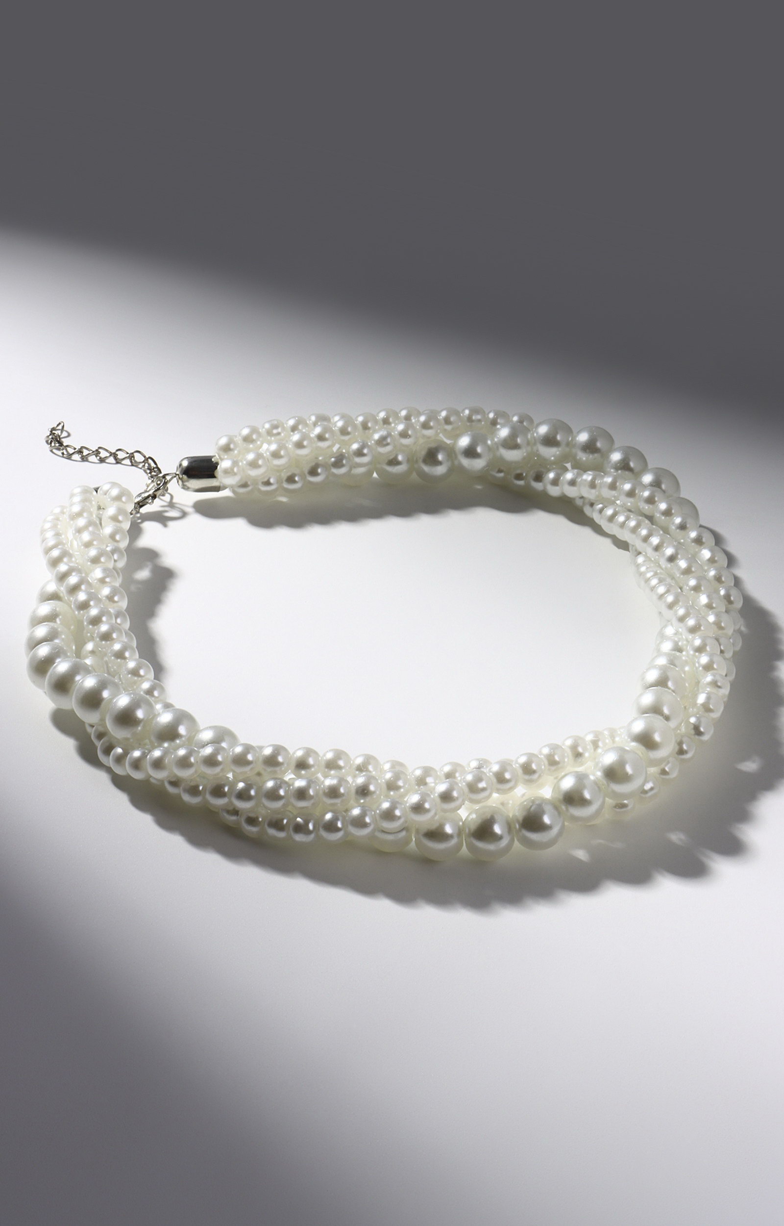 Бусы "Жгут" с жемчугом, шар №6.10, белые, L=45 см, 2x45x2 см., QF, Китай