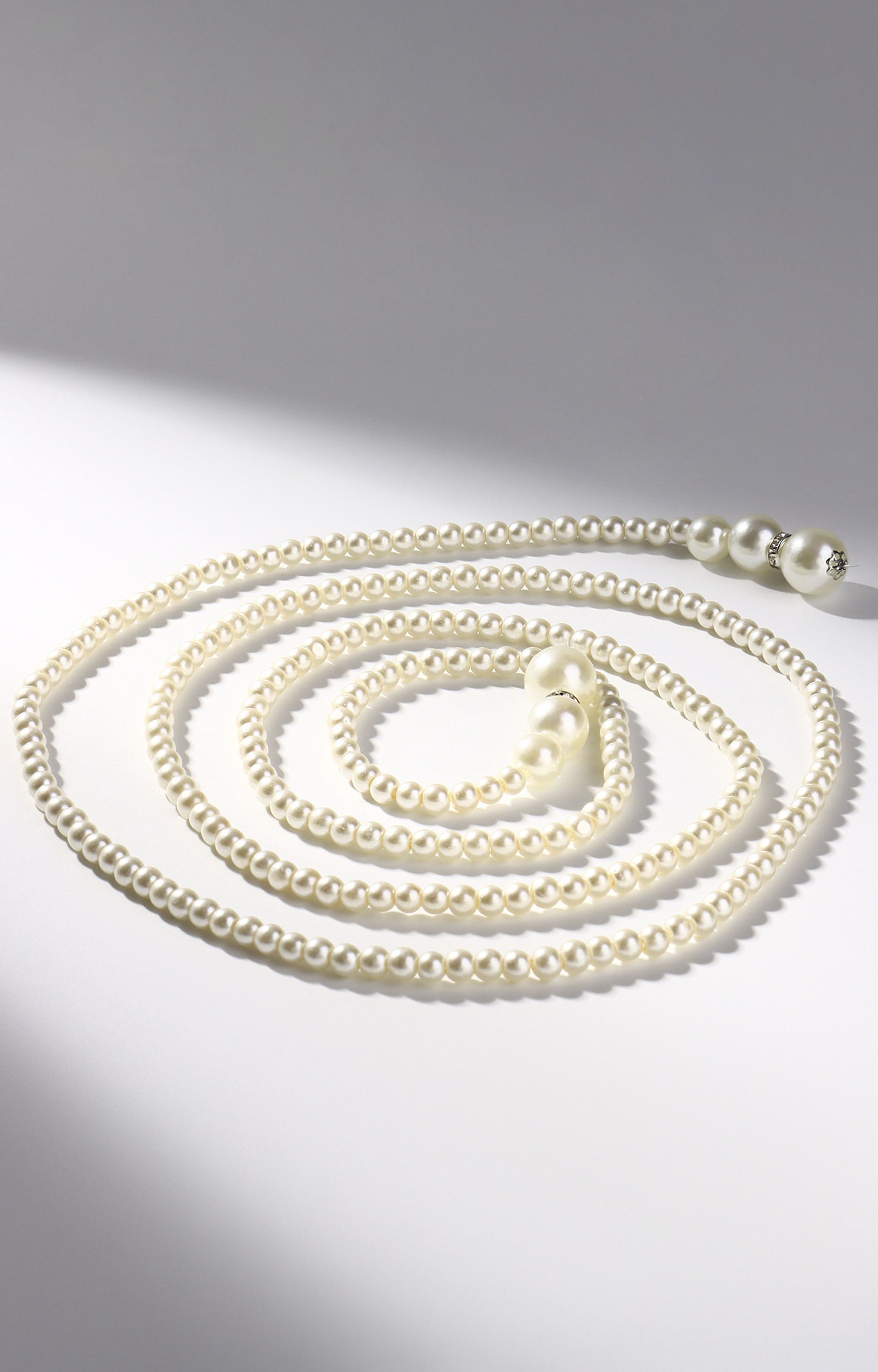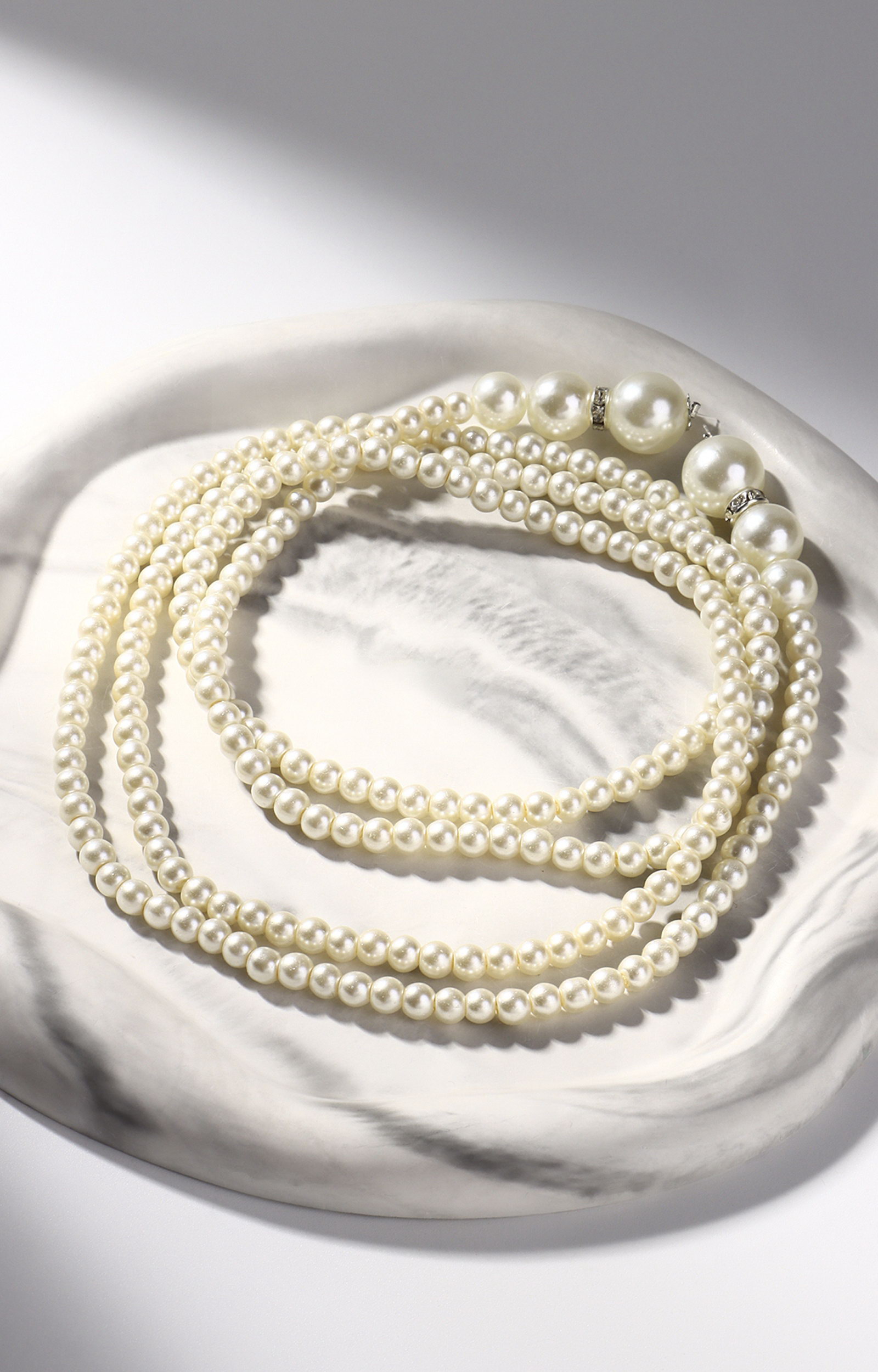 Бусы "Жемчуг" узел, шар №2.6.8.10, цвет молочный, 60 см, 3x60x0.5 см., QF, Китай