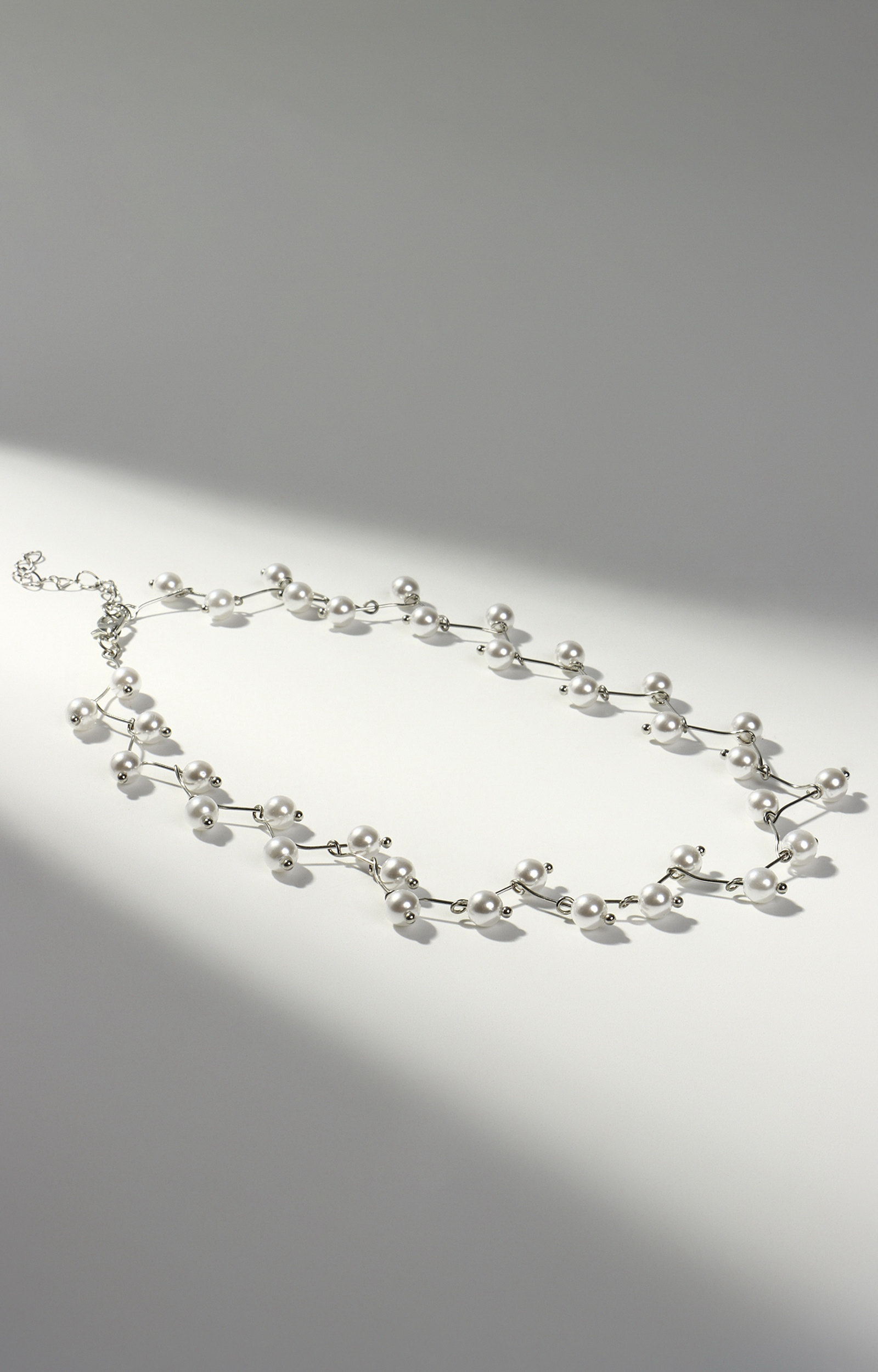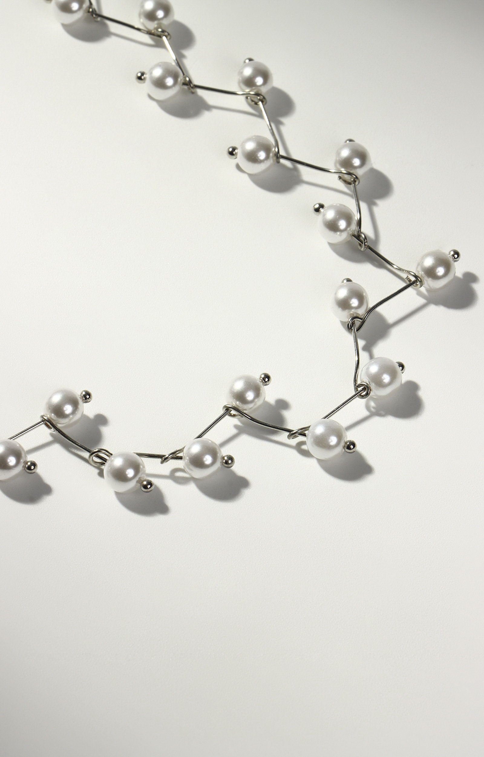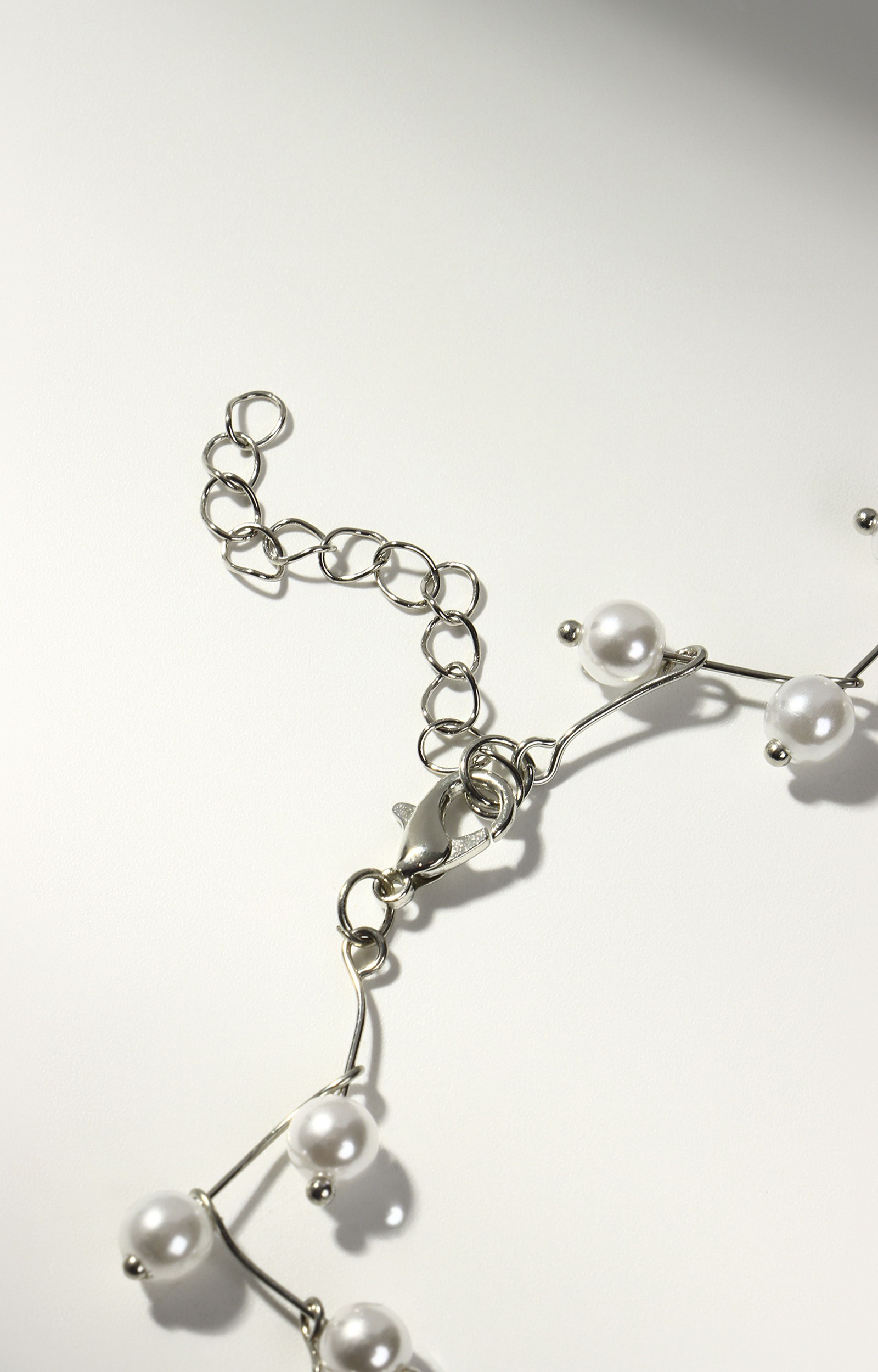 Бусы с жемчугом "Цветущая дорожка" шар №4, белые в серебре, L=38 см, 1.5x40x0.5 см., QF, Китай