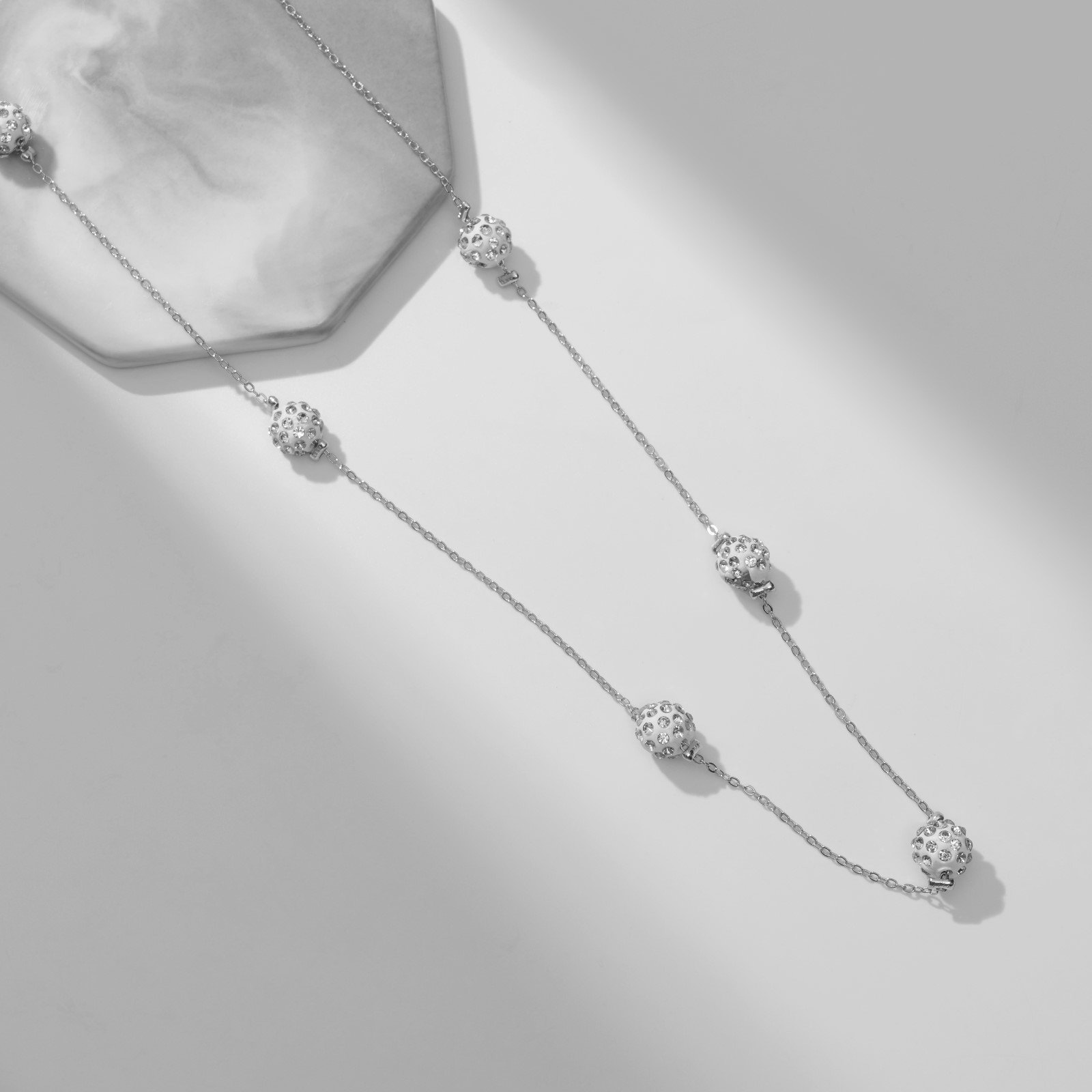 Бусы "Цепь" блеск шамбала, ассорти, шар №12, белые в серебре, 80 см, 1x80x1 см., QF, Китай
