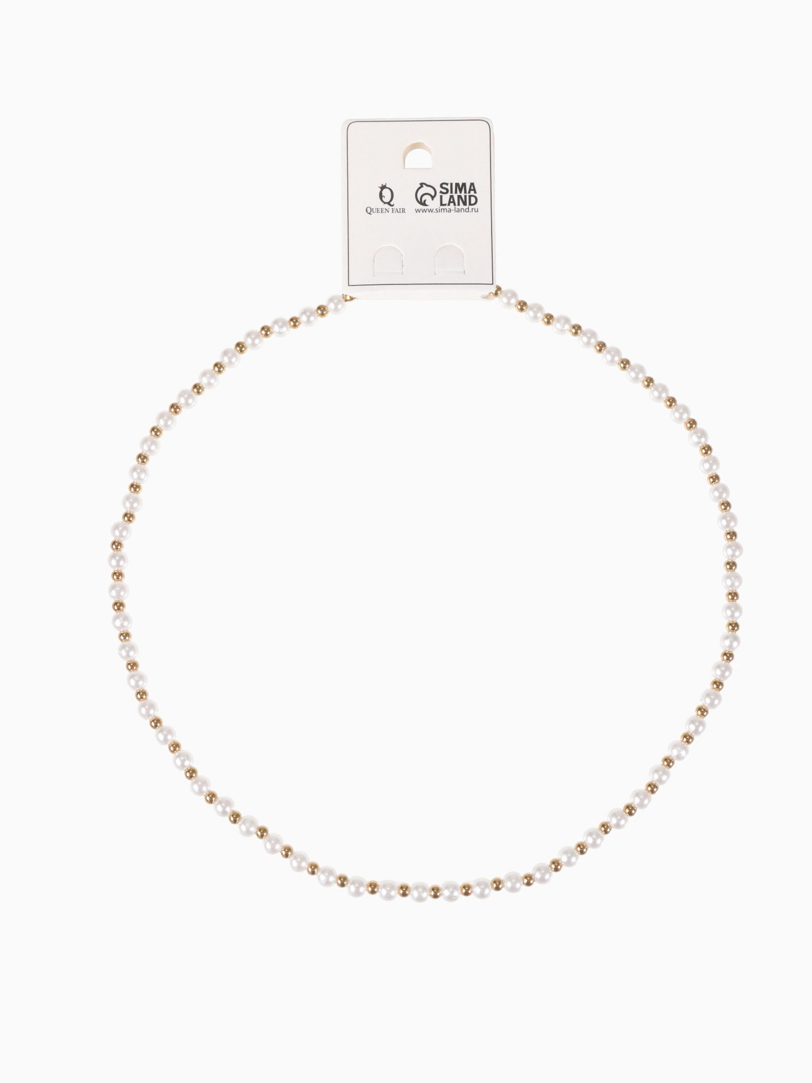 Бусы "Жемчуг" дуэт бусин, шар №6, белые в золоте, 53 см, 0.6x53x0.6 см., QF, Китай
